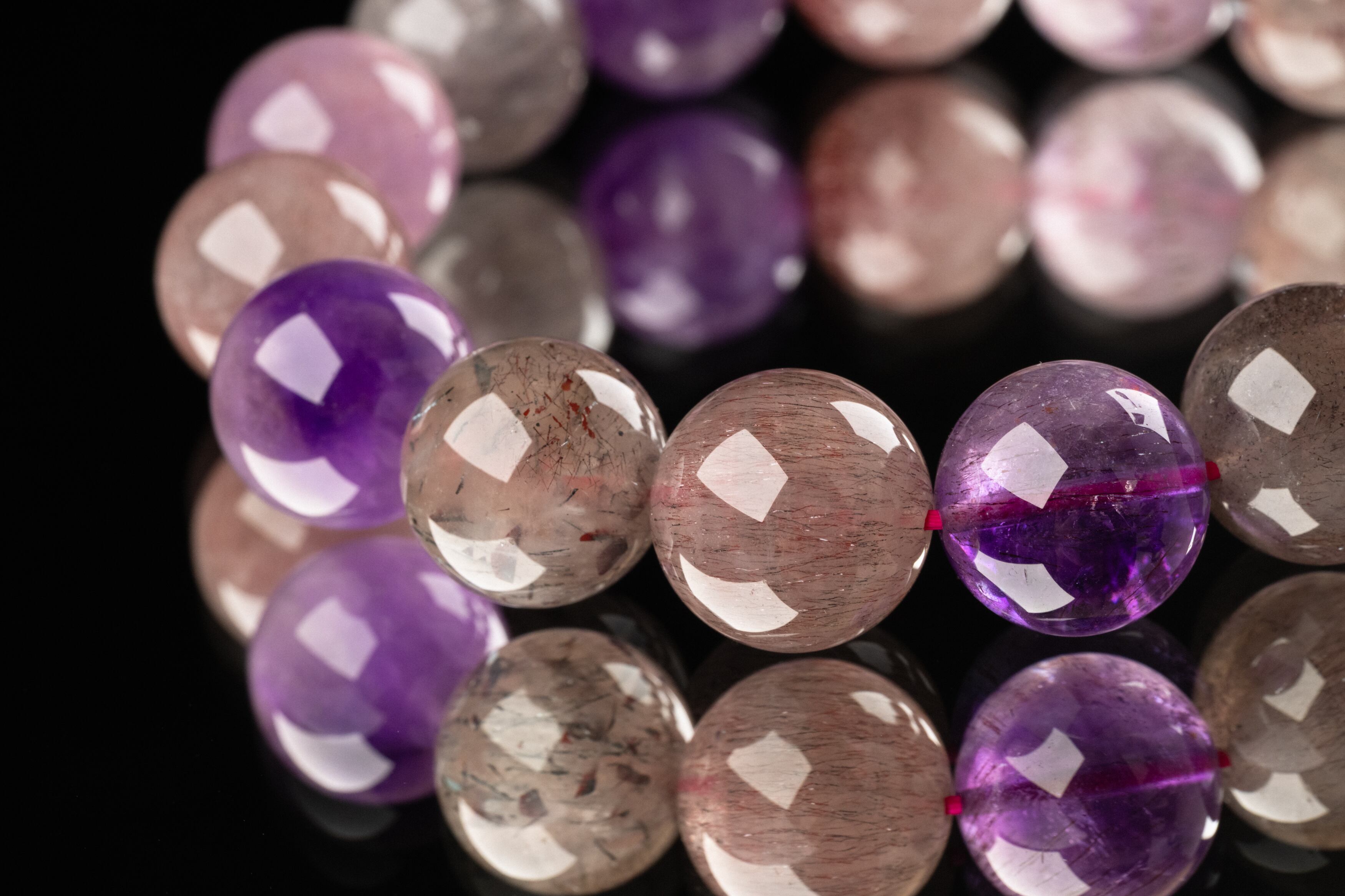 スーパーセブン(セイクリッドセブン)は水晶、アメジスト、スモーキークォーツの三種類のクォーツの中に、カコクセナイト、ゲーサイト、レビドクロサイト、ルチルの4つの鉱物が入っている石になります。