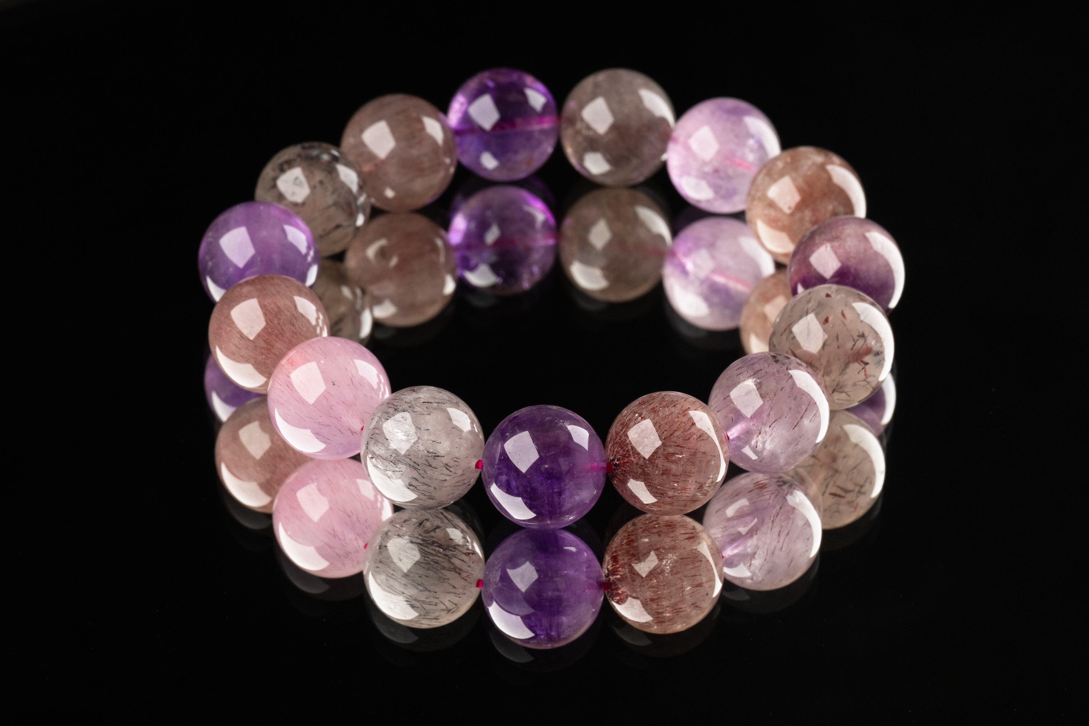 複数の鉱物からなるスーパーセブンは、個体によって含まれる鉱物の種類や割合が異なりますが、どれも絶妙にバランスが取れています。