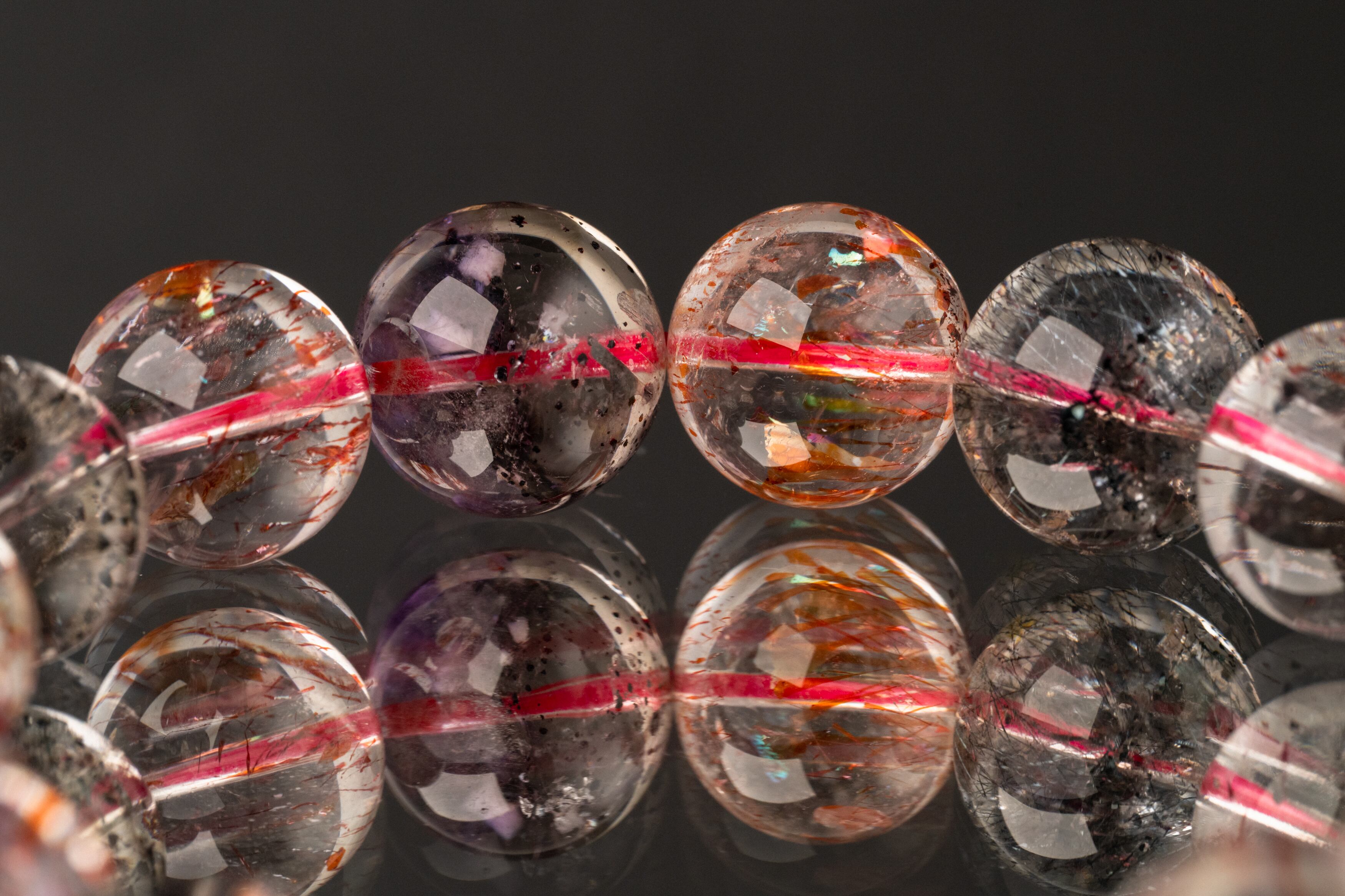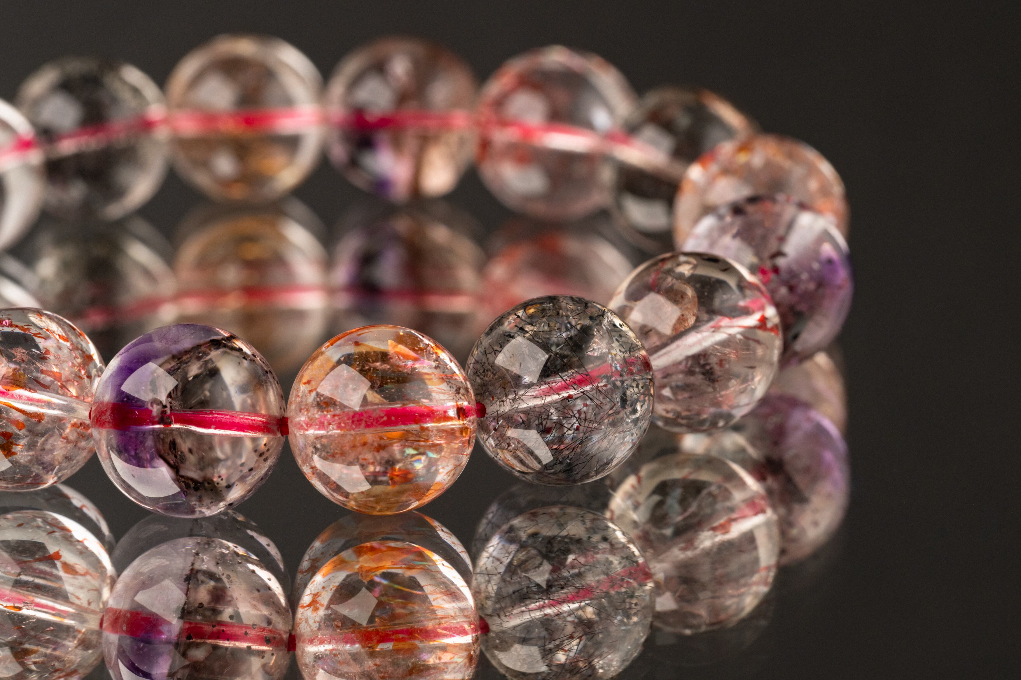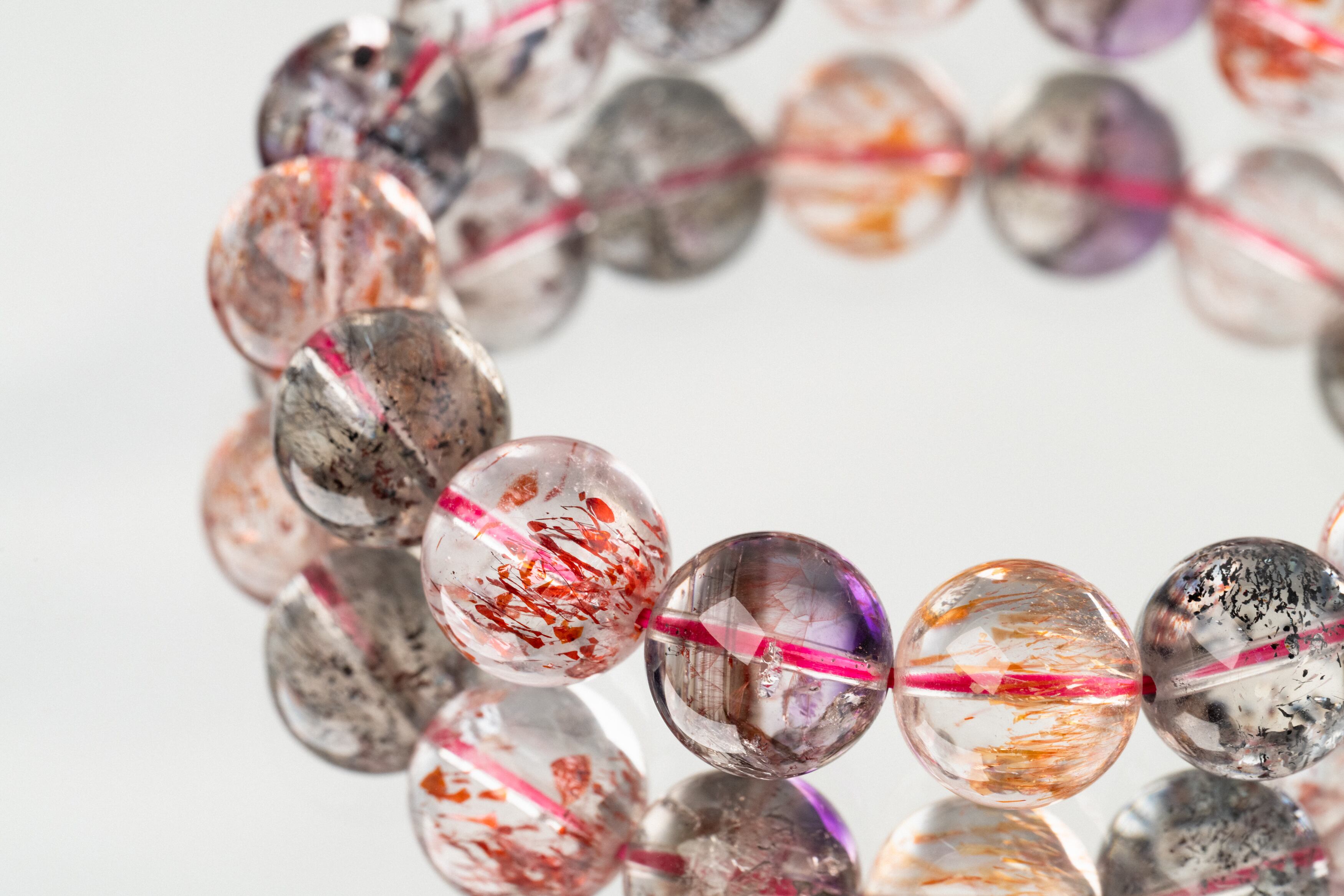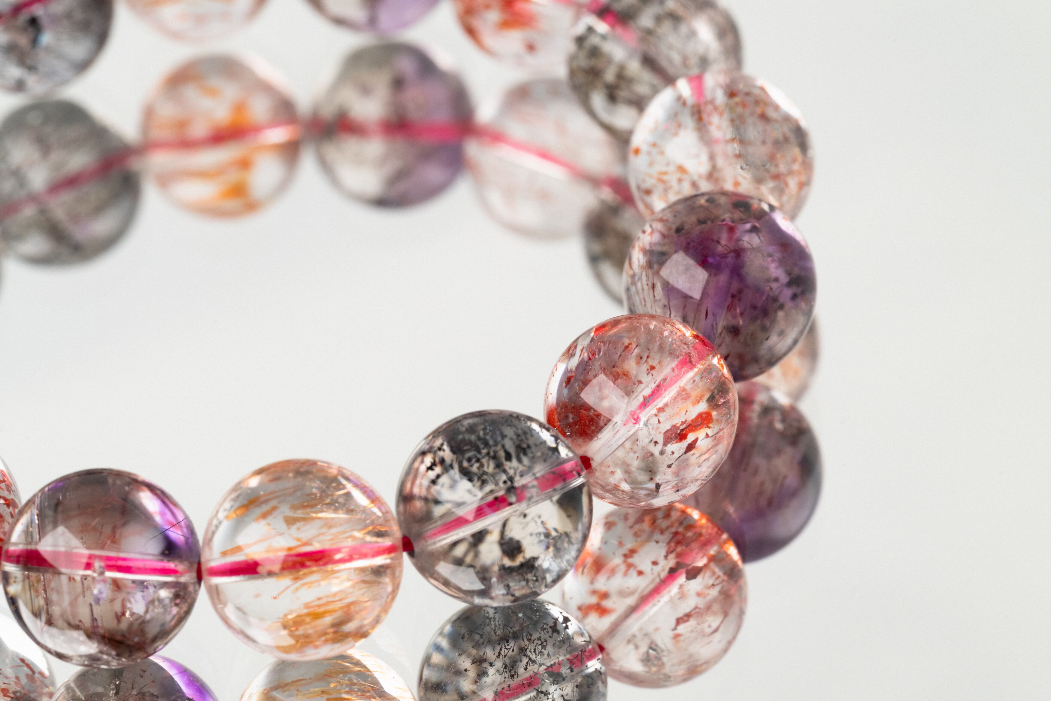 複数の鉱物からなるスーパーセブンは、個体によって含まれる鉱物の種類や割合が異なりますが、どれも絶妙にバランスが取れています。