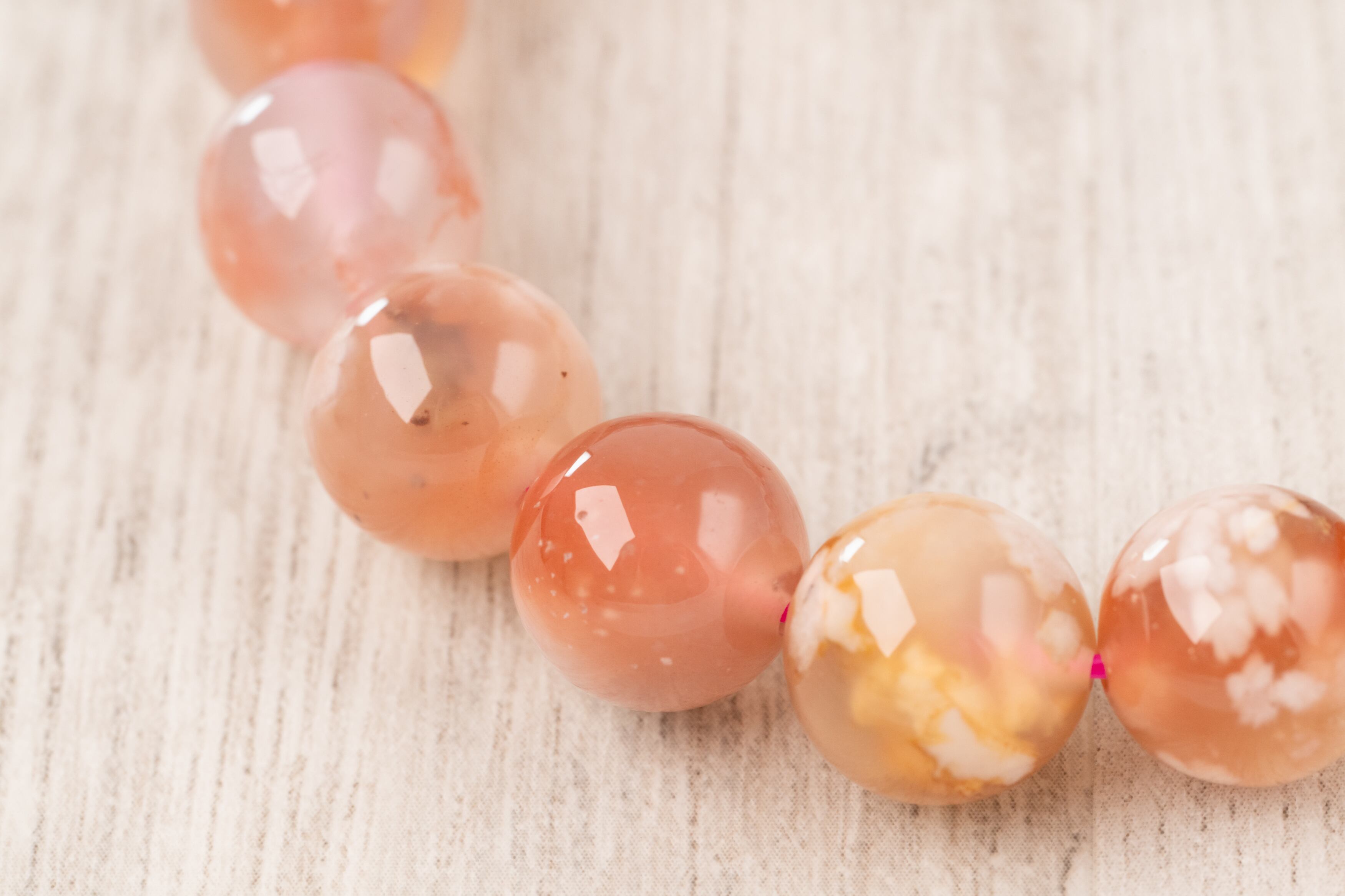 近年発見された比較的新しい瑪瑙で、チェリーブロッサムアゲートという英名でも流通しています。