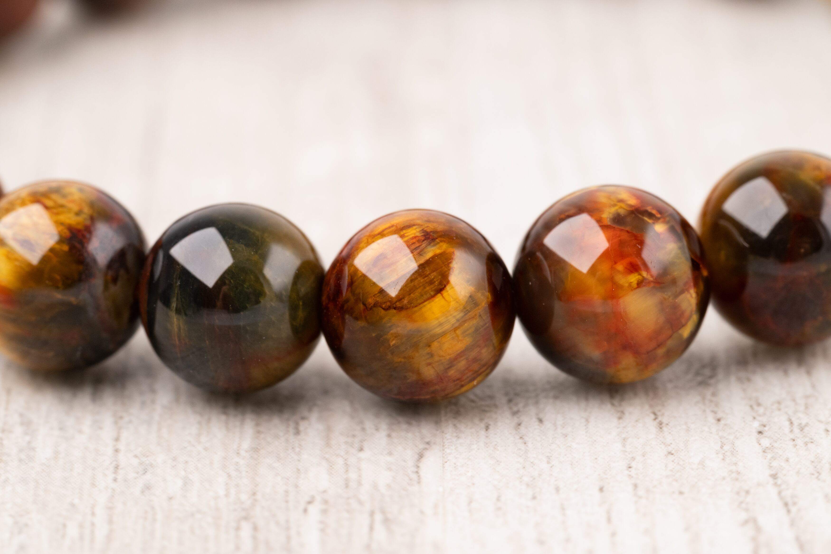 絹のような光沢と、青色、金色、茶色などが混ざり合った独特の模様が特徴で、「テンペストストーン(嵐の石)」とも呼ばれます。