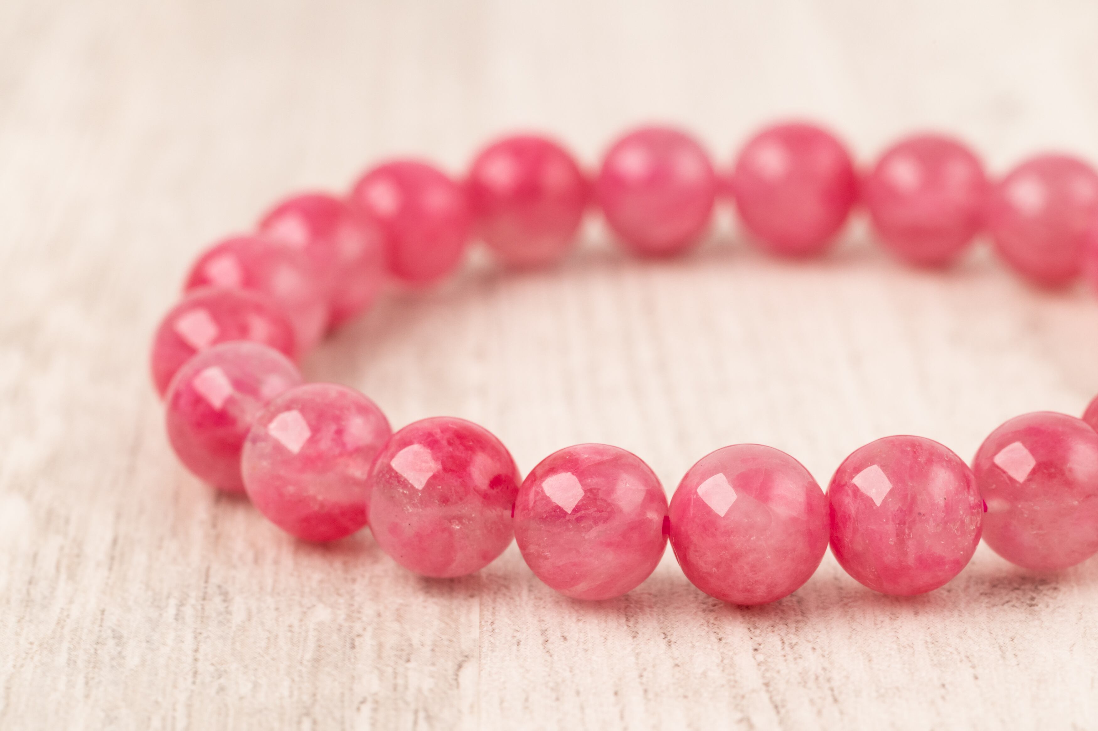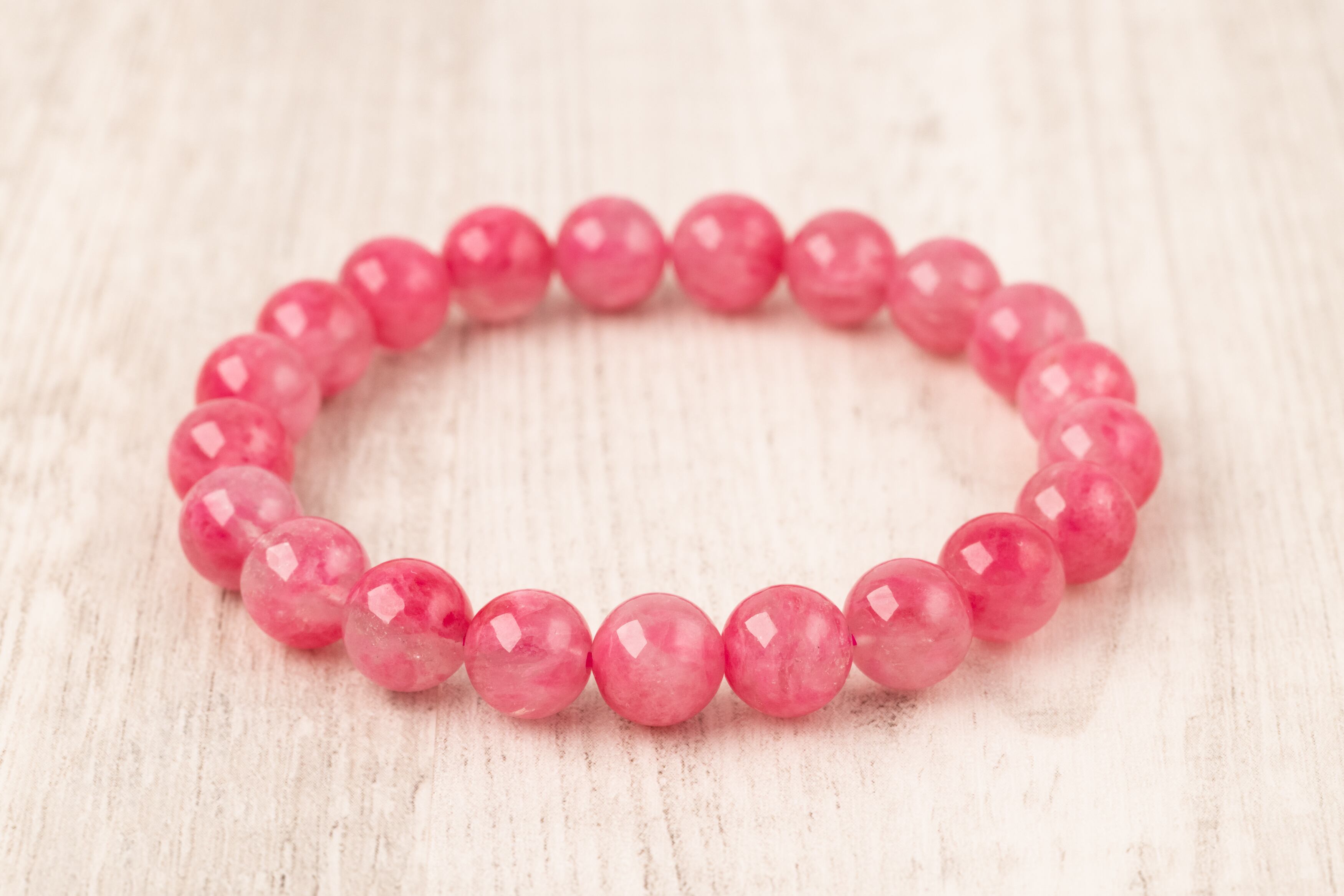 ロードナイトの持つ薔薇色の濃淡と水晶のクリアな部分や白い内包物が織りなす模様は一つとして同じものがありません。