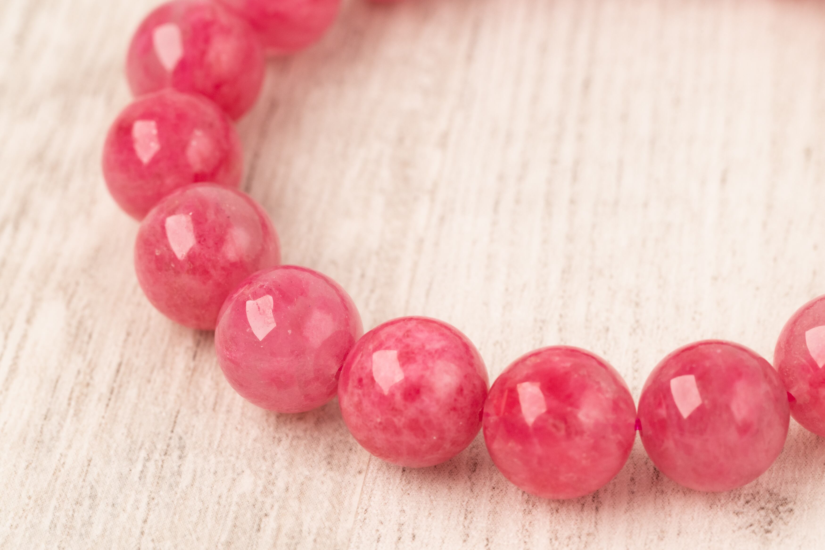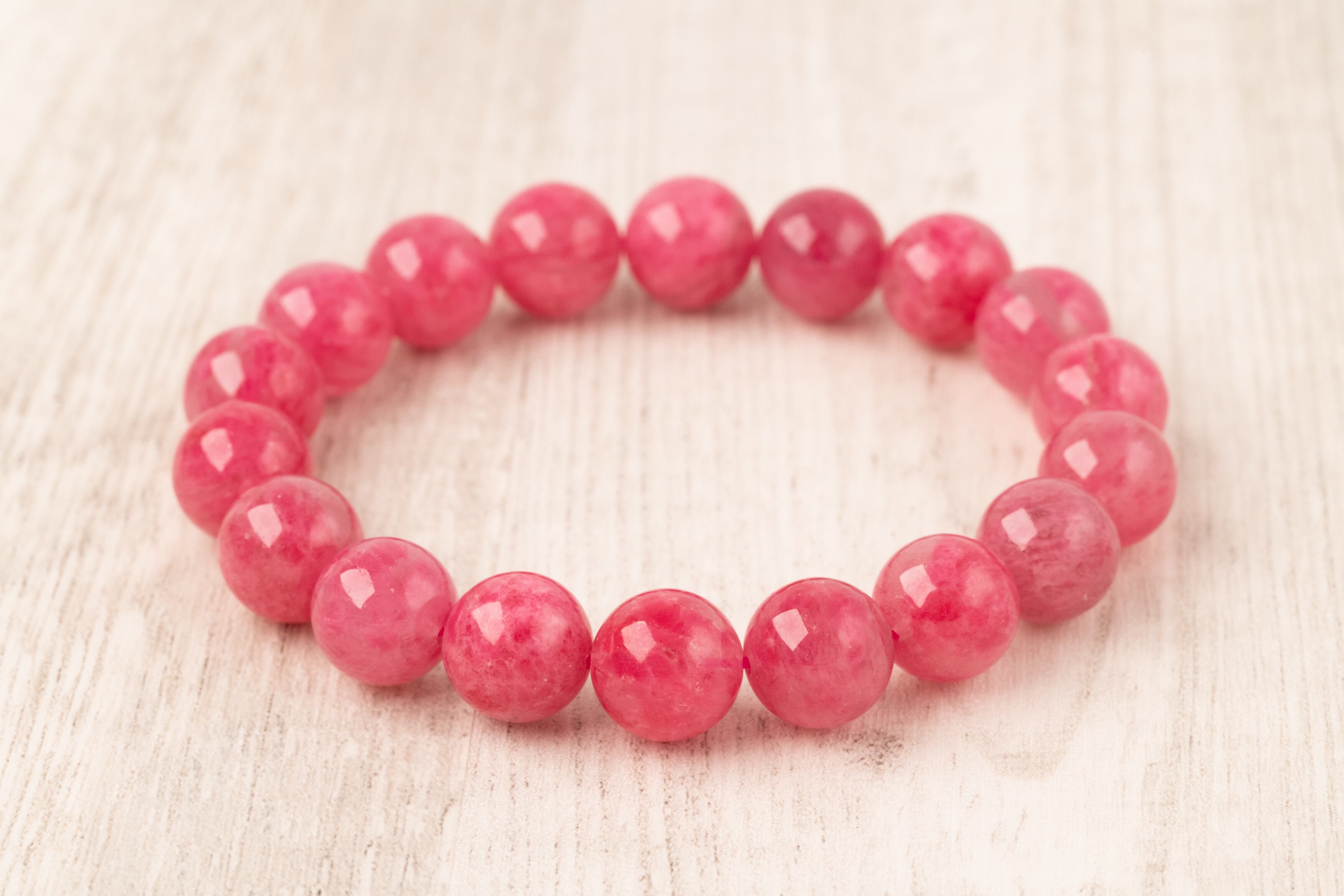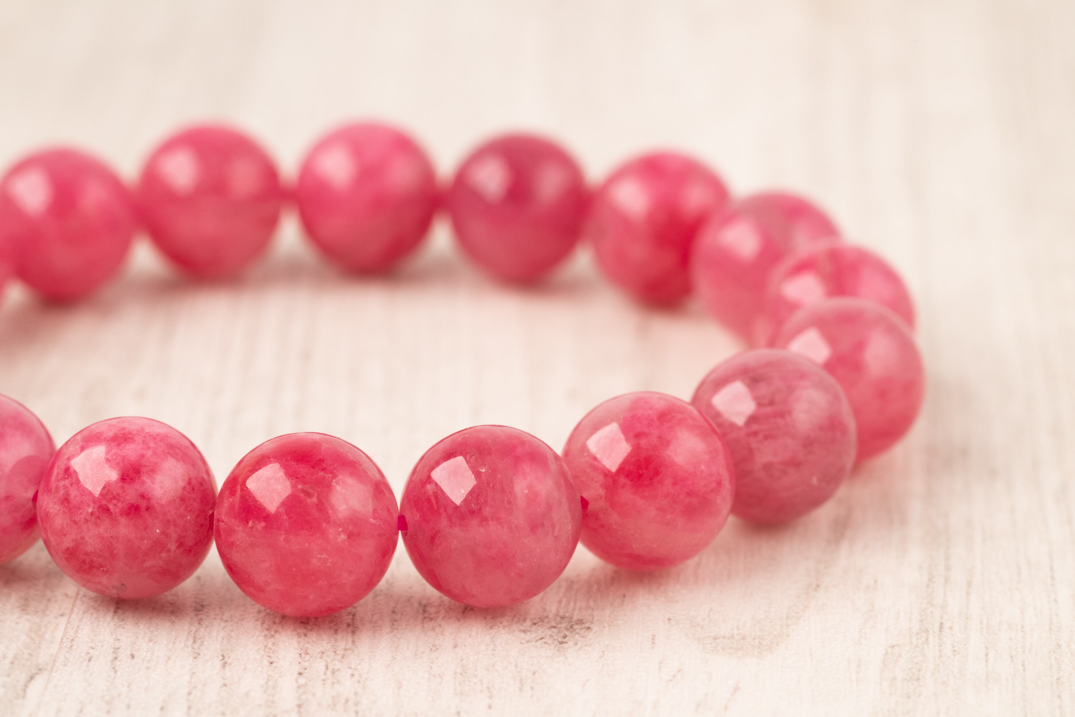 ロードナイトの持つ薔薇色の濃淡と水晶のクリアな部分や白い内包物が織りなす模様は一つとして同じものがありません。