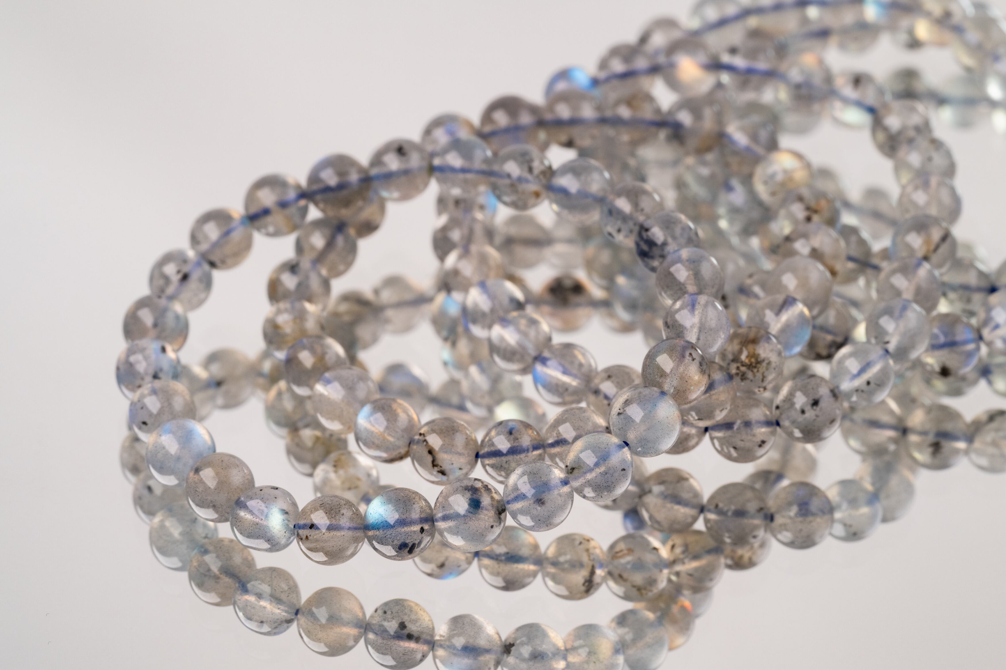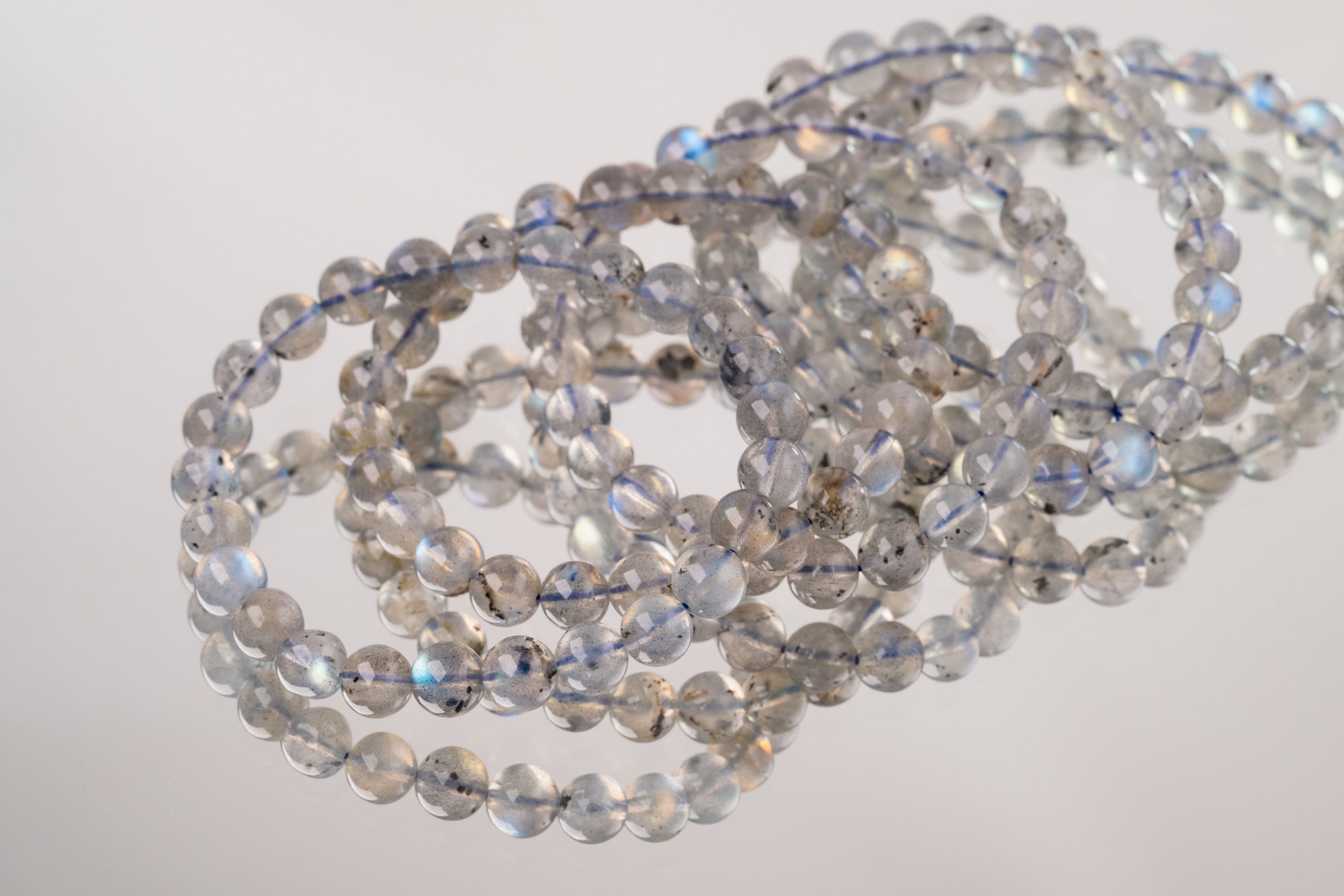 角度によって虹色の光(ラブラドレッセンス)が浮かび上がるまるで蝶の羽のような神秘的な輝きを持つラブラドライト。