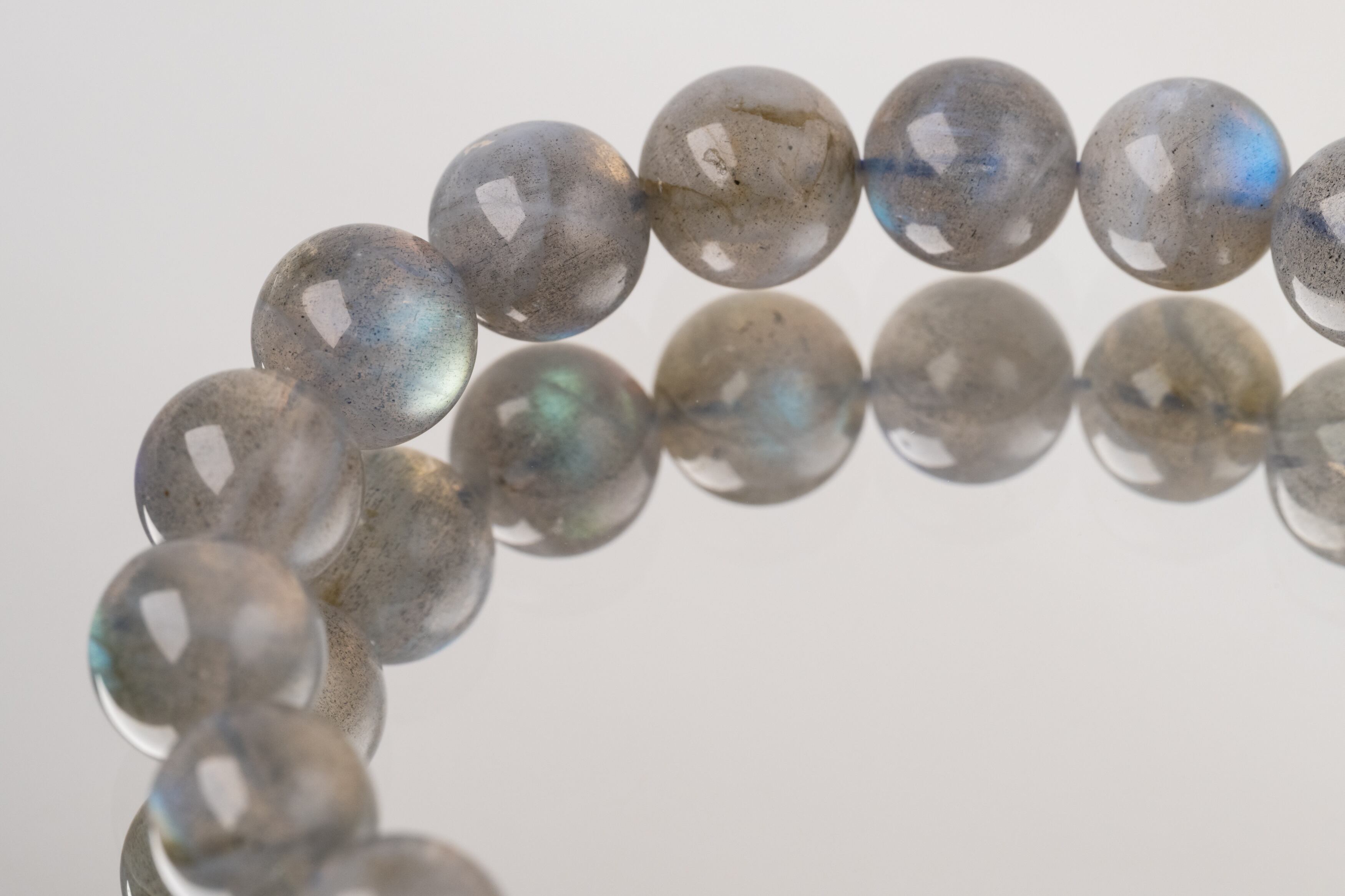 角度によって虹色の光(ラブラドレッセンス)が浮かび上がるまるで蝶の羽のような神秘的な輝きを持つラブラドライト。