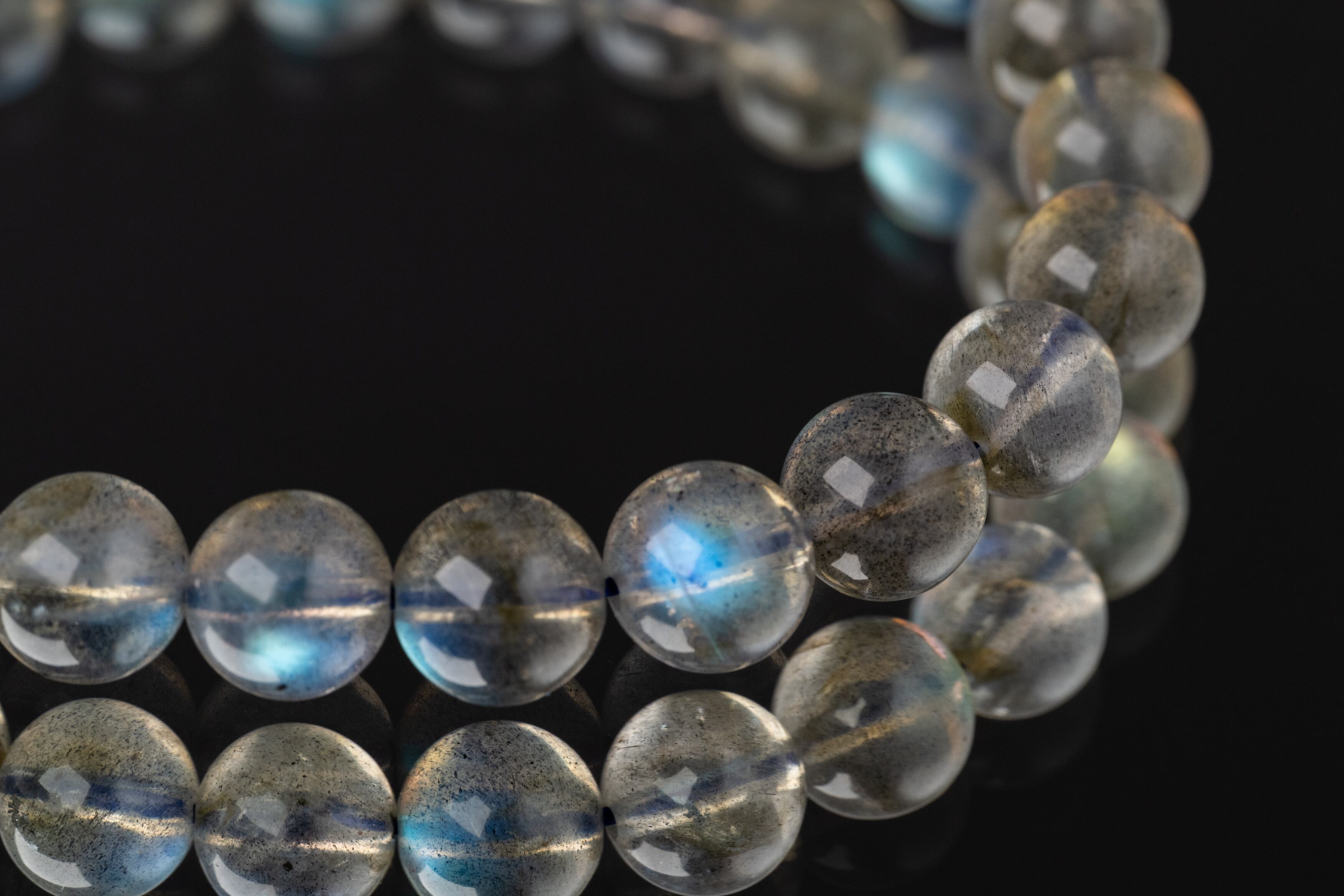 角度によって虹色の光(ラブラドレッセンス)が浮かび上がるまるで蝶の羽のような神秘的な輝きを持つラブラドライト。