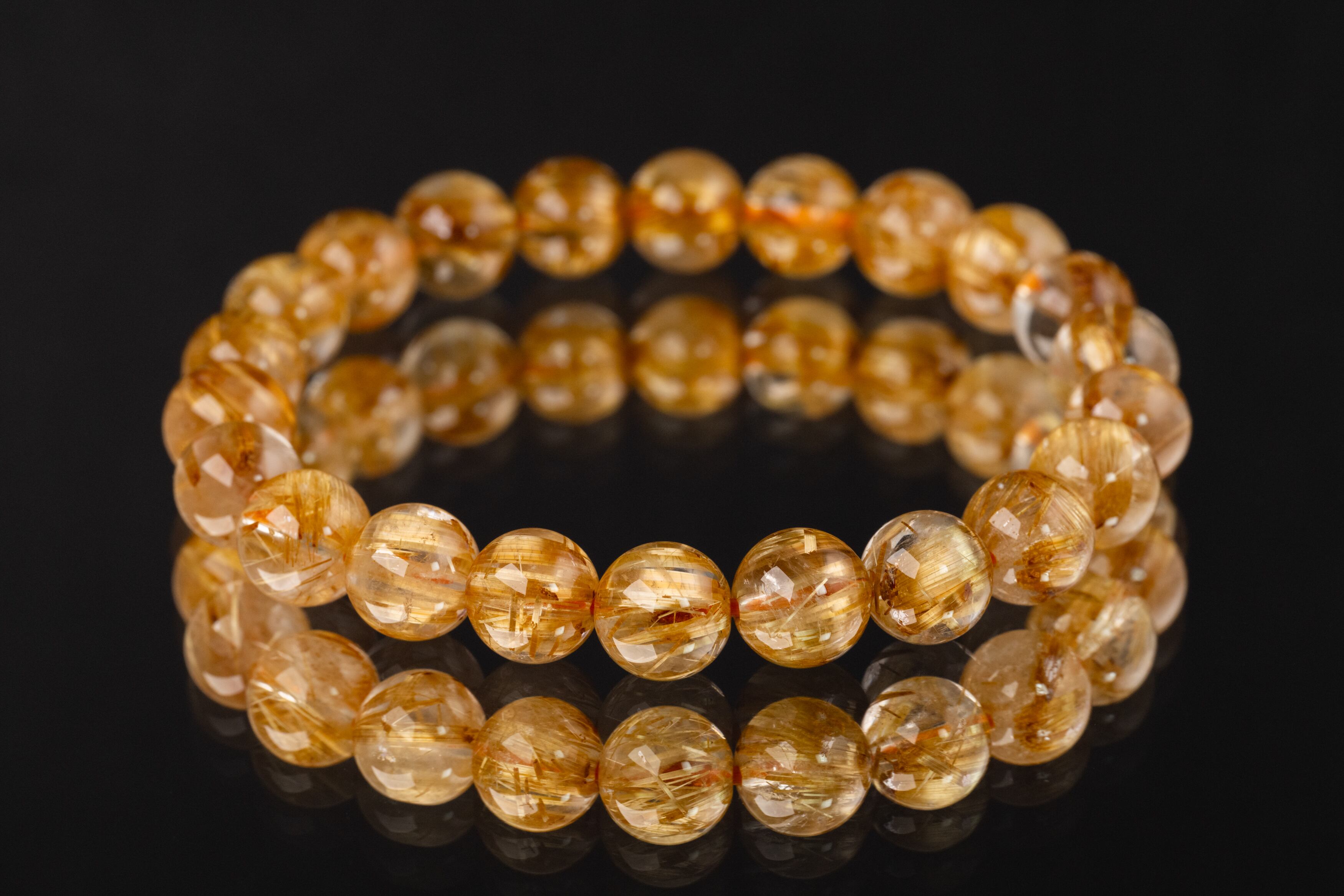 ◆一点物◆【高品質】ゴールドタイチンルチルクォーツ ブレスレット 8.5mm