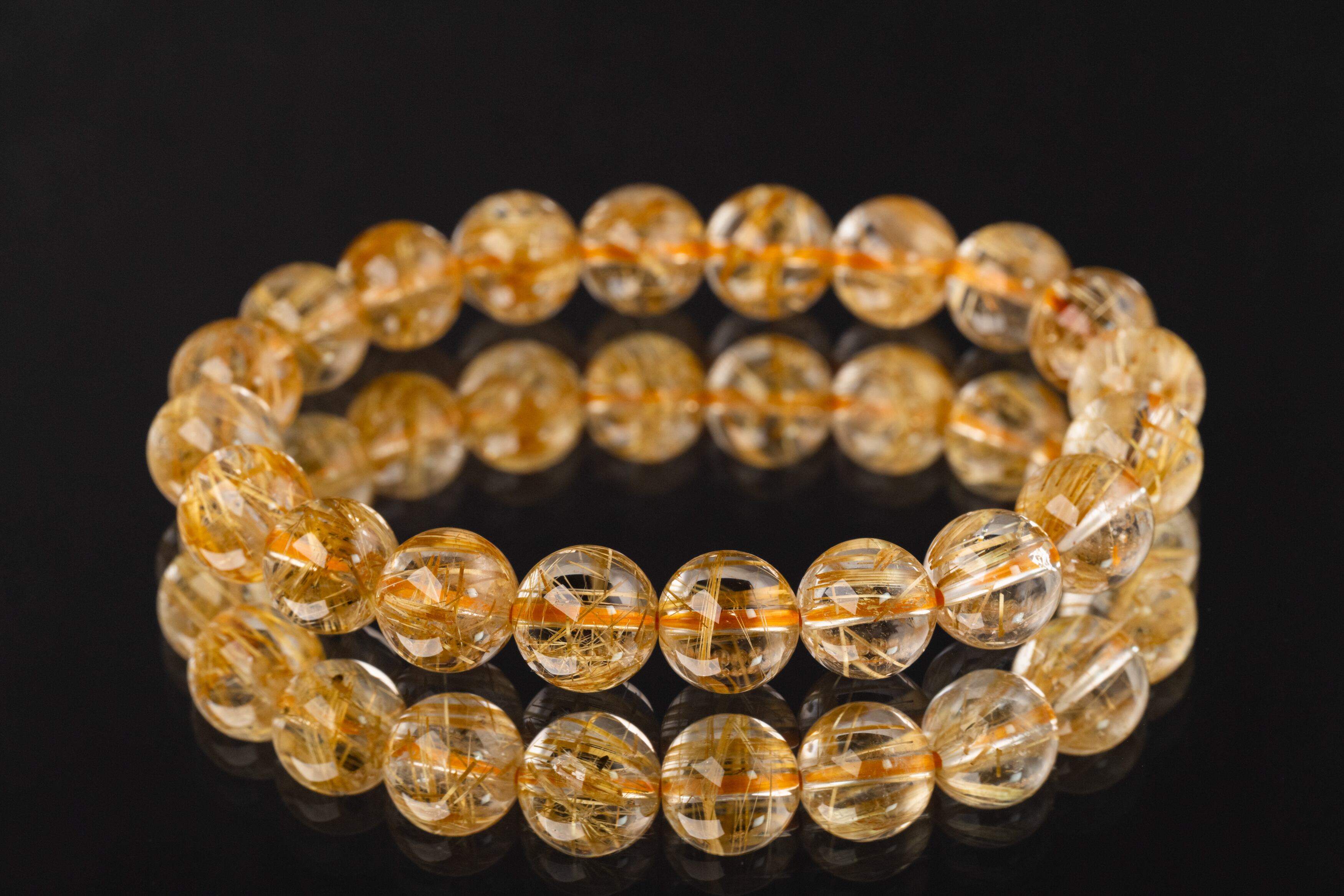 ◆一点物◆【高品質】ゴールドタイチンルチルクォーツ ブレスレット 9.5mm