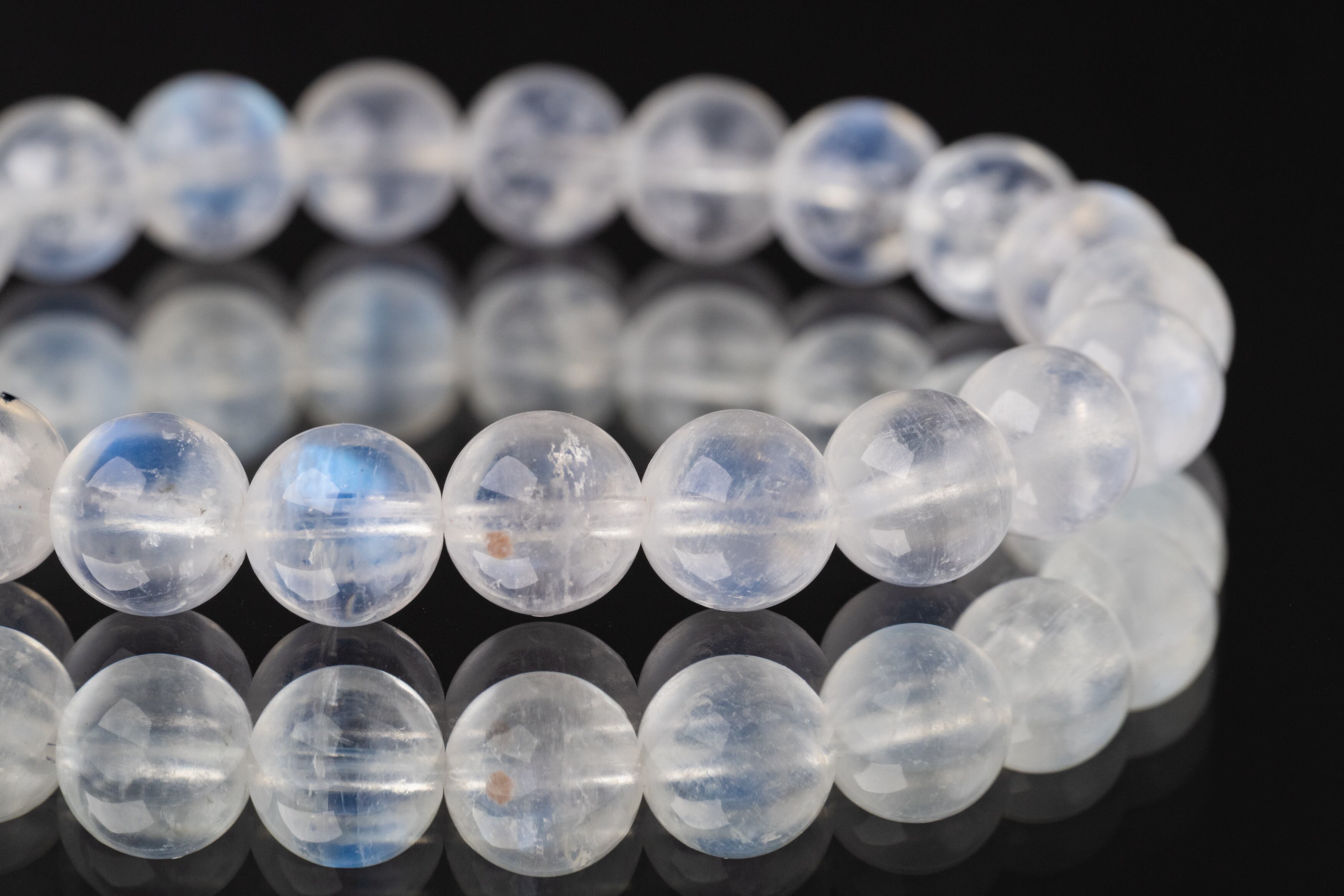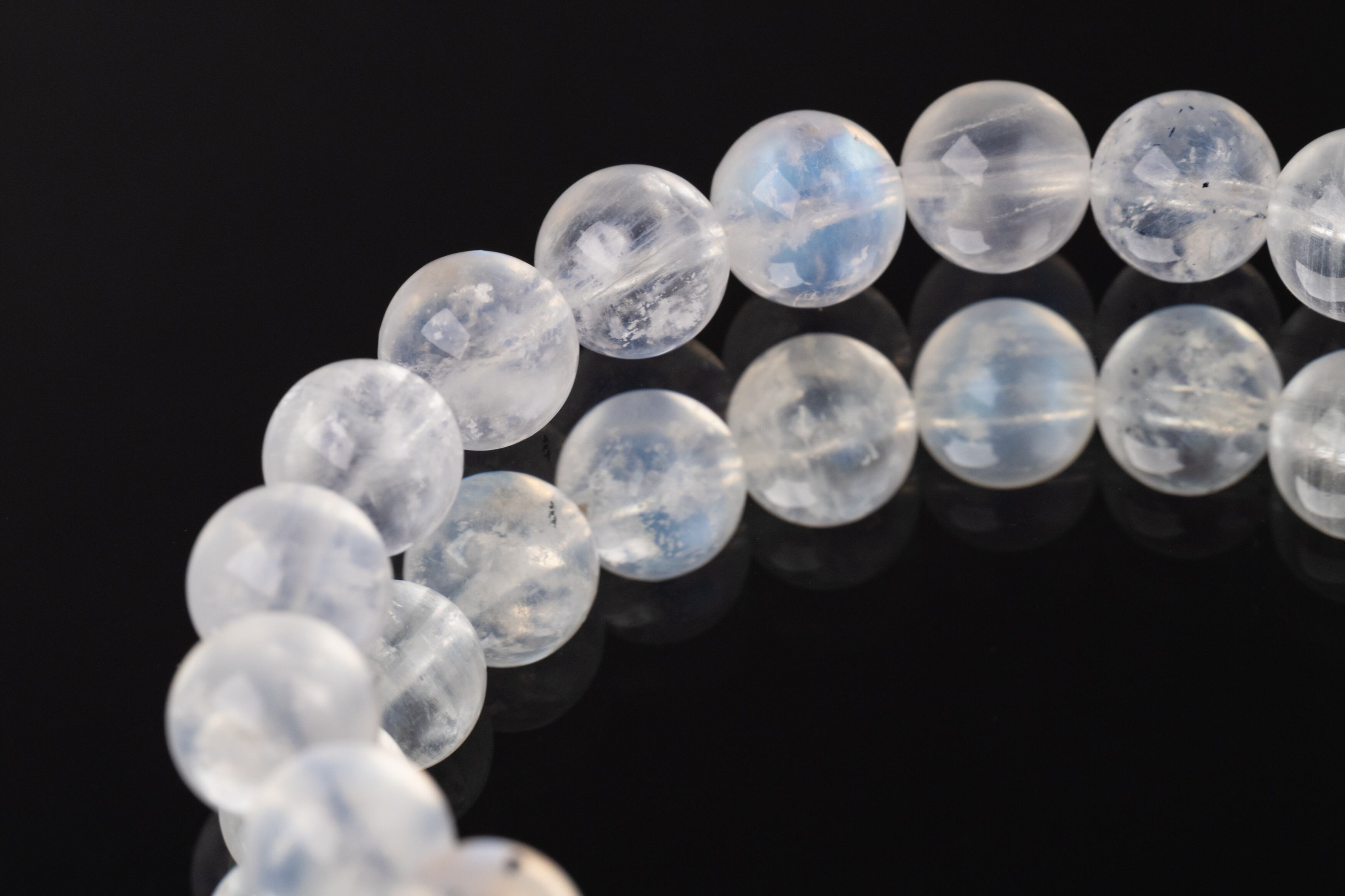 「ブルームーンストーン」という名前で流通していることも多いですが、鉱物学的にはムーンストーンとは異なる種類になります。