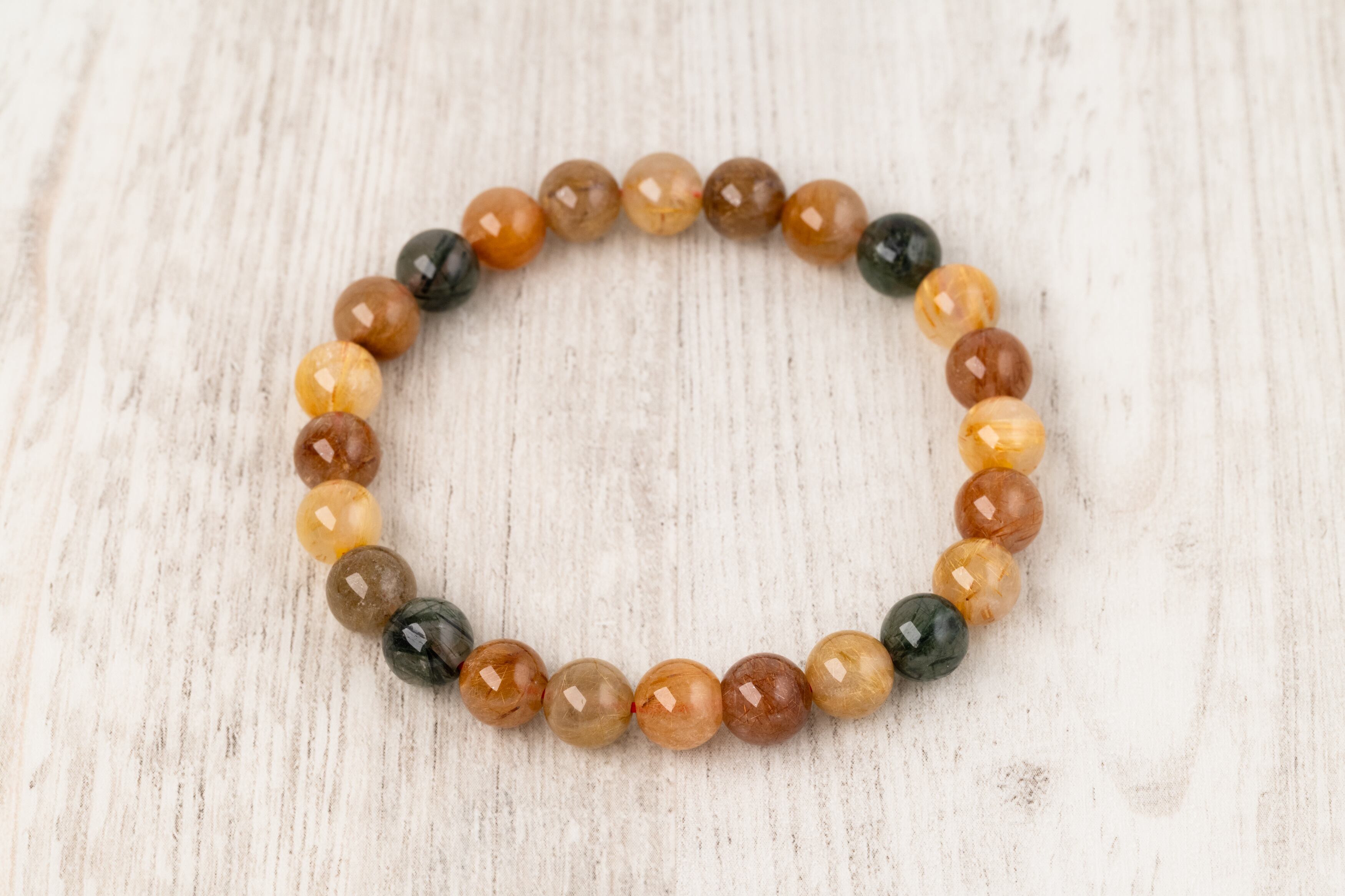金色、銀色、赤色、銅色など、複数の色のルチルが織りなす模様は一つとして同じものがなく、それぞれのルチルの持つエネルギーが合わさることで総合的な開運力を高めると言われています。