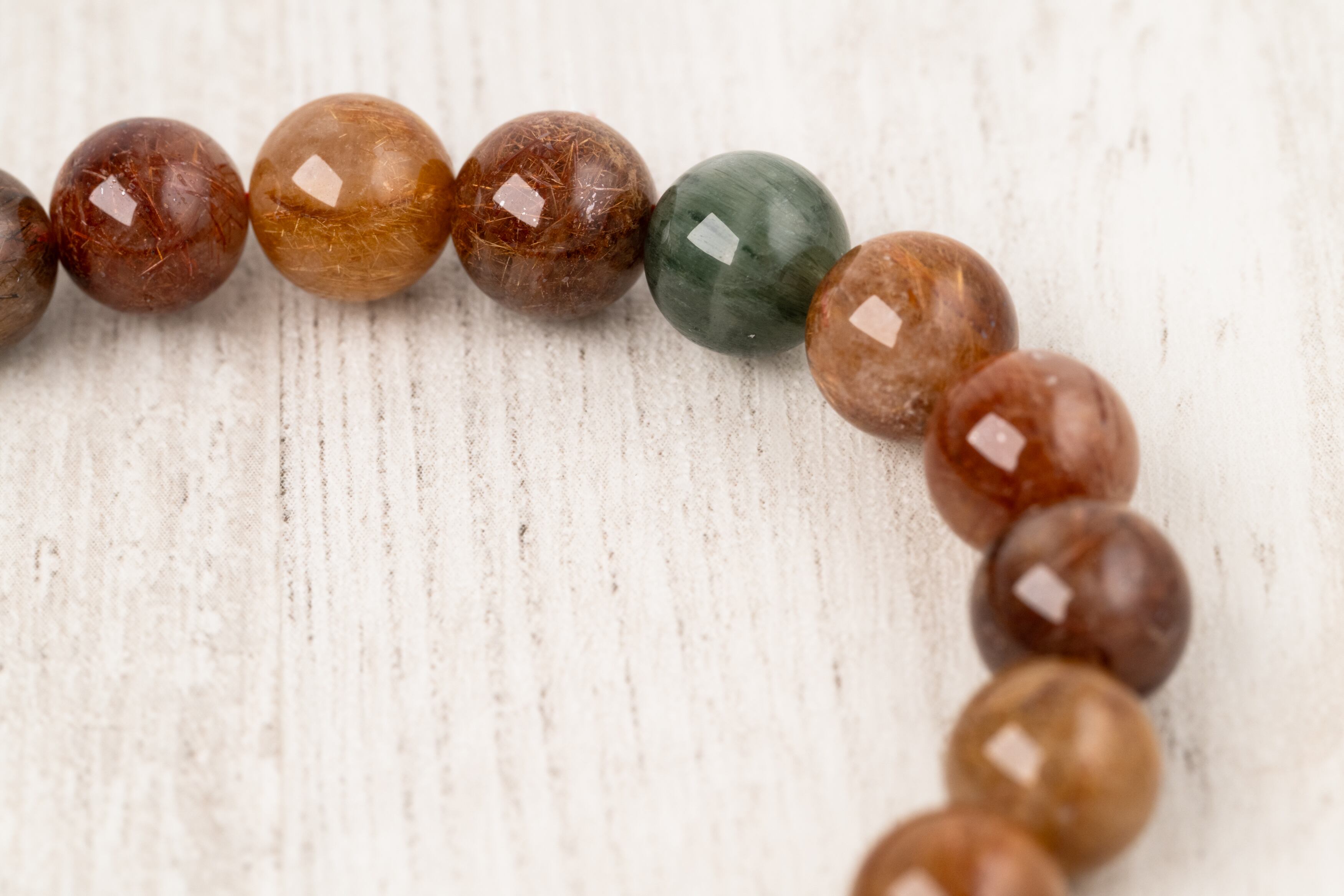 金色、銀色、赤色、銅色など、複数の色のルチルが織りなす模様は一つとして同じものがなく、それぞれのルチルの持つエネルギーが合わさることで総合的な開運力を高めると言われています。
