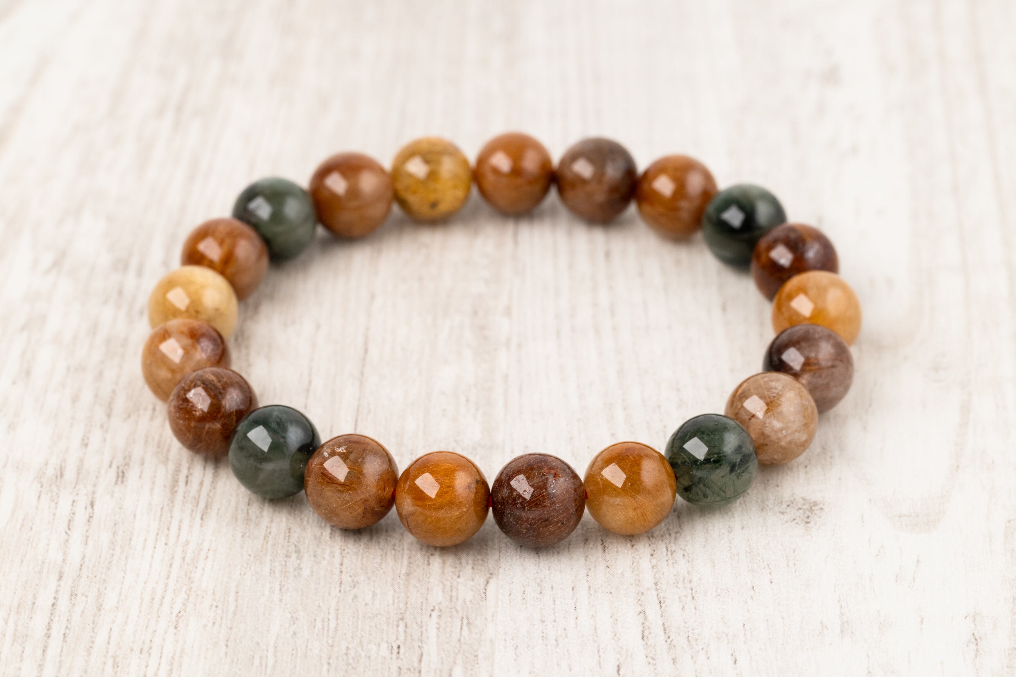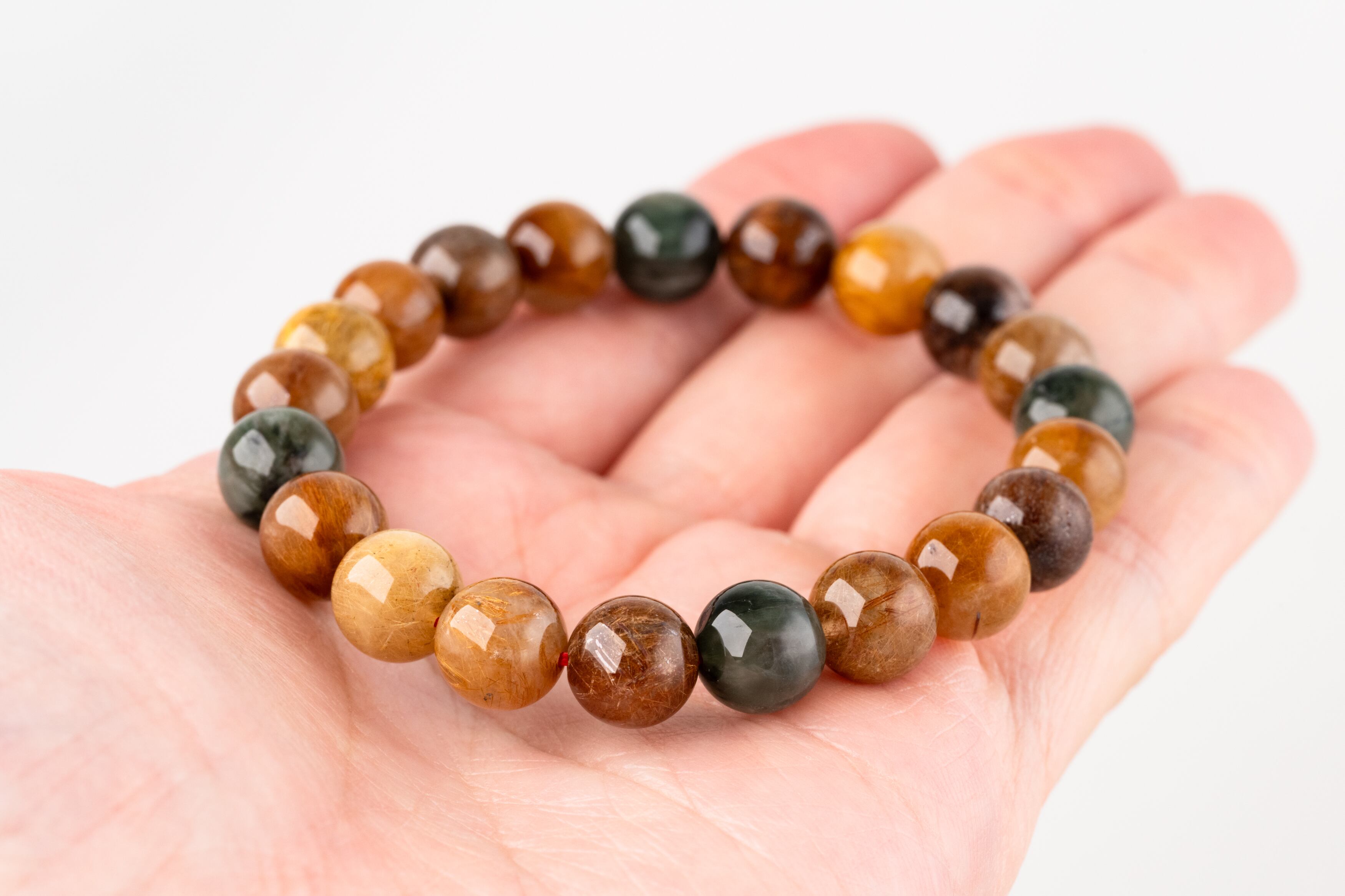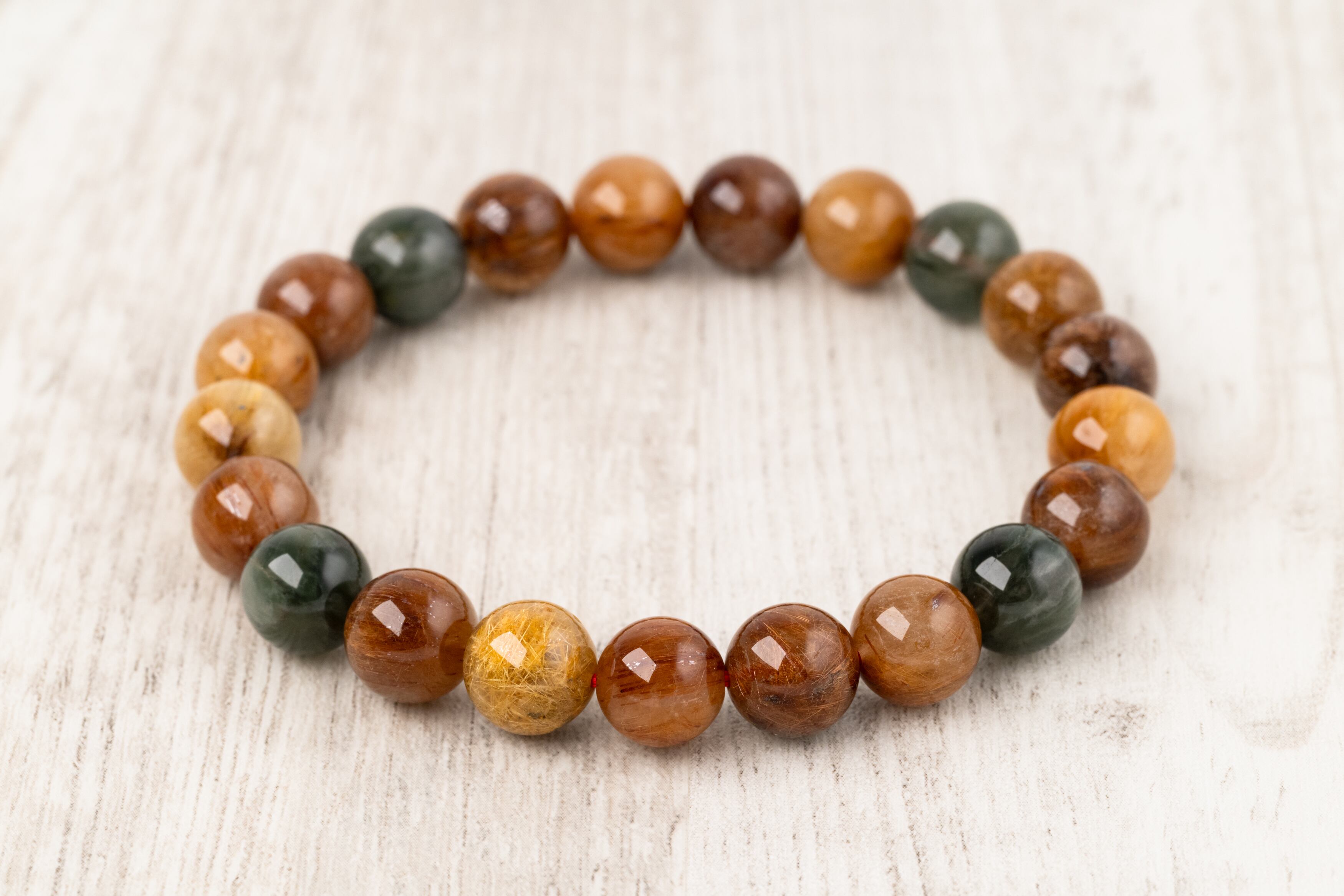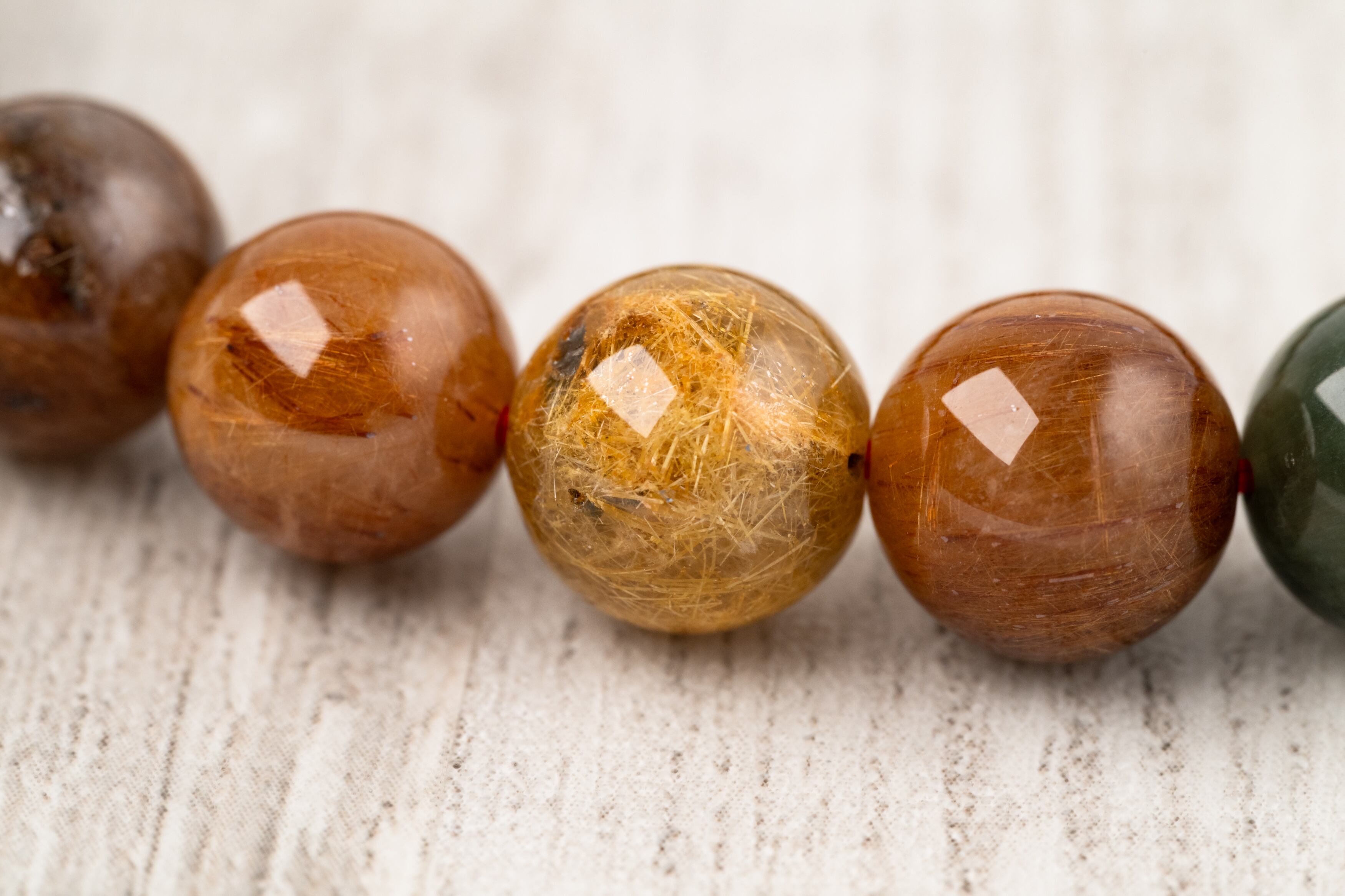 金色、銀色、赤色、銅色など、複数の色のルチルが織りなす模様は一つとして同じものがなく、それぞれのルチルの持つエネルギーが合わさることで総合的な開運力を高めると言われています。