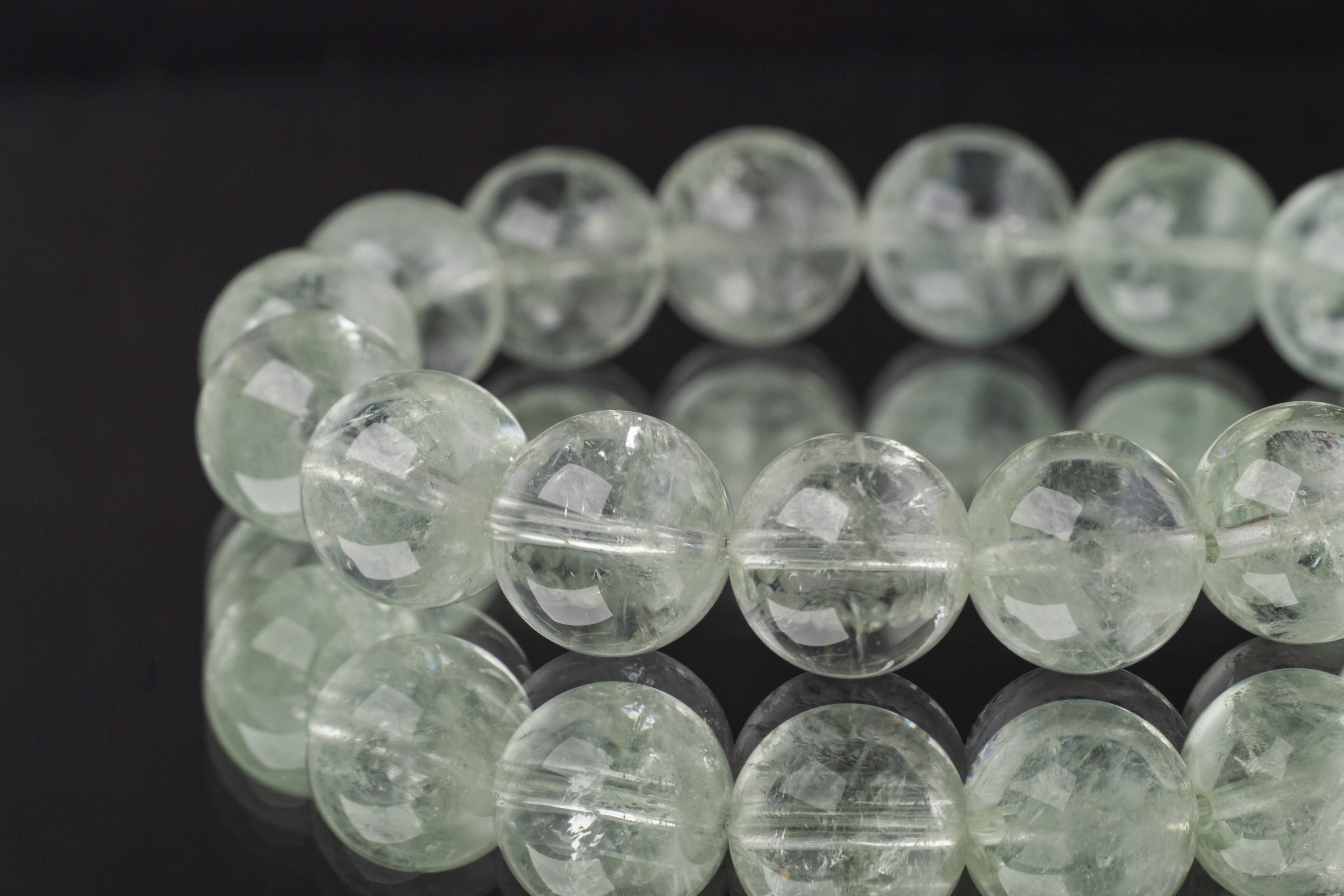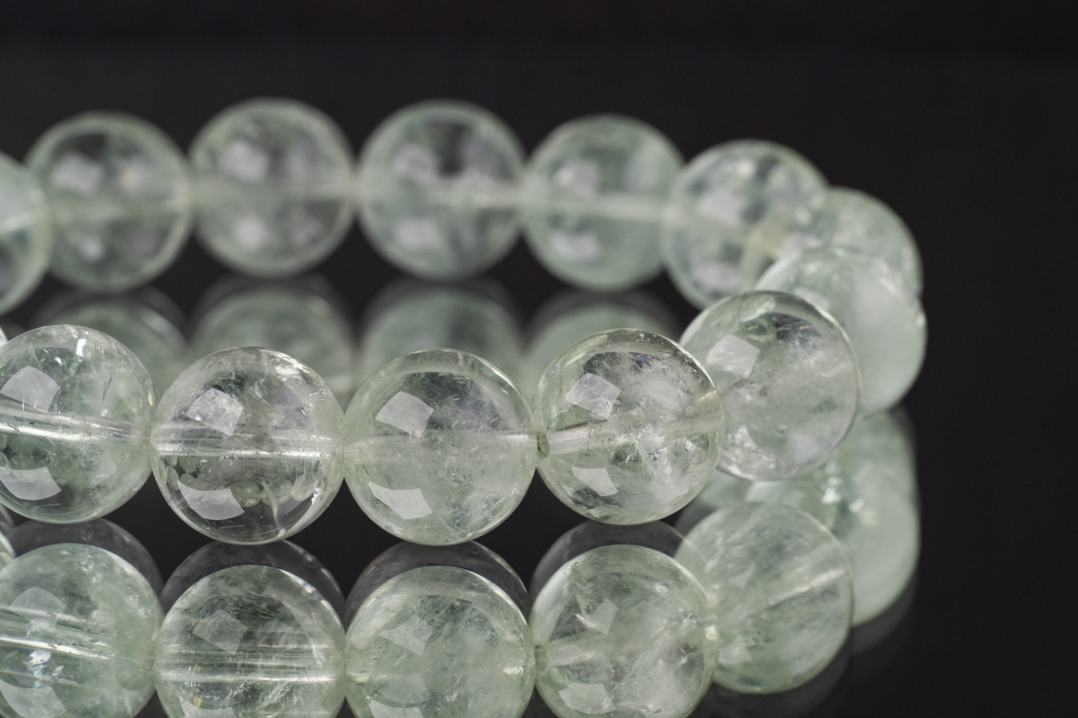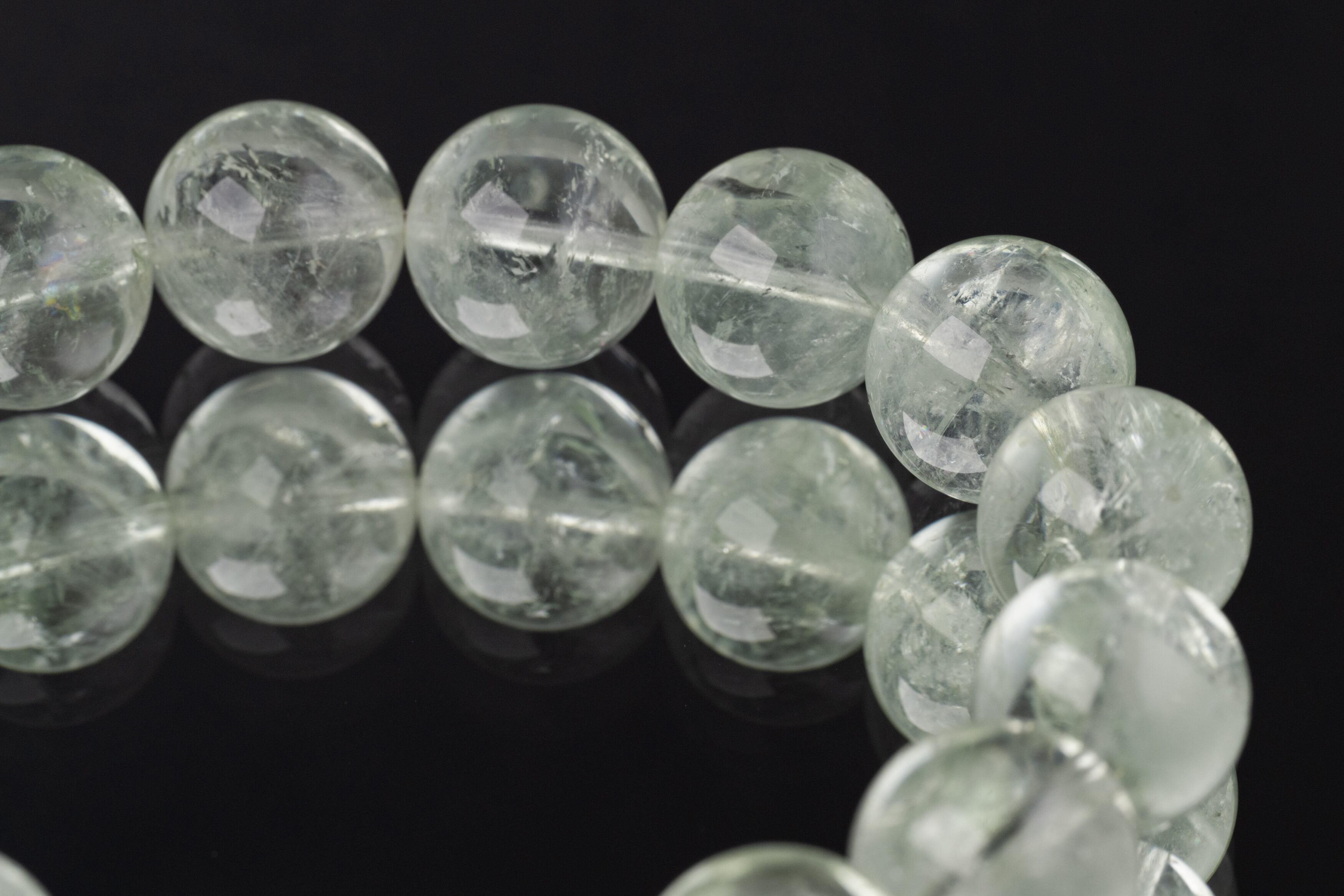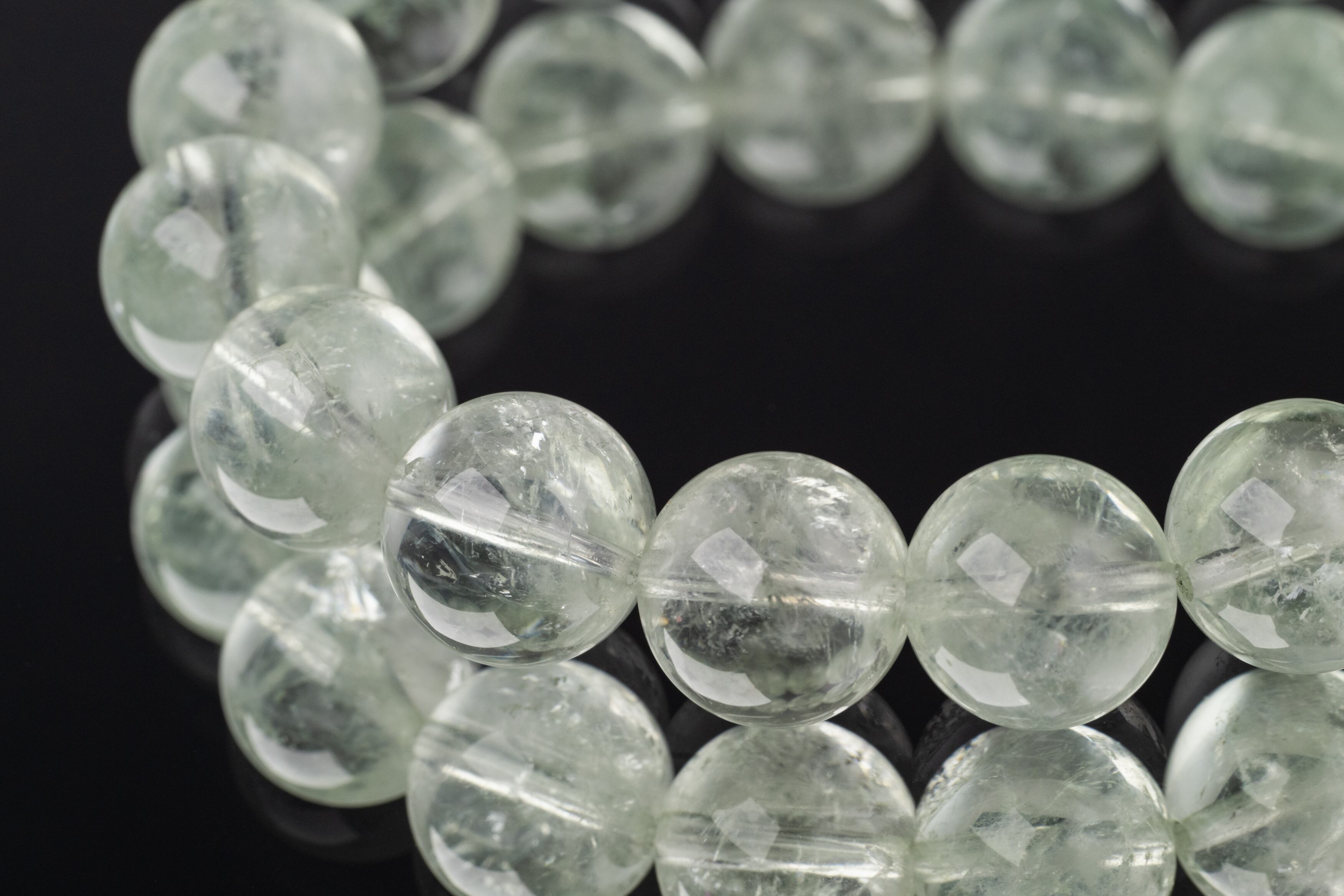プラシオライトは緑色の水晶でその淡く透明感のある緑色が特徴です。