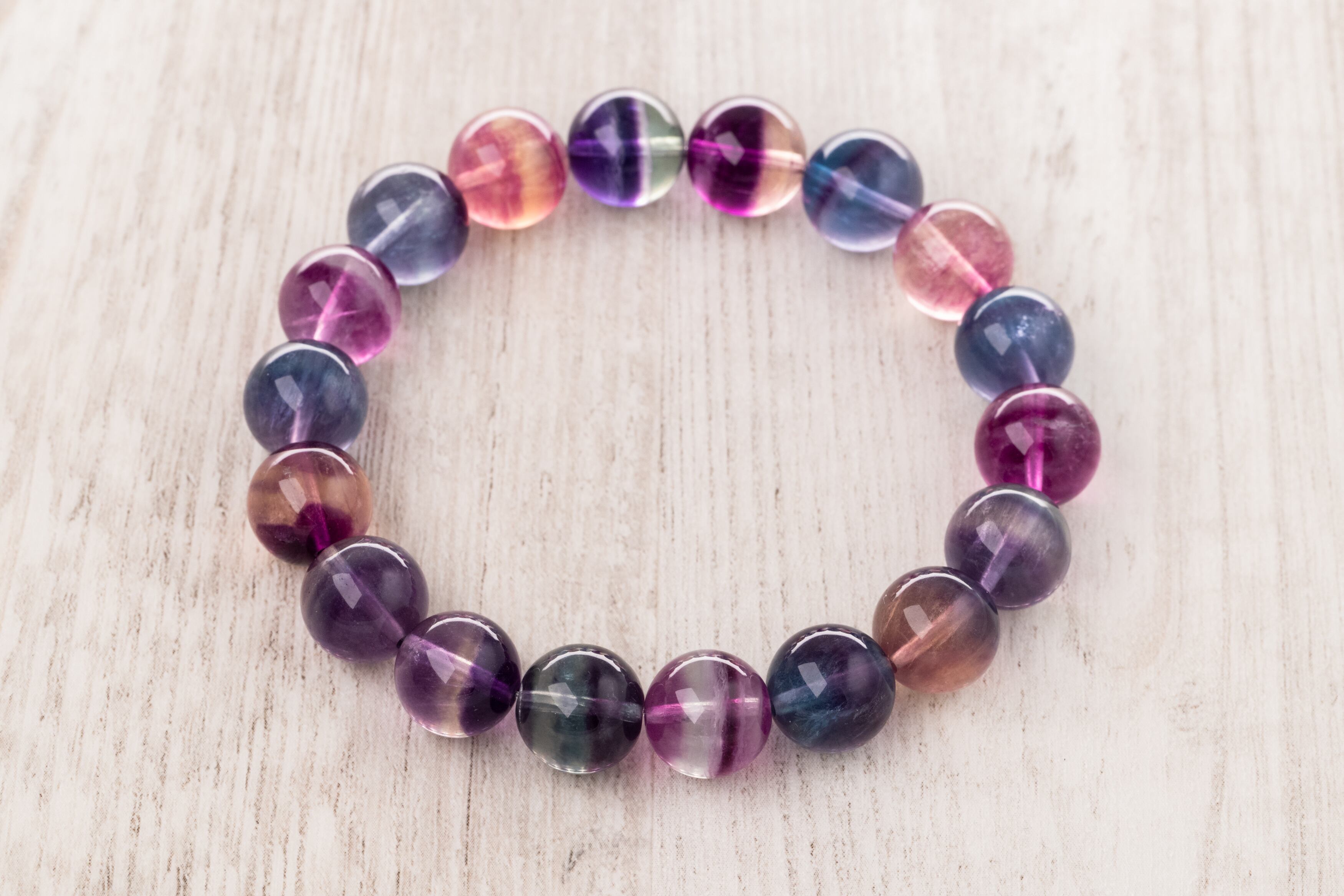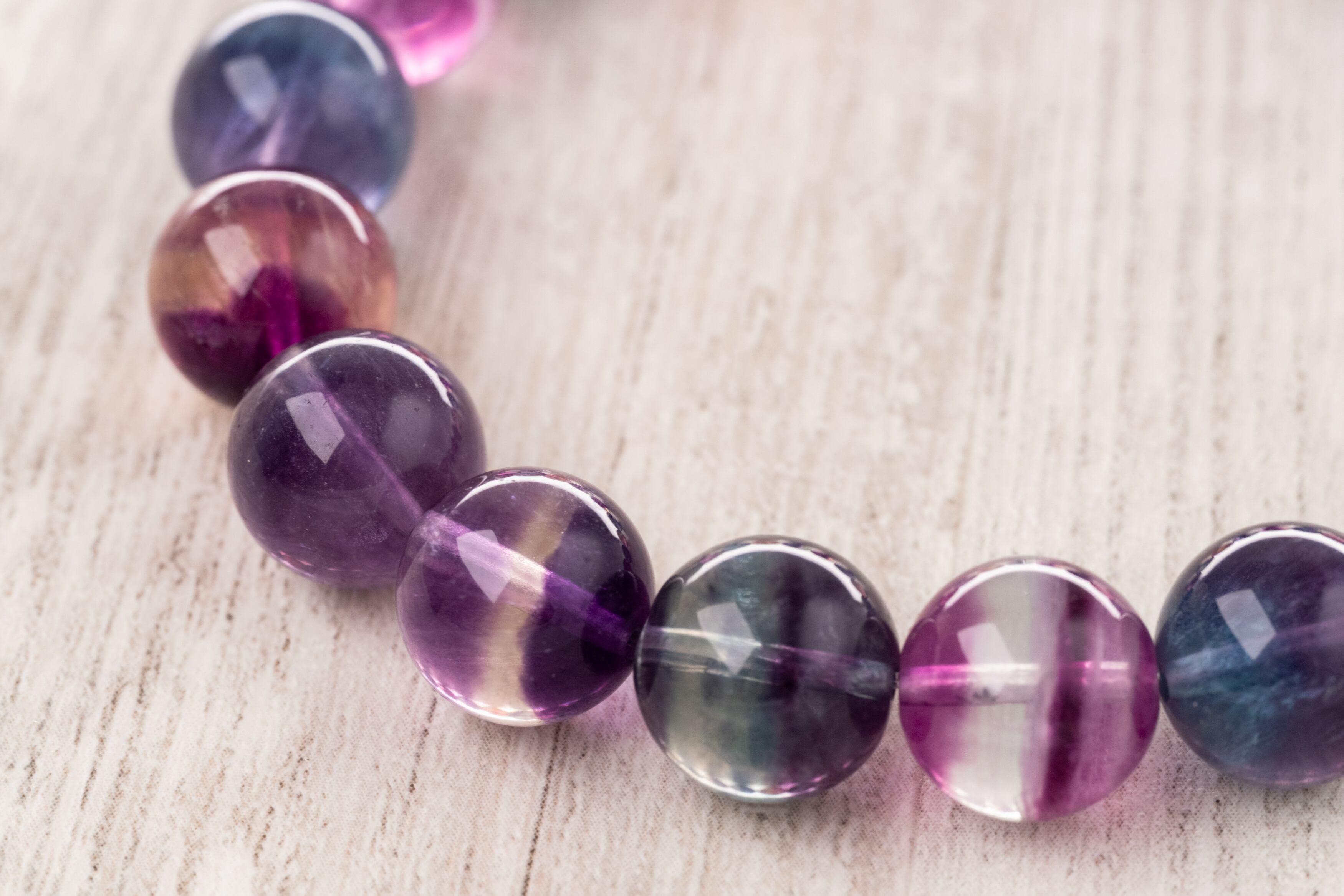 中には一つの結晶内に複数の色が層状に現れる「レインボーフローライト」もあります。