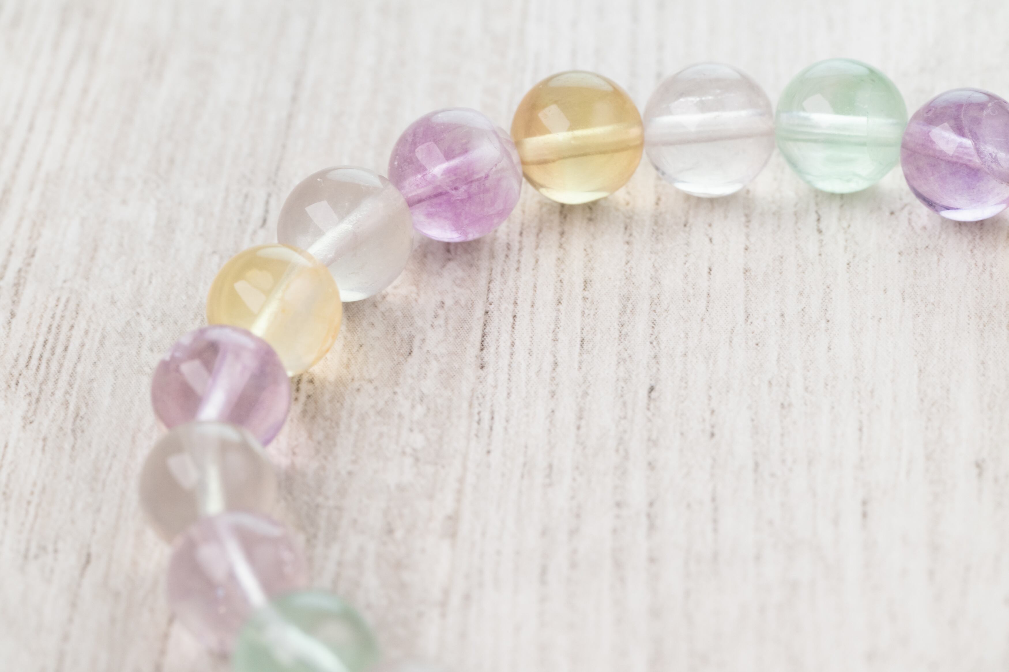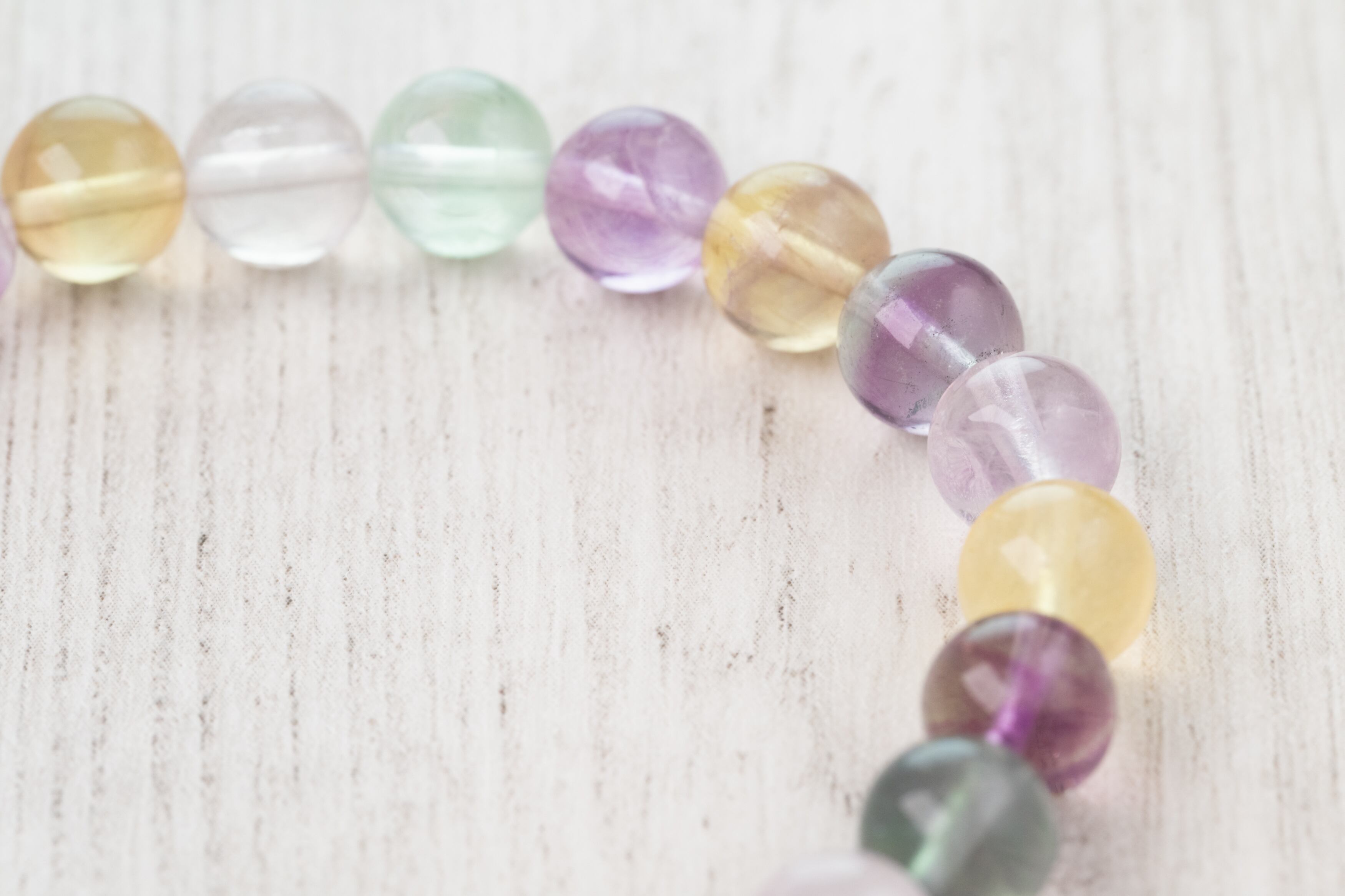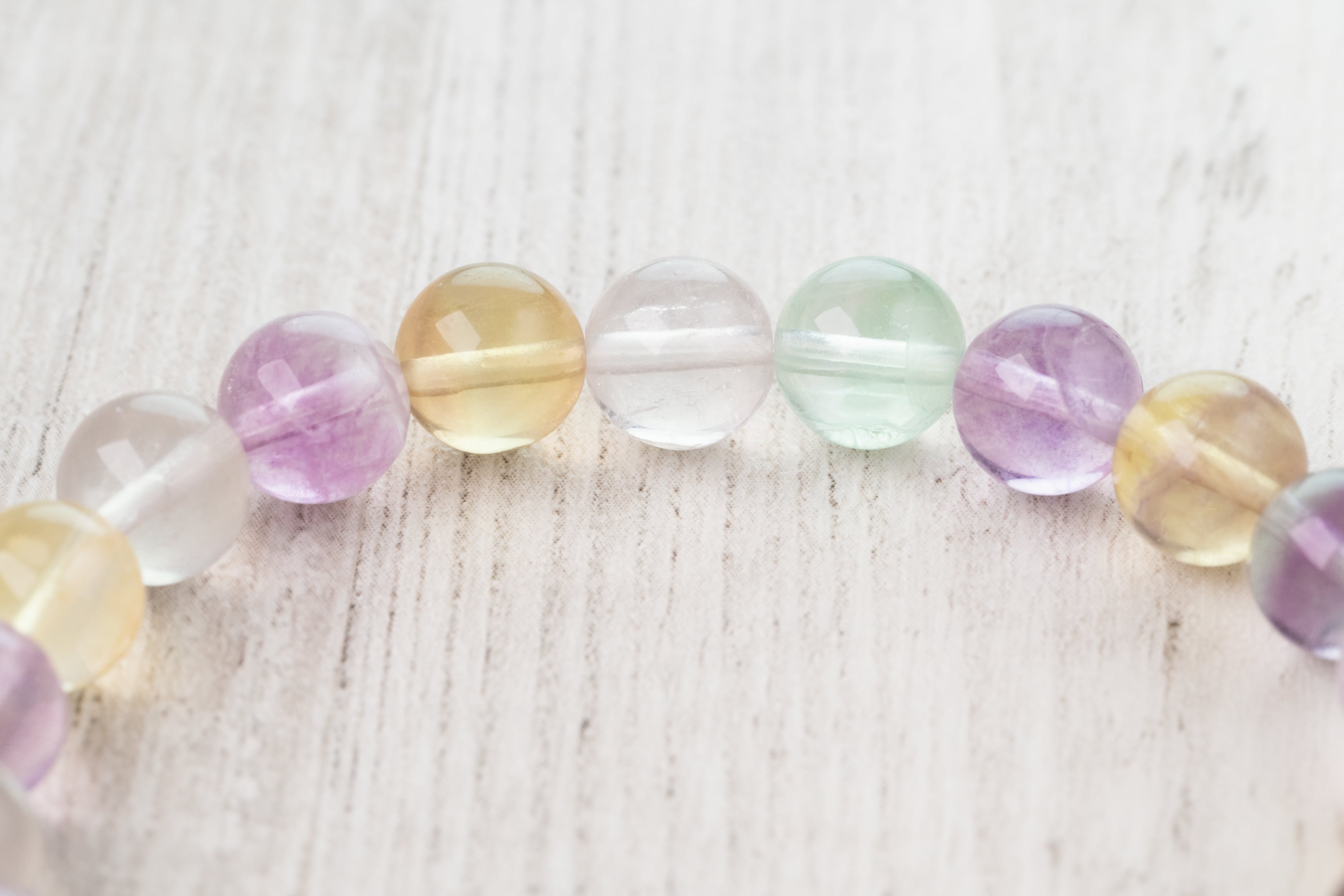 中には一つの結晶内に複数の色が層状に現れる「レインボーフローライト」もあります。