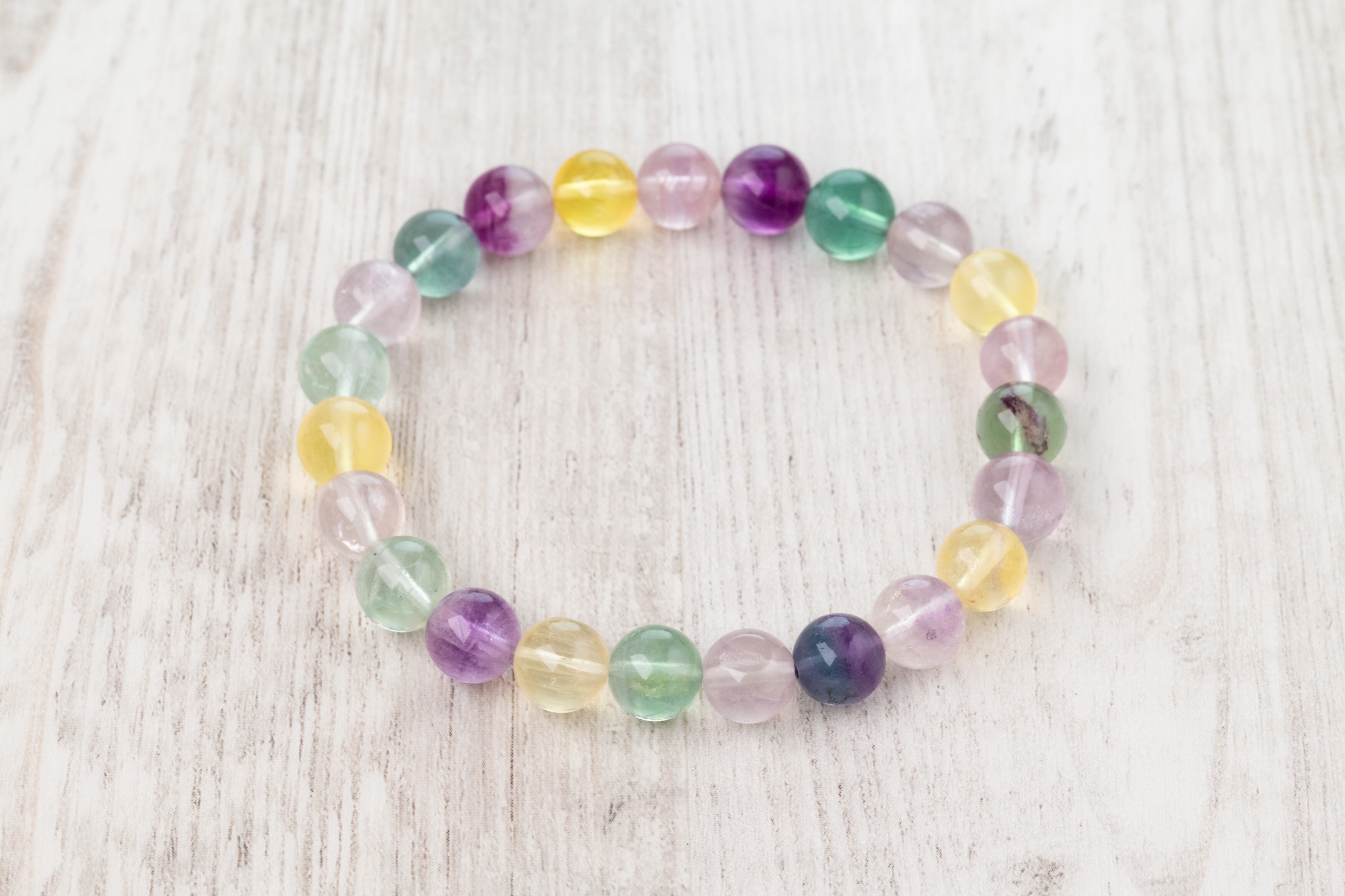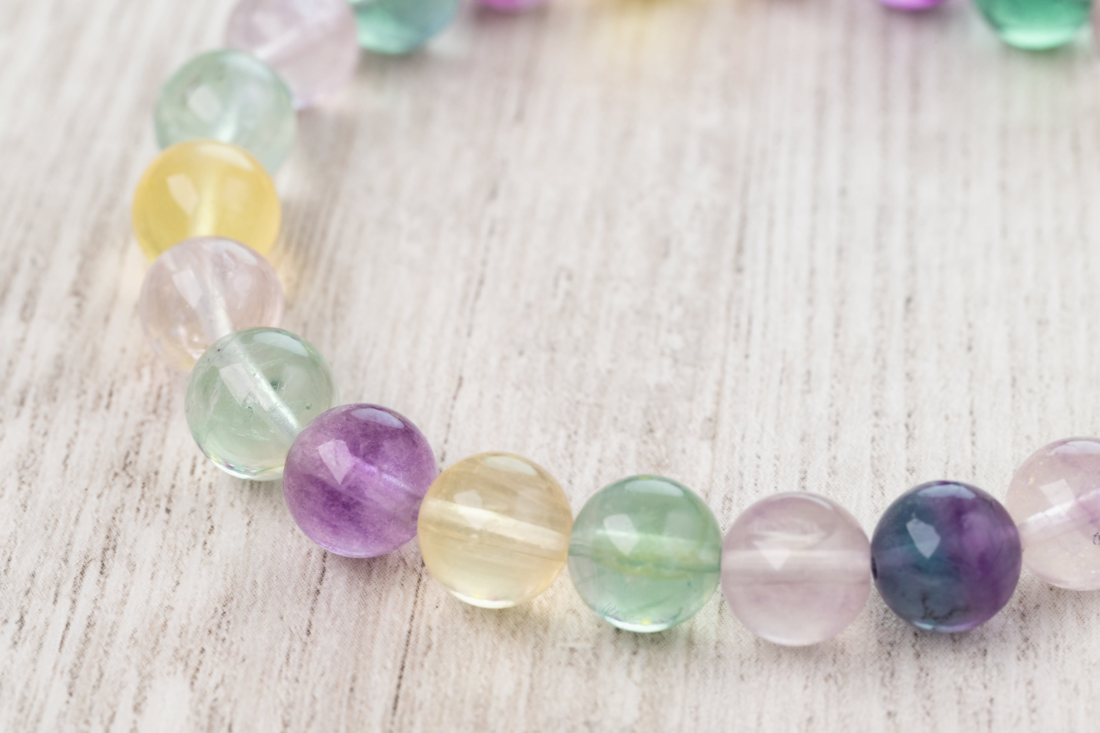 中には一つの結晶内に複数の色が層状に現れる「レインボーフローライト」もあります。