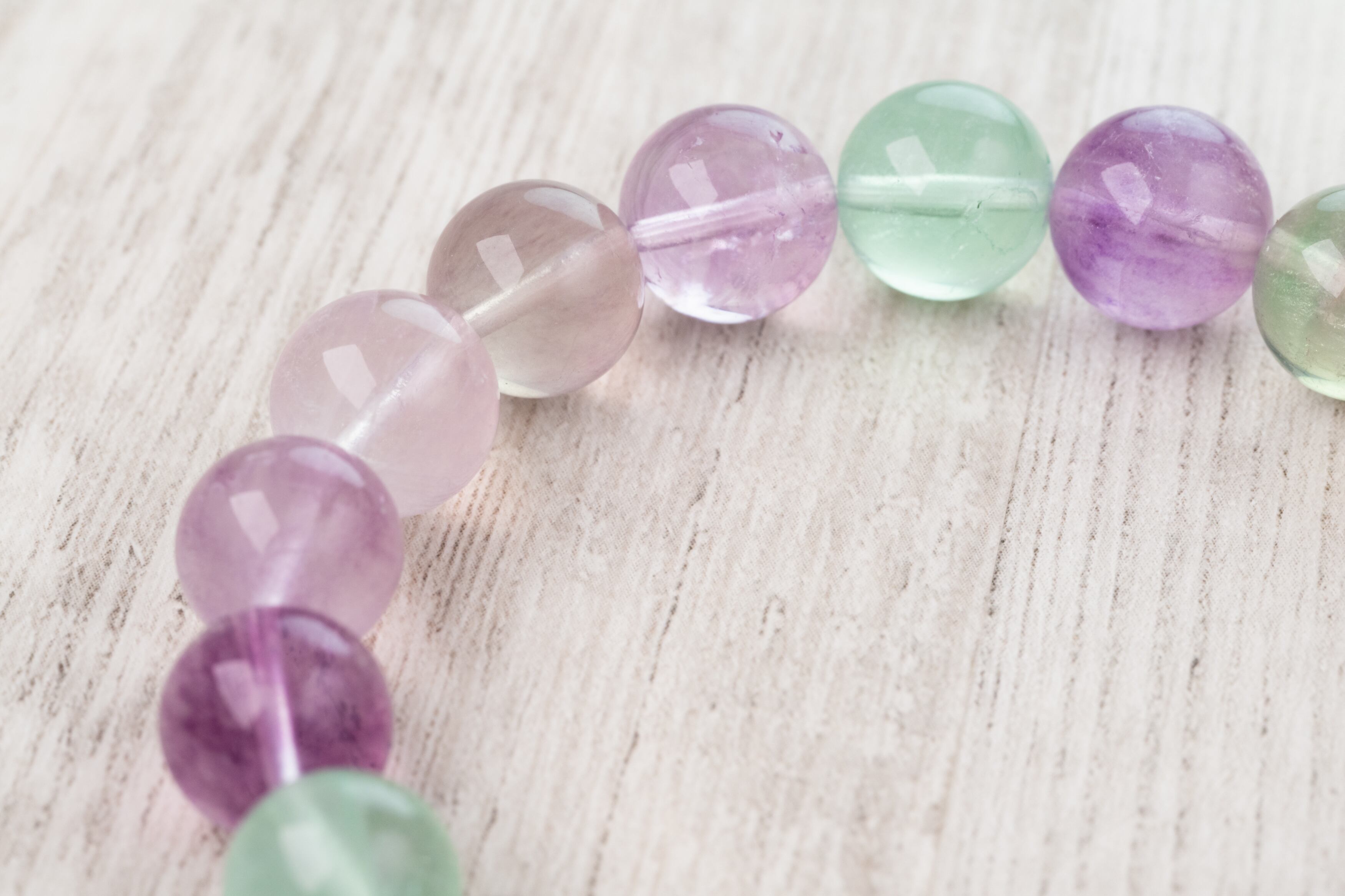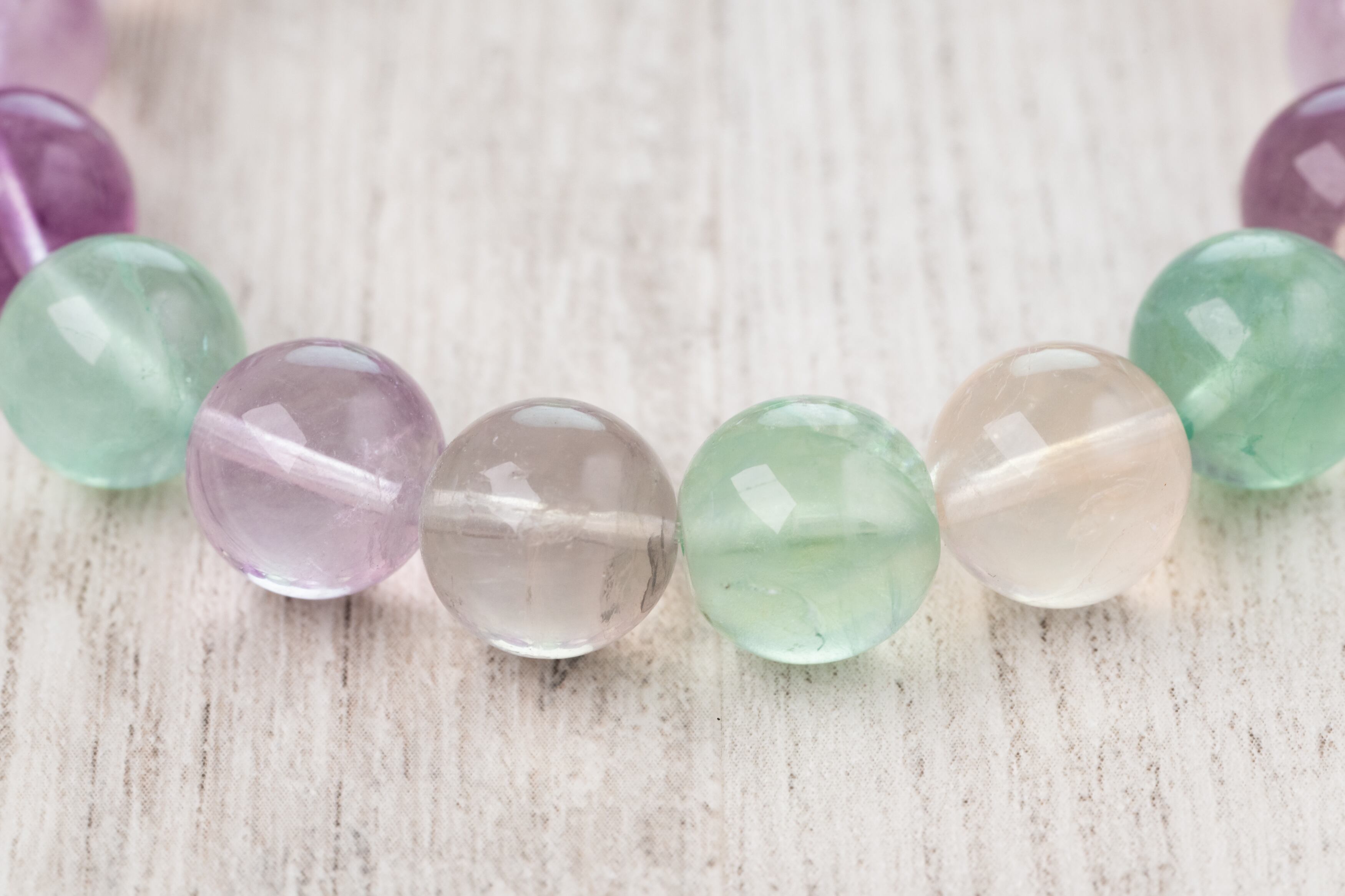中には一つの結晶内に複数の色が層状に現れる「レインボーフローライト」もあります。
