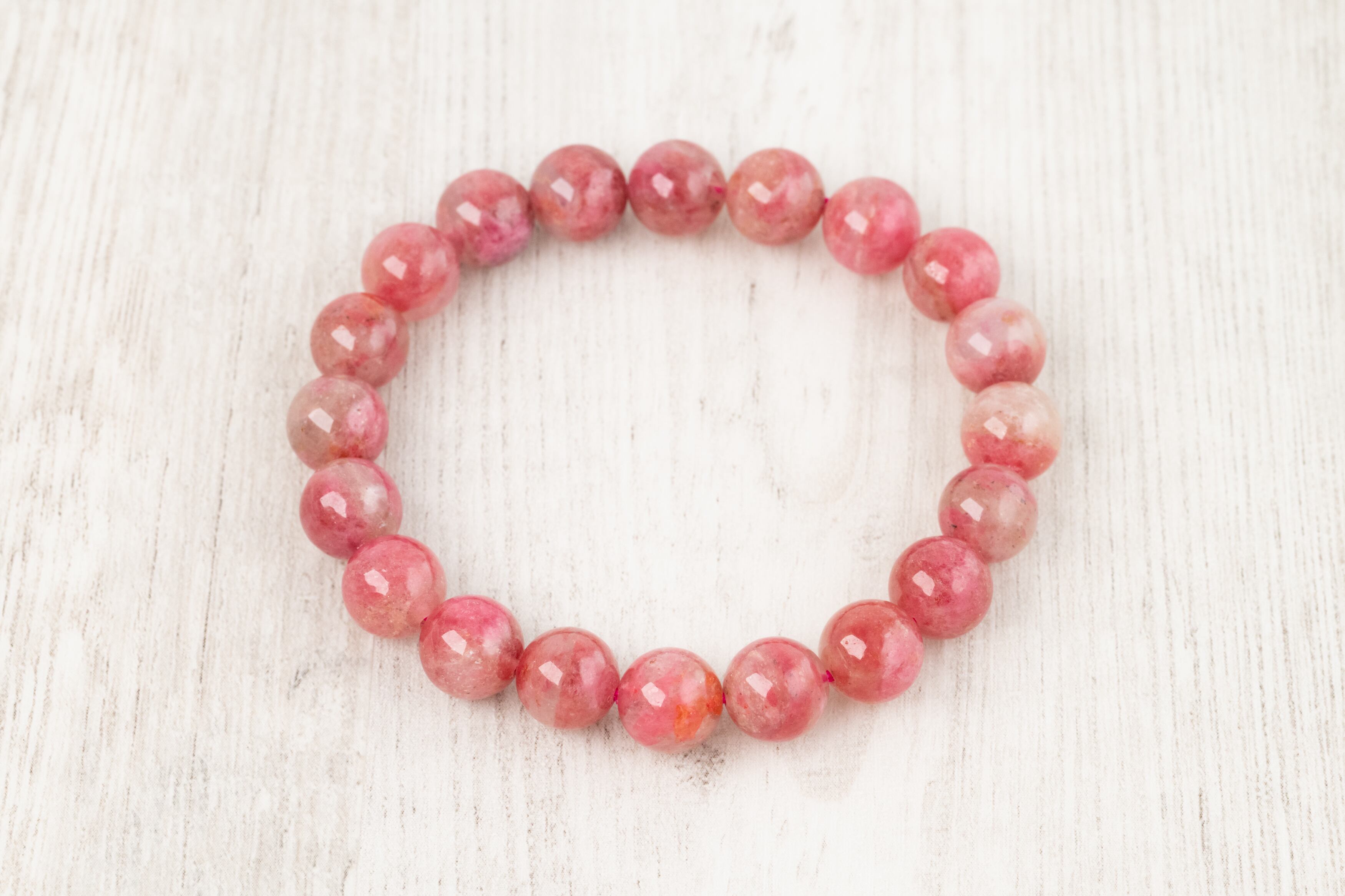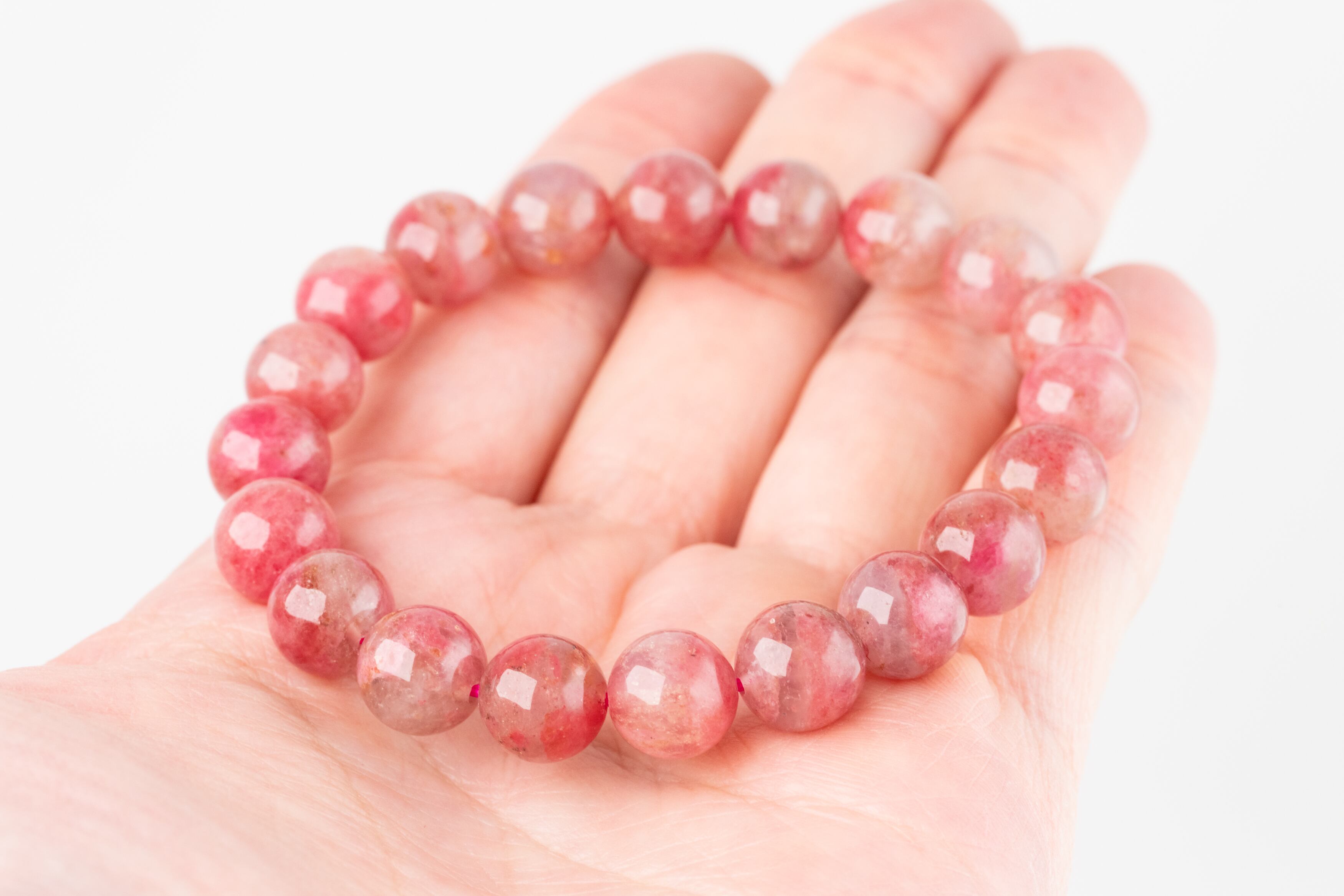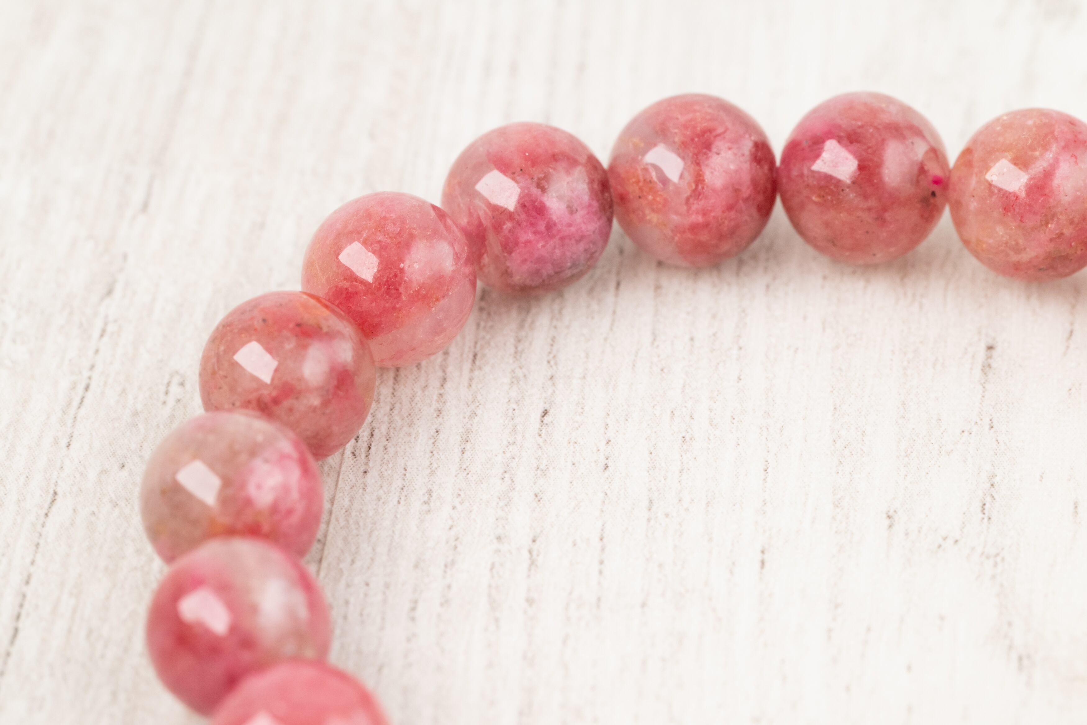 ロードナイトの持つ薔薇色の濃淡と水晶のクリアな部分や白い内包物が織りなす模様は一つとして同じものがありません。