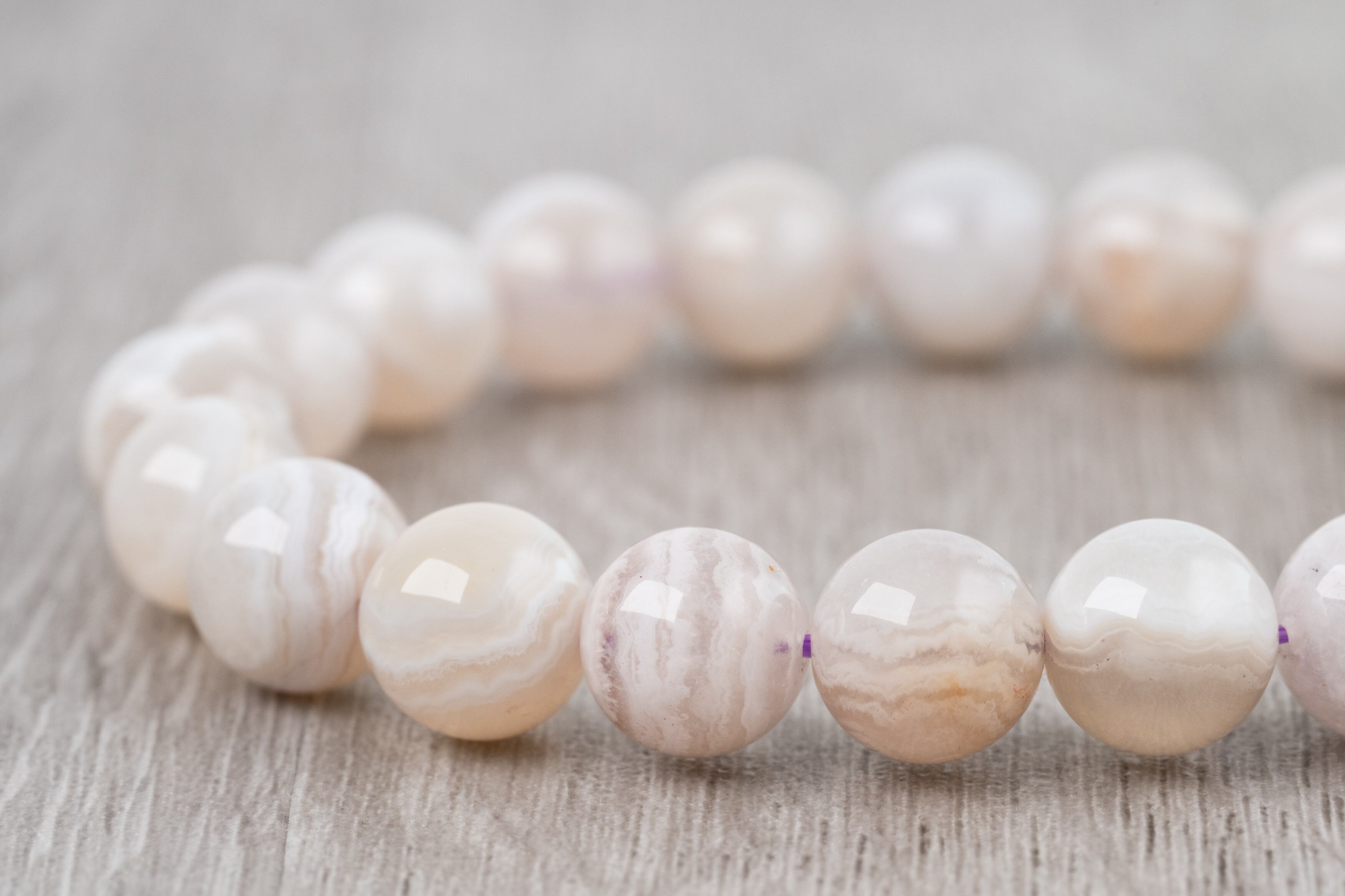 通常のクレイジーレースアゲートの持つ複雑で躍動感のある模様に加え、アメジストの成分が混ざり込むことで、淡く美しい紫色を帯びているのが特徴です。