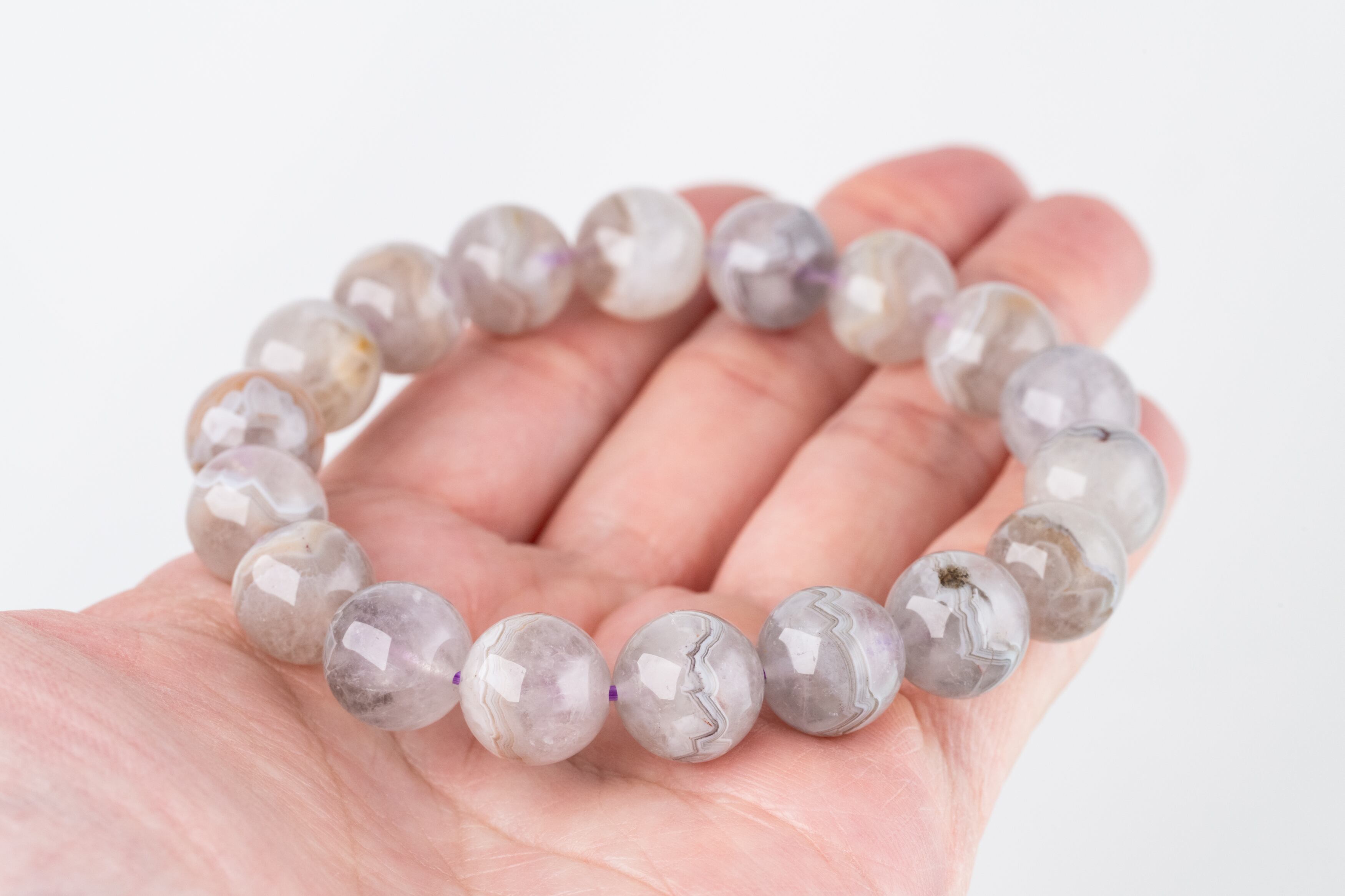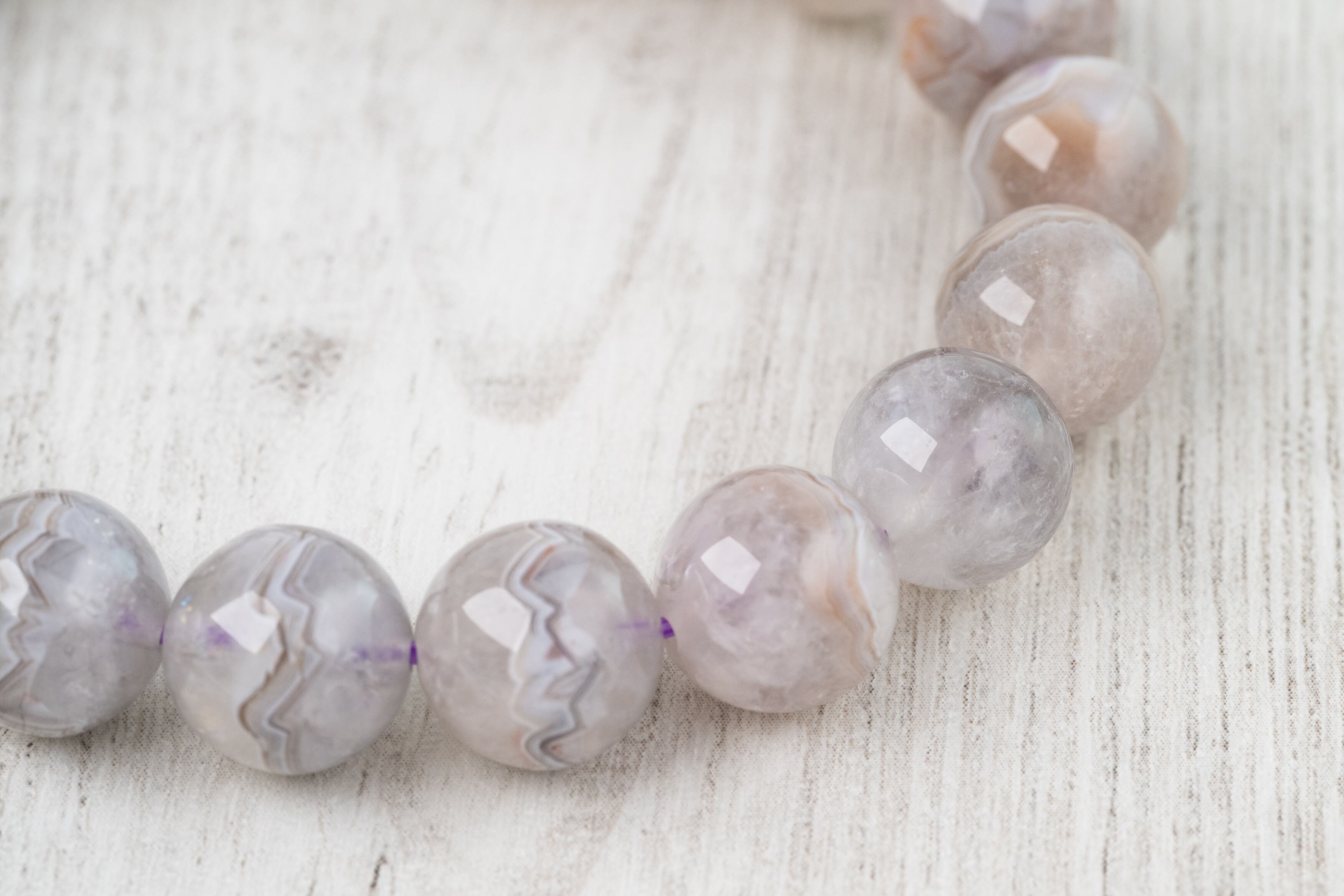 比較的丈夫なアゲートと、紫外線に弱いアメジストの性質を考慮し、丁寧なお手入れをおすすめします。