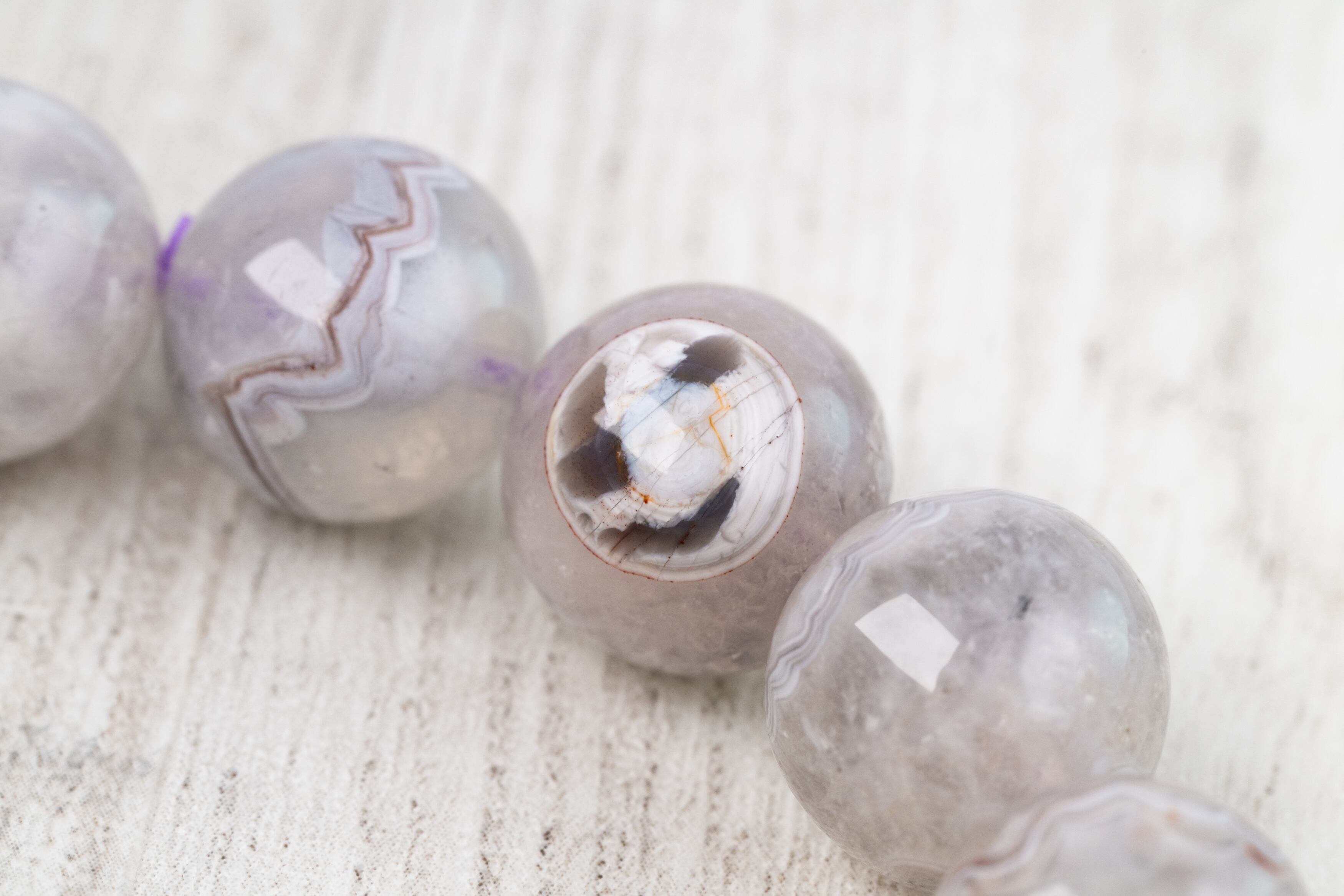 比較的丈夫なアゲートと、紫外線に弱いアメジストの性質を考慮し、丁寧なお手入れをおすすめします。