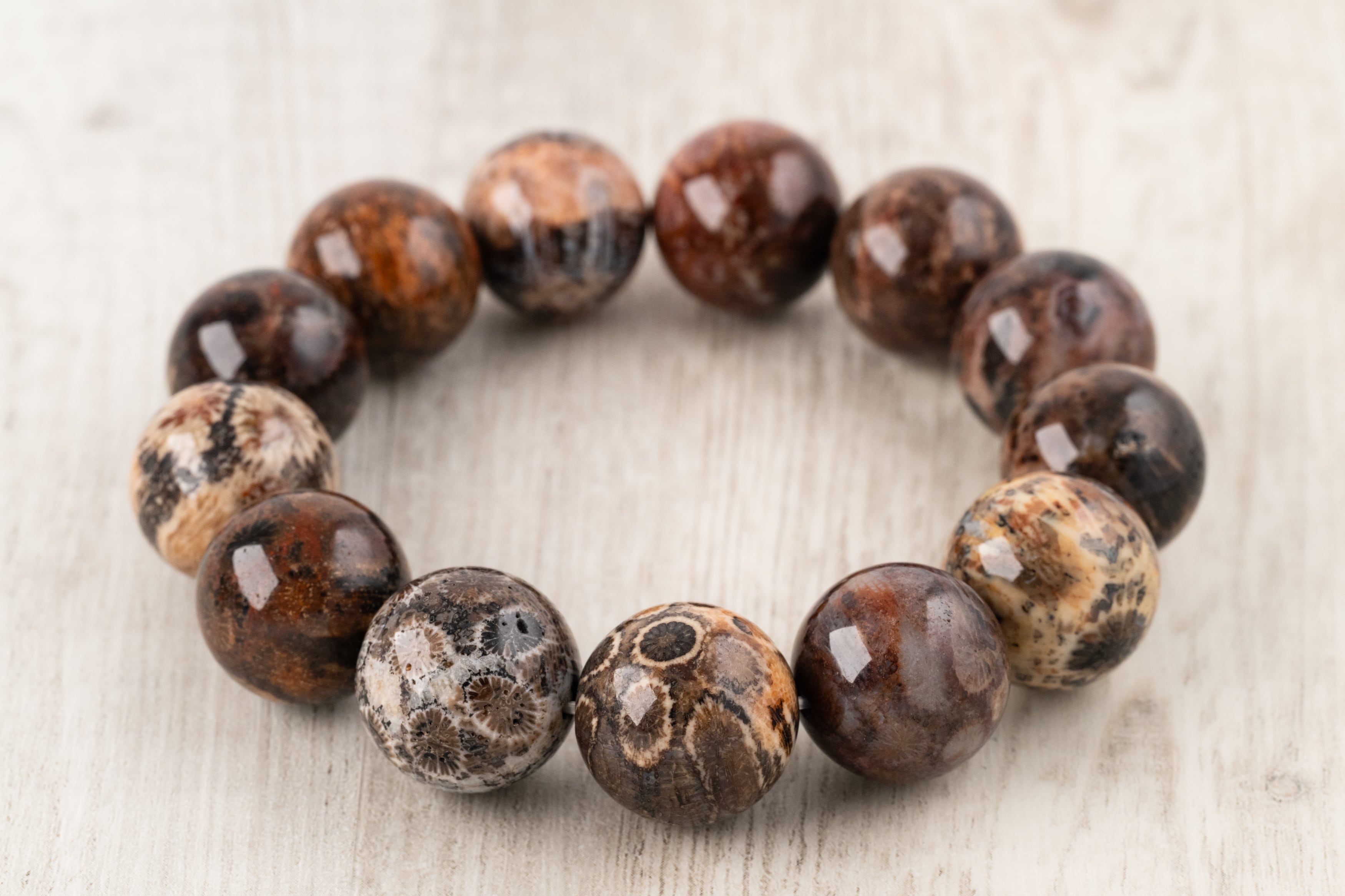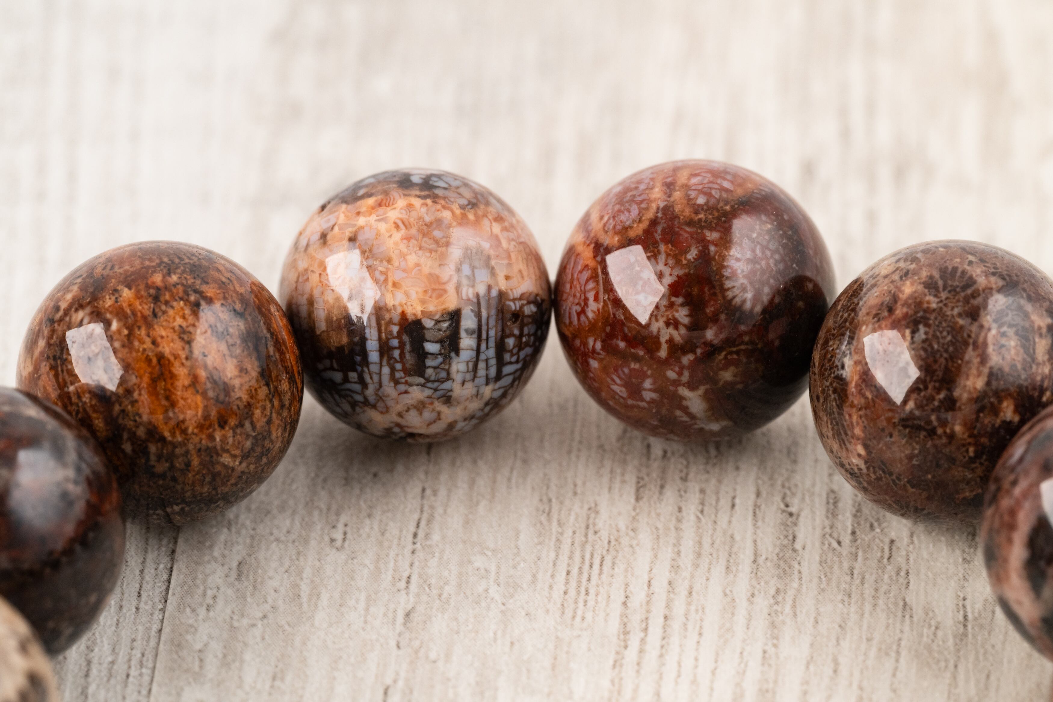 太古のサンゴが気の遠くなるような長い年月をかけてアゲート(瑪瑙)やカルセドニー(玉髄)などに置き換わって化石となった、非常にユニークな天然石です。