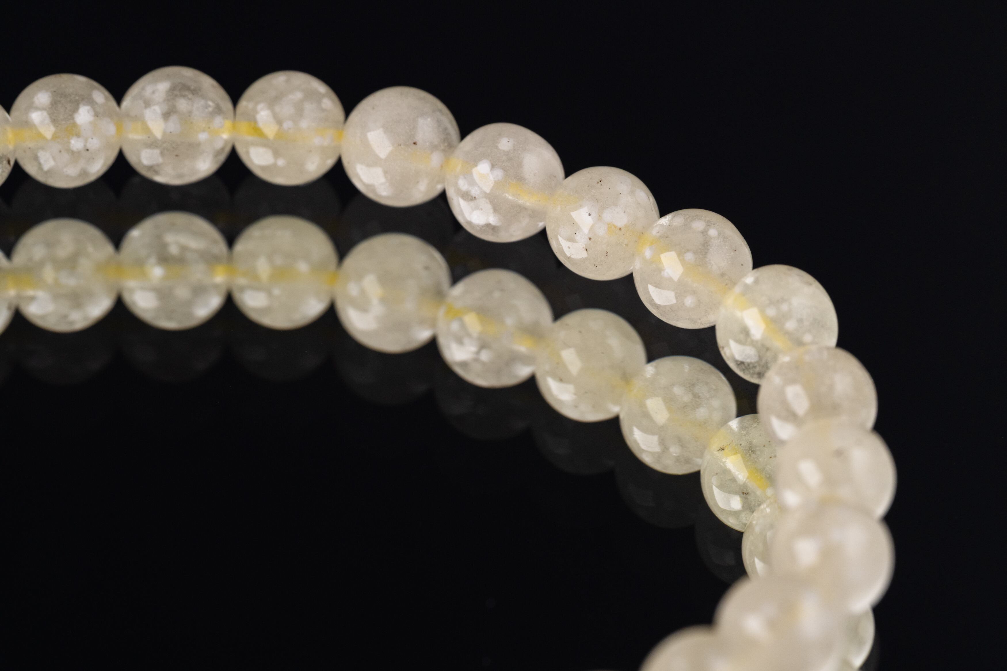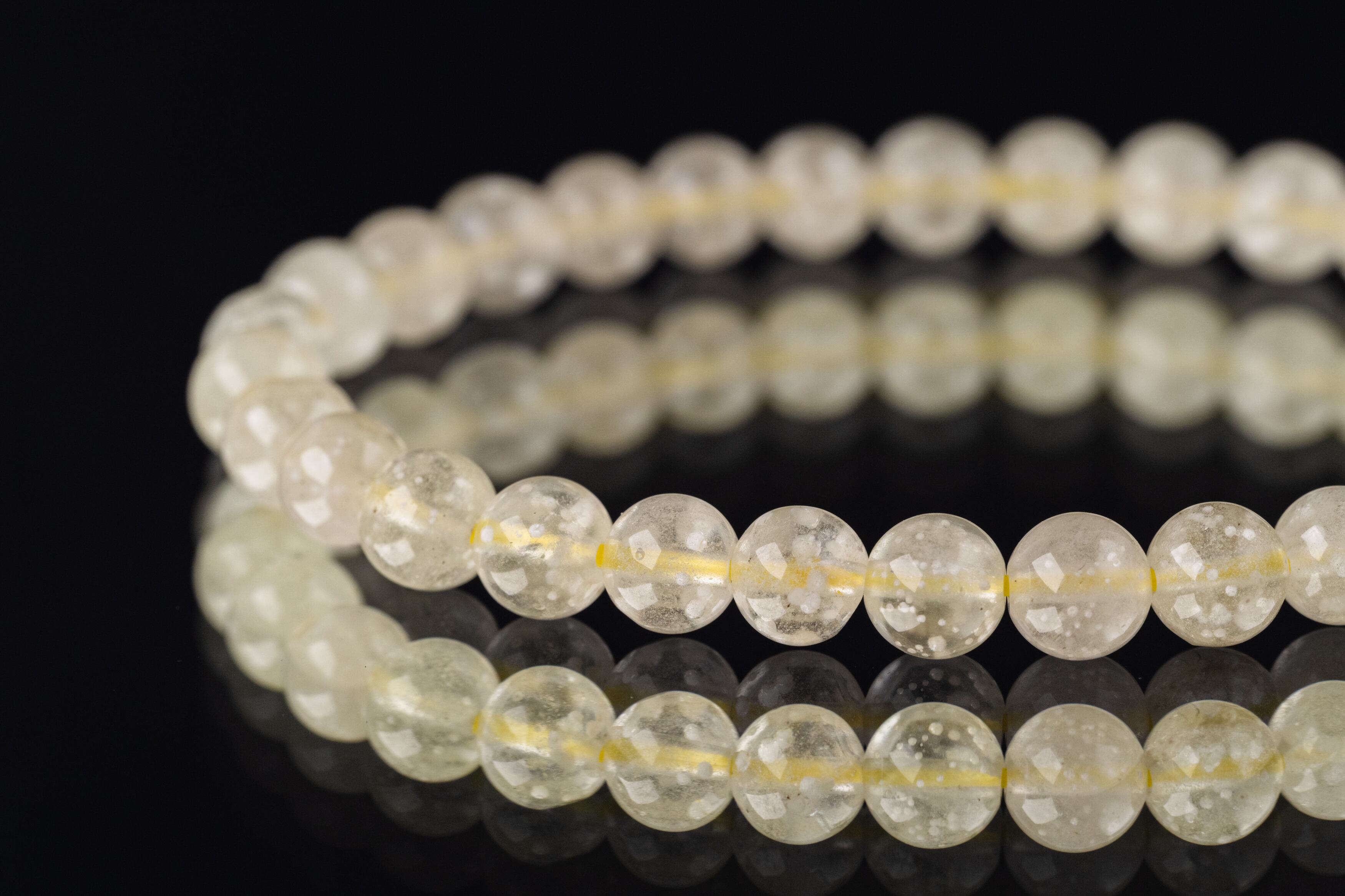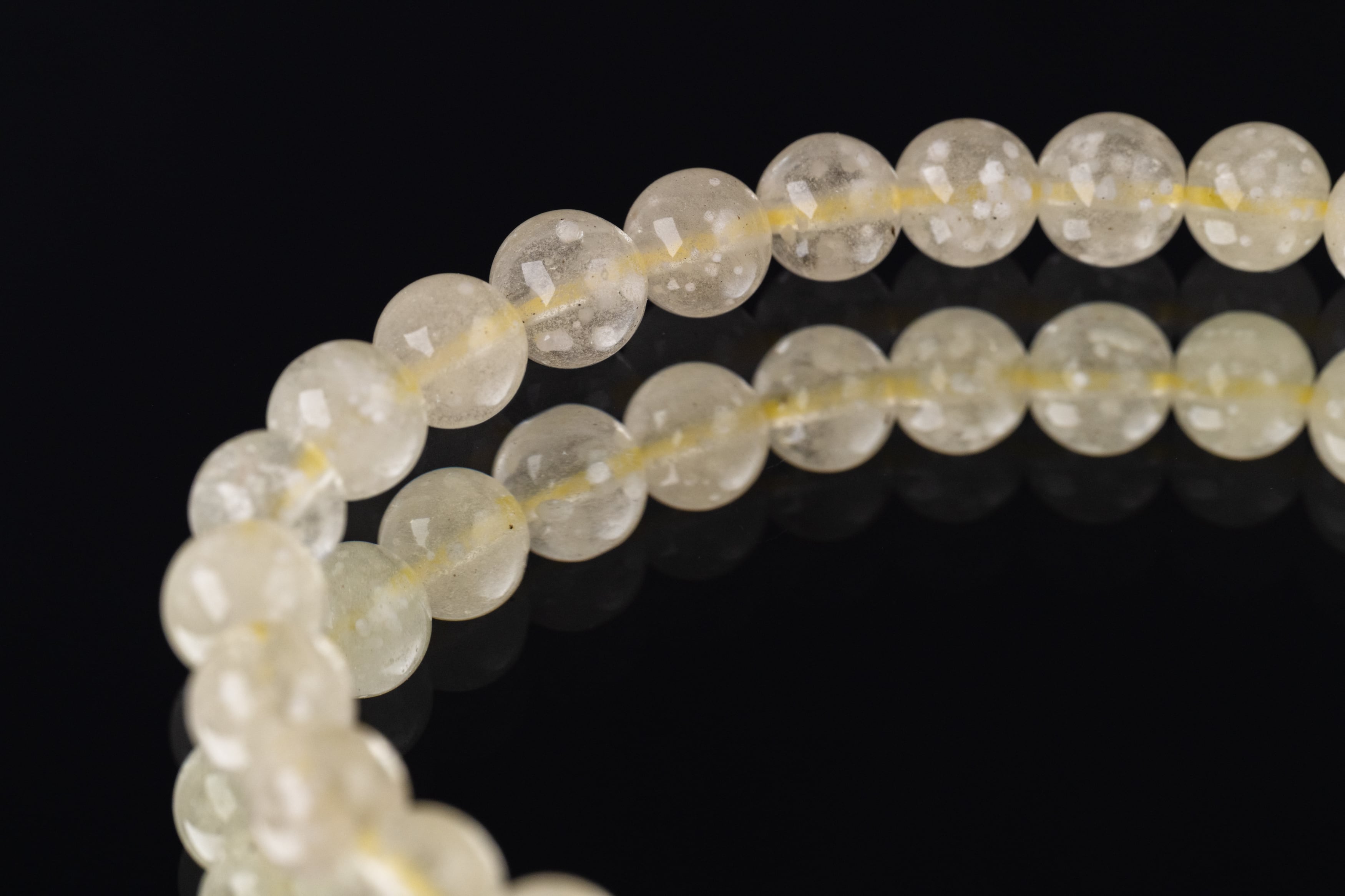 淡い黄色から半透明の黄色、時には乳白色を帯びた色合いが特徴で、表面には独特の模様や気泡が見られます。