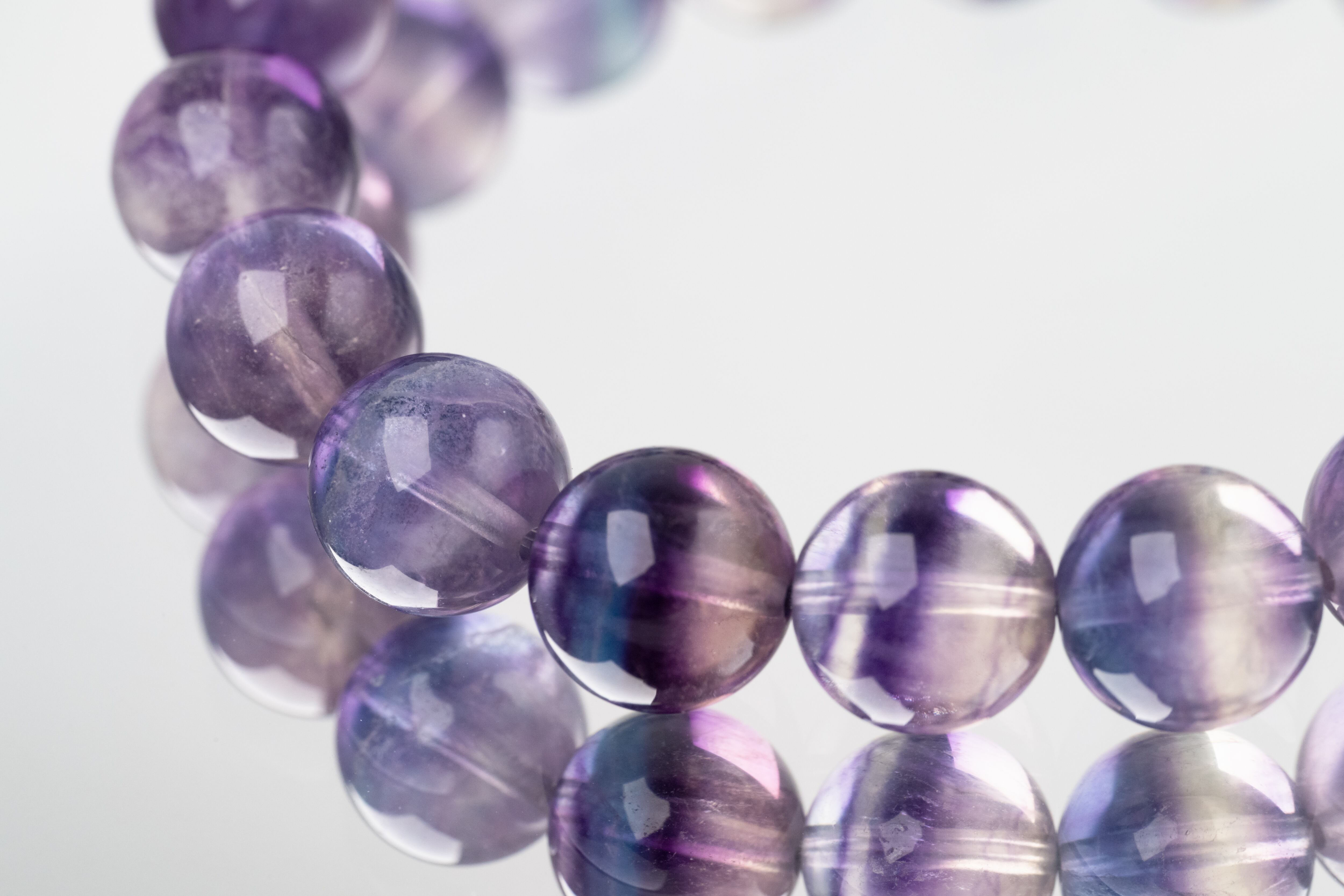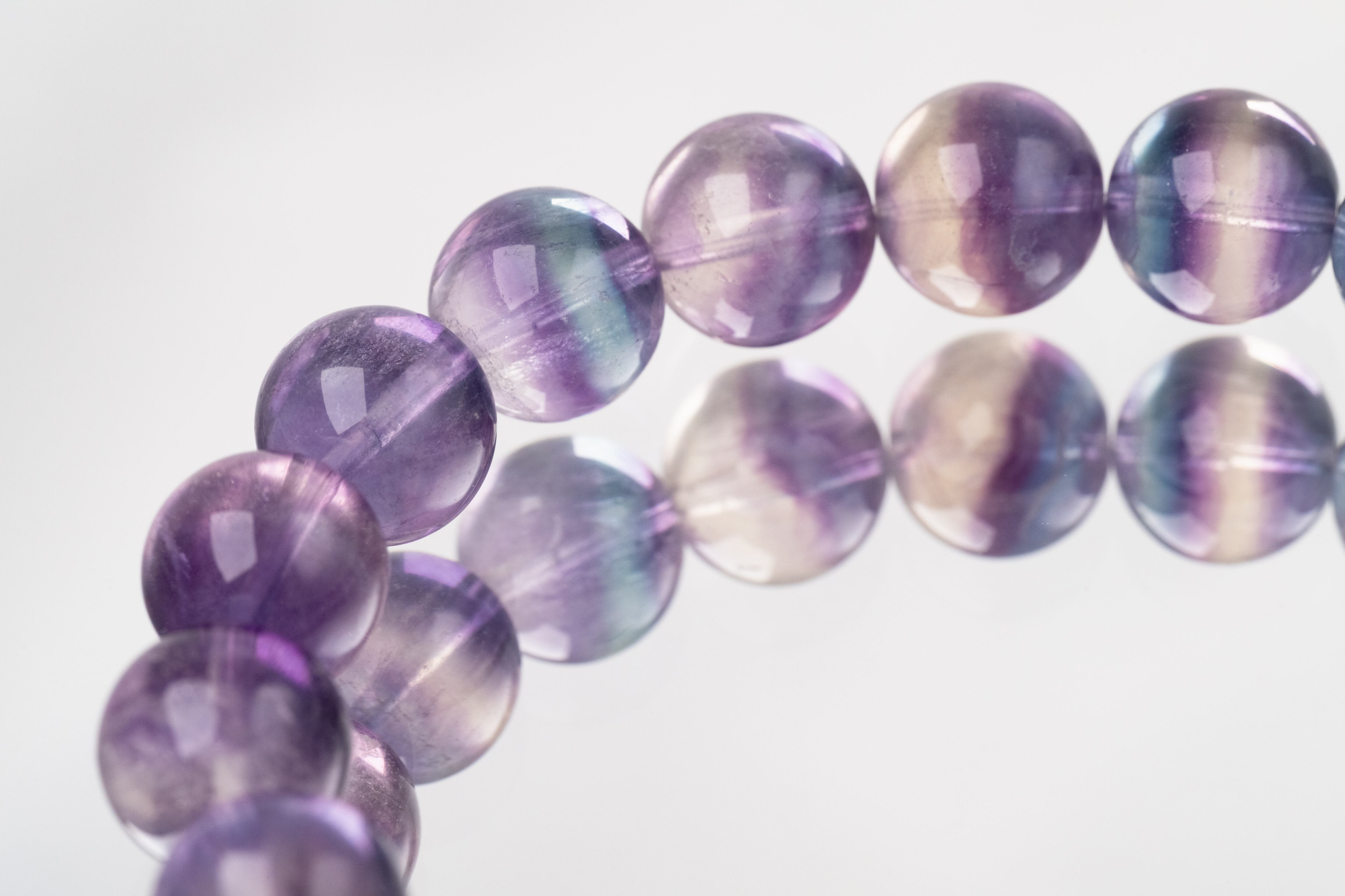 中には一つの結晶内に複数の色が層状に現れる「レインボーフローライト」もあります。