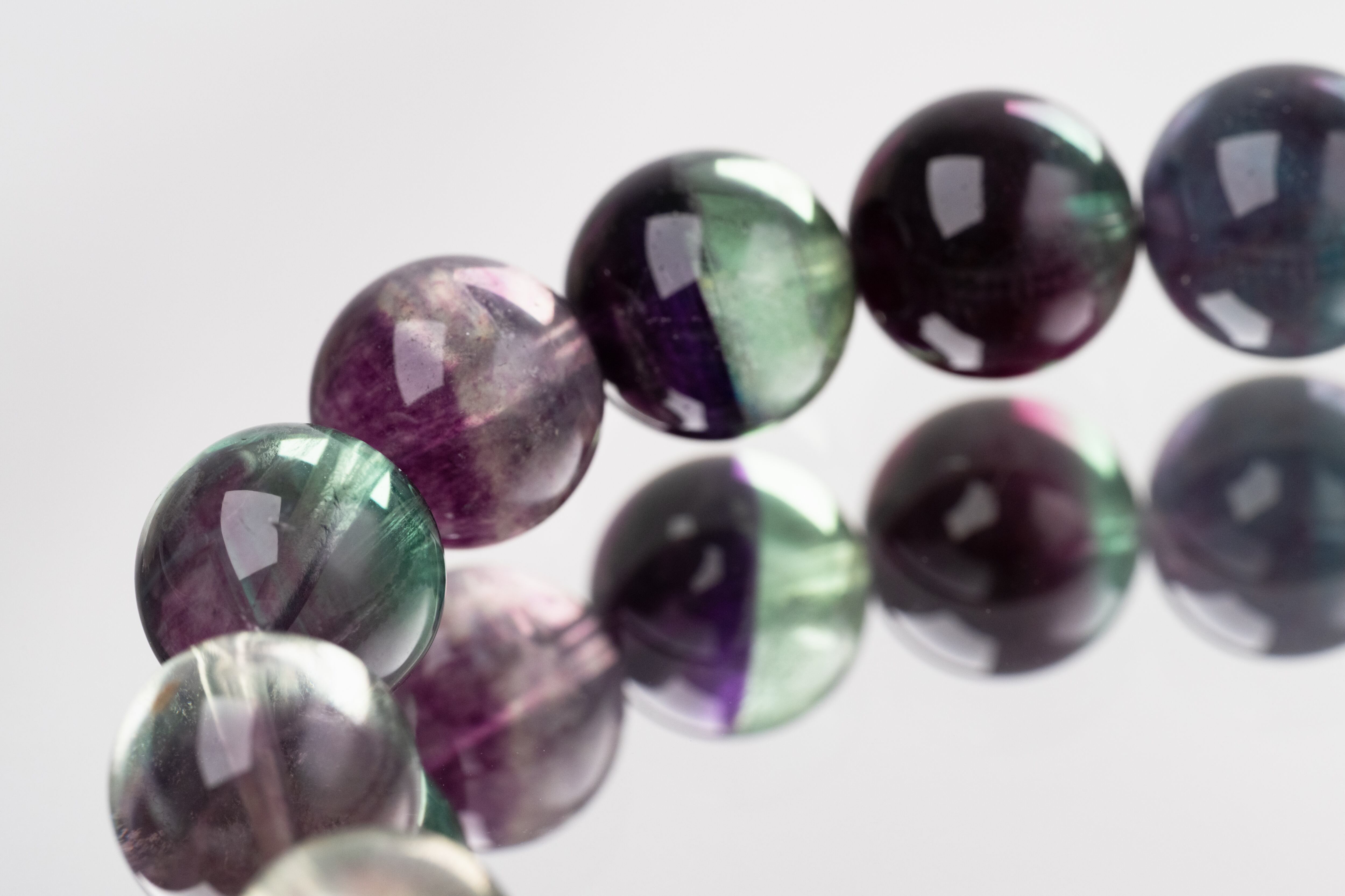 中には一つの結晶内に複数の色が層状に現れる「レインボーフローライト」もあります。