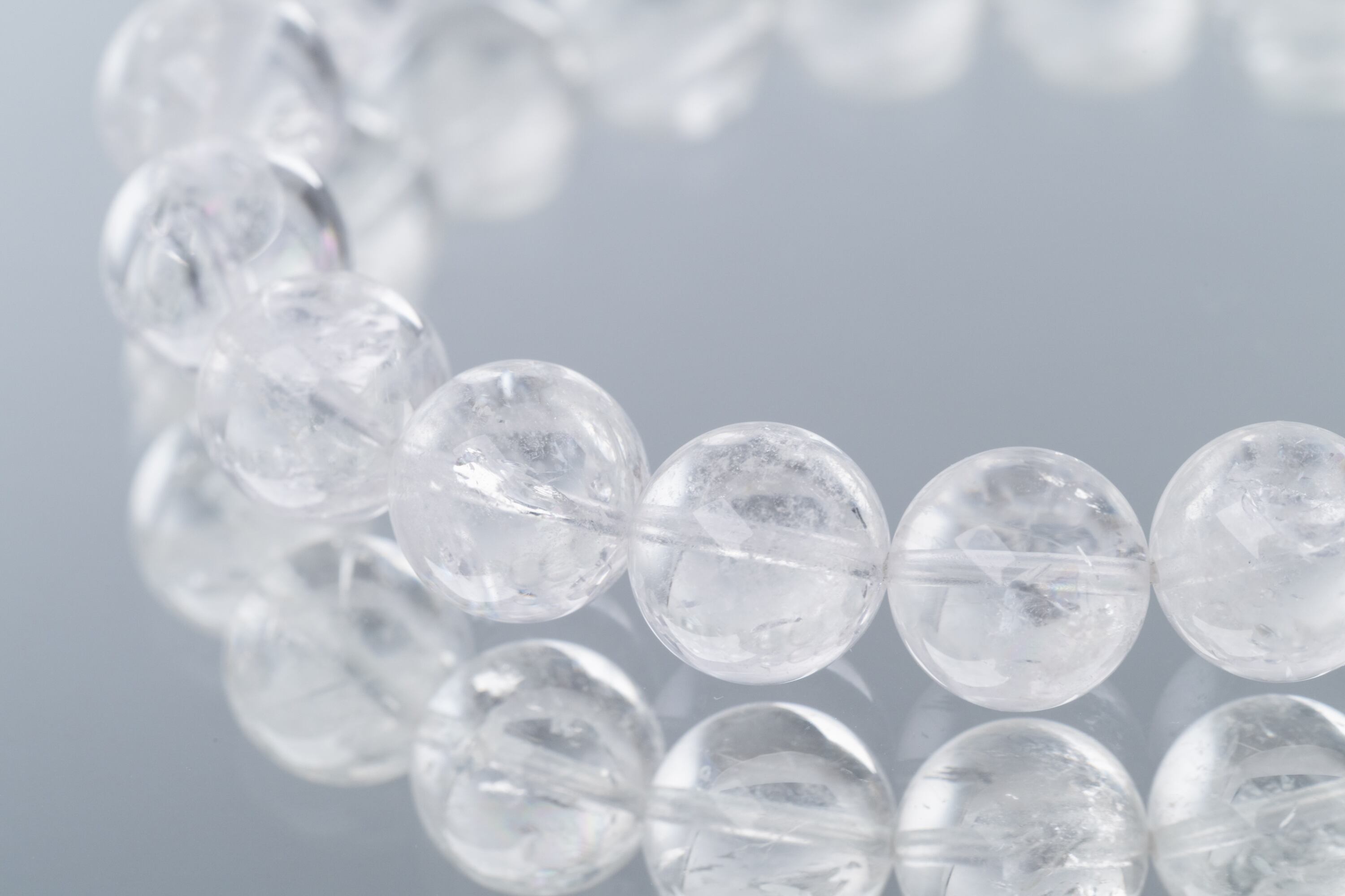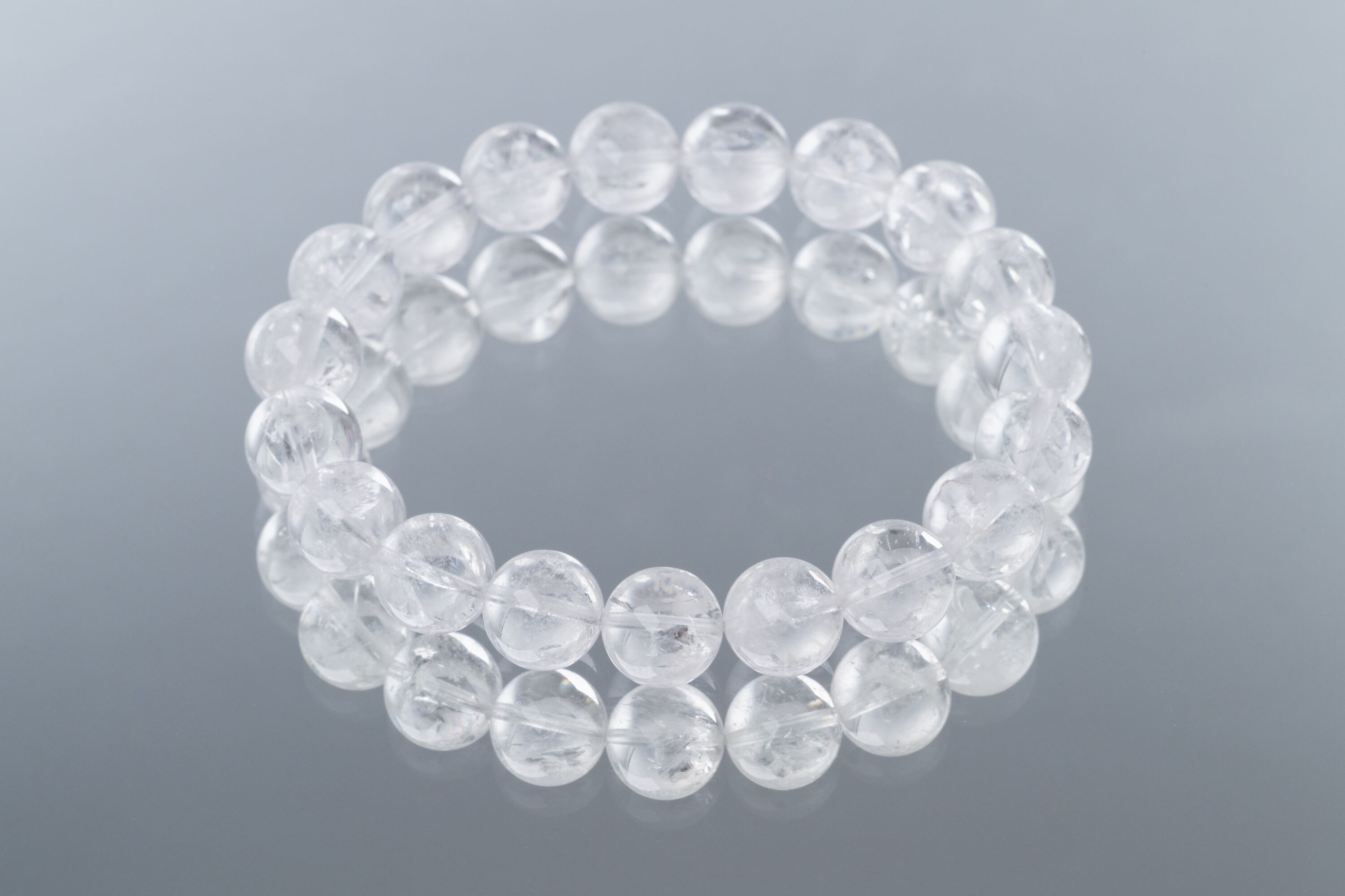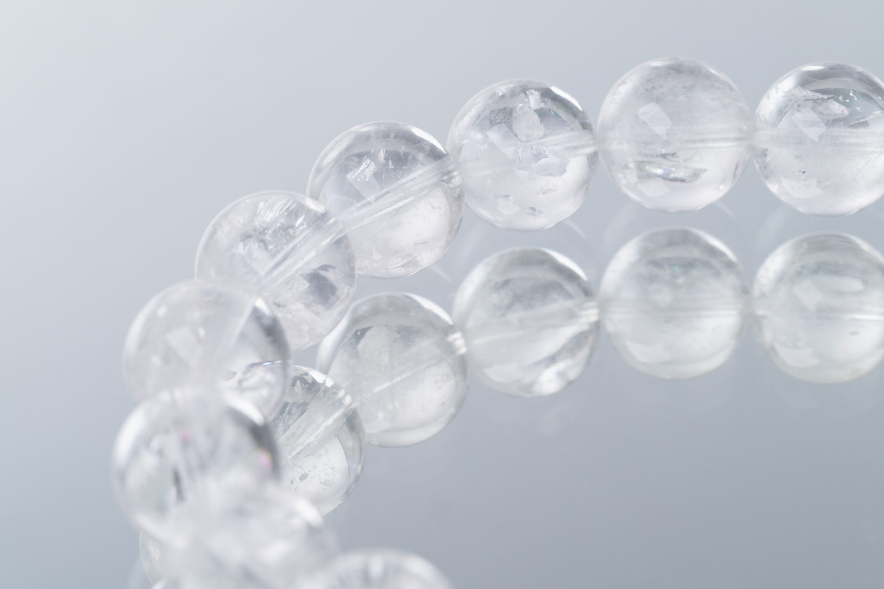アウェイクストーンとしても人気のあるレムリアン水晶の少し珍しい丸玉ブレスレットです。