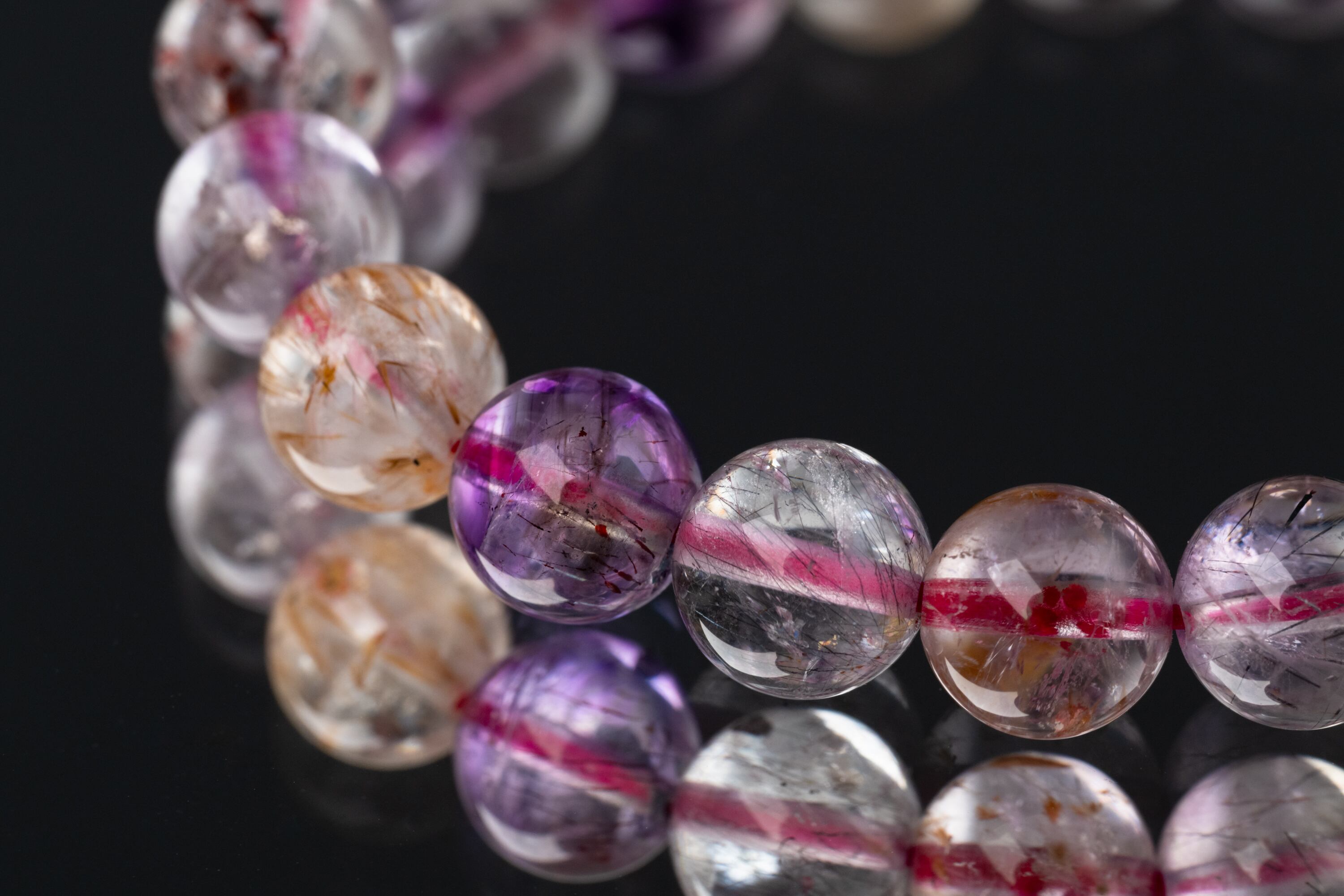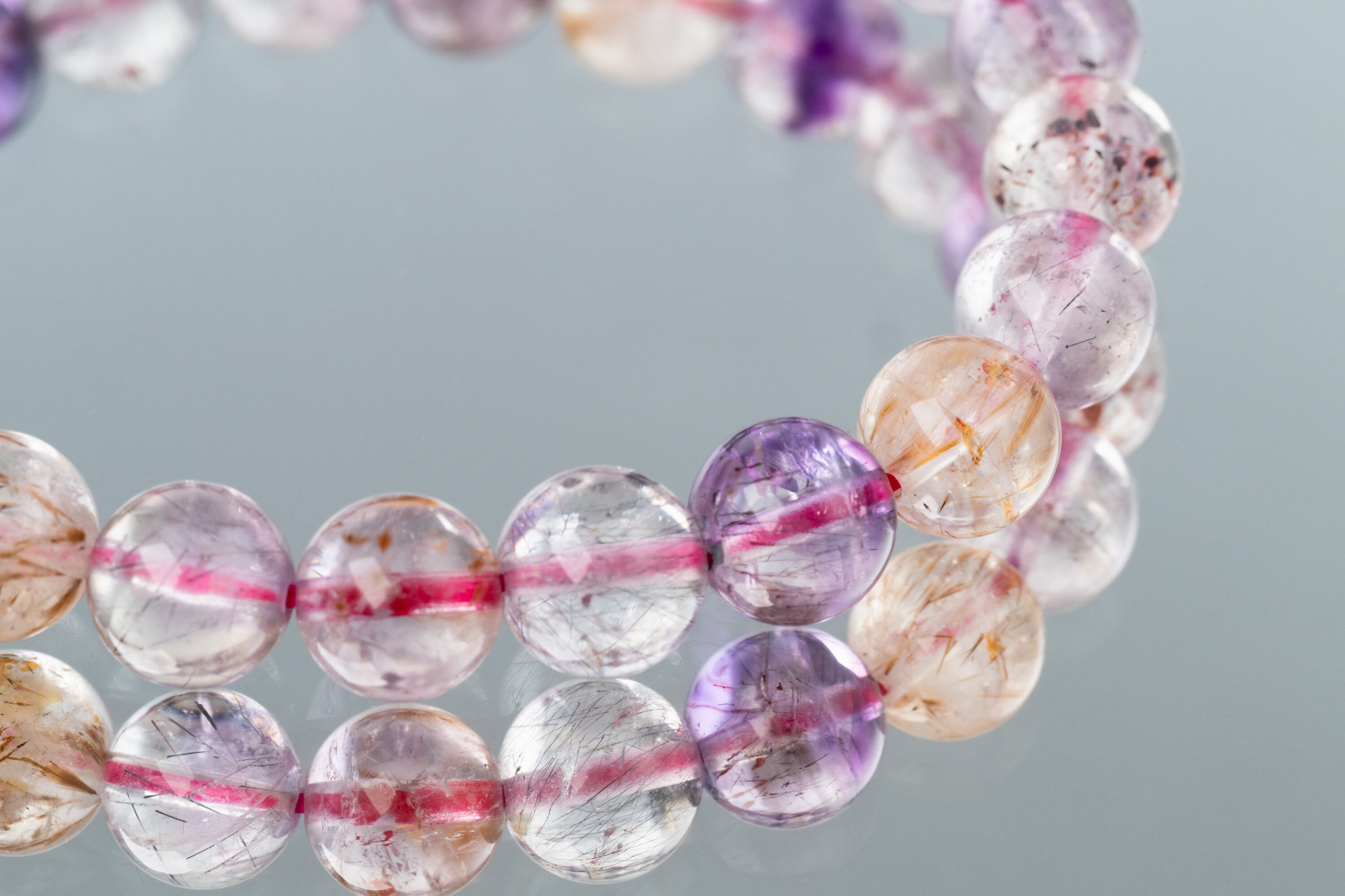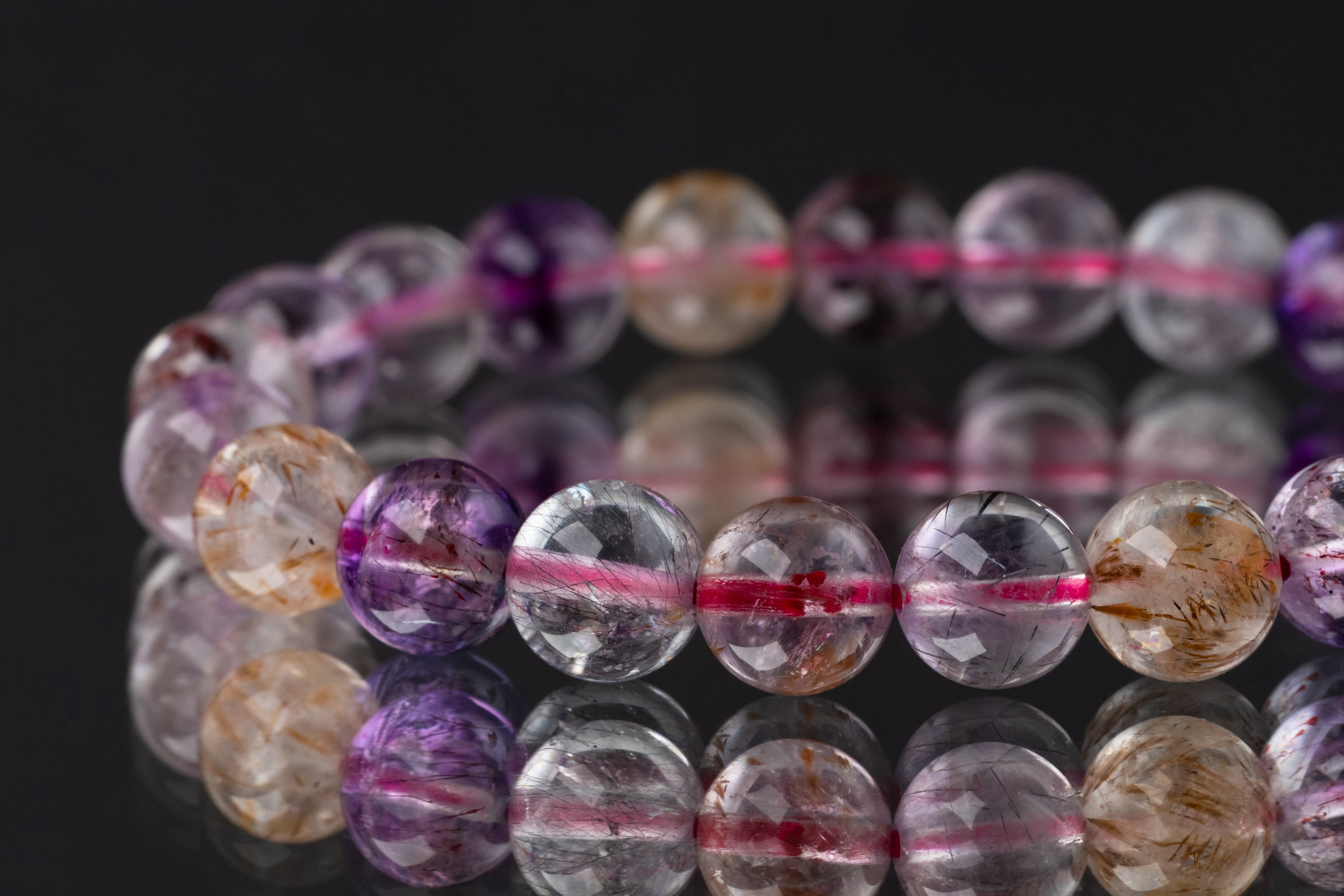 スーパーセブンは一つの水晶の中にアメジスト、カコクセナイト、ゲーサイト、レピドクロサイト、スモーキークォーツ、ルチル、水晶の7種類の鉱物が内包されているとされる非常に希少な水晶です。