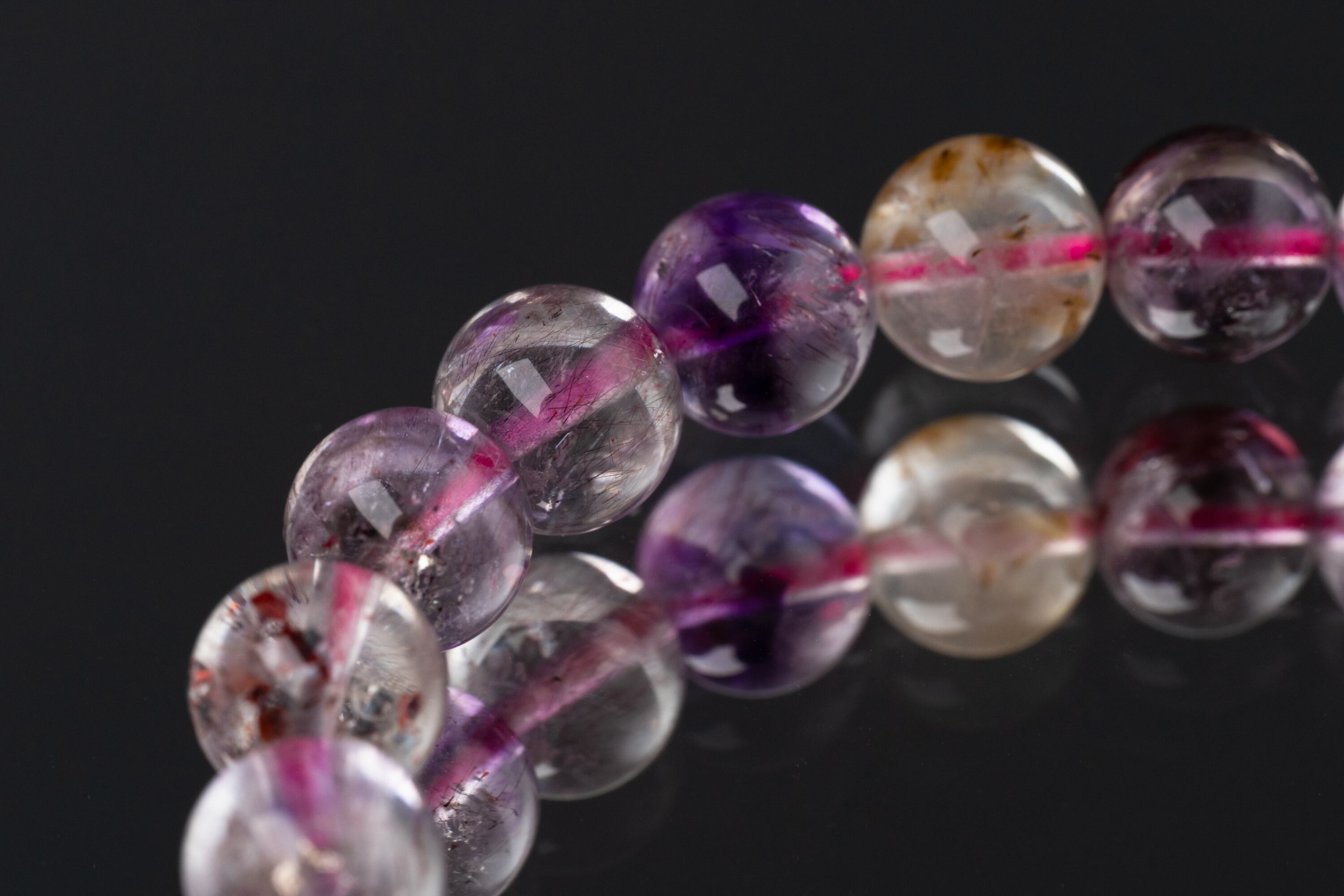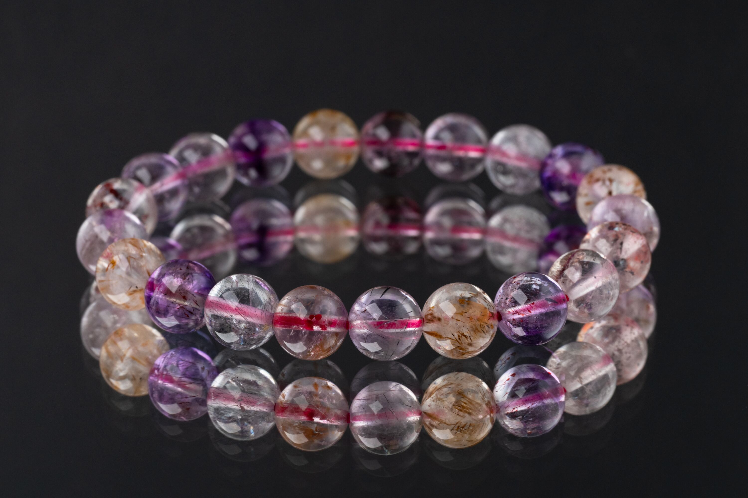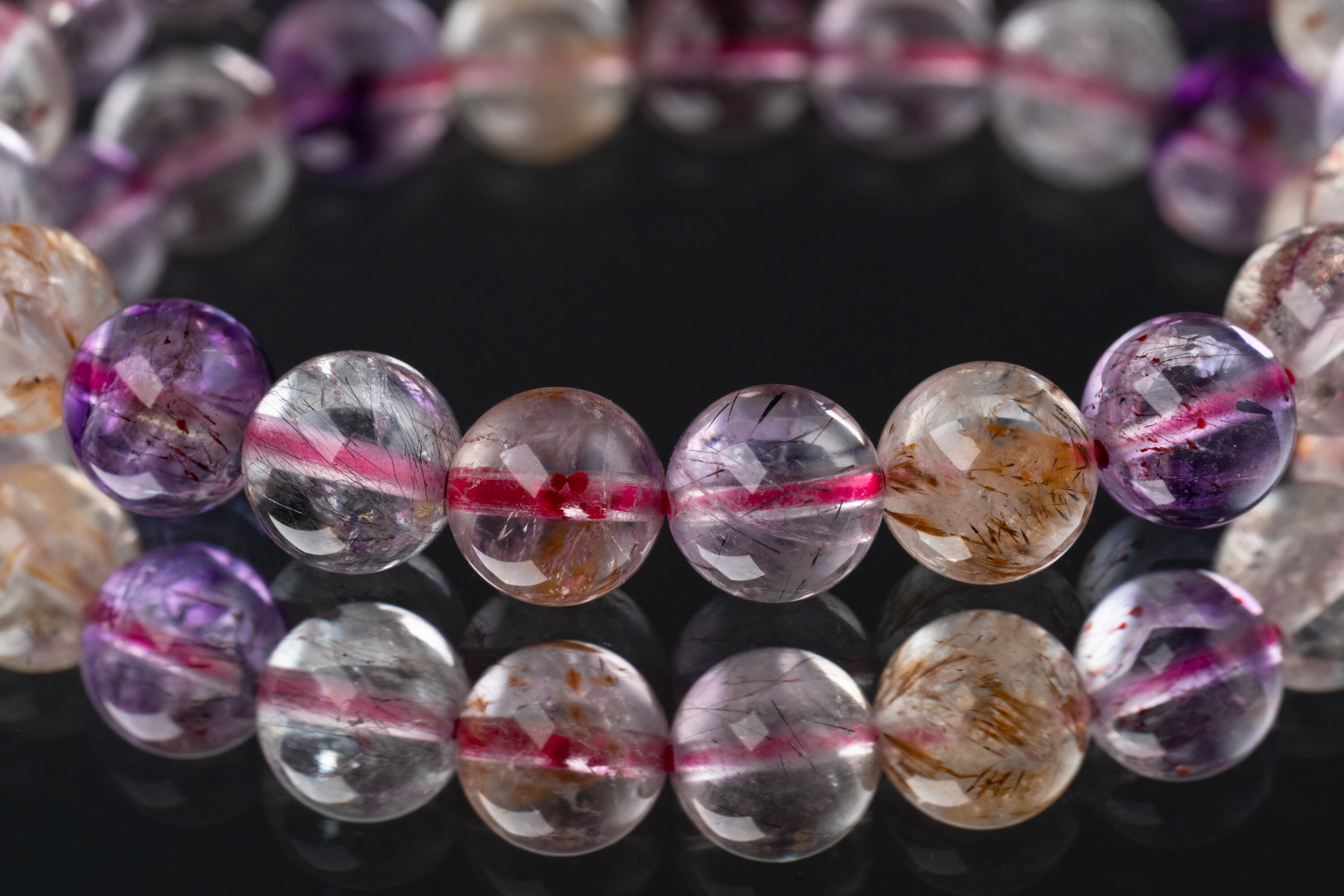 スーパーセブンは一つの水晶の中にアメジスト、カコクセナイト、ゲーサイト、レピドクロサイト、スモーキークォーツ、ルチル、水晶の7種類の鉱物が内包されているとされる非常に希少な水晶です。