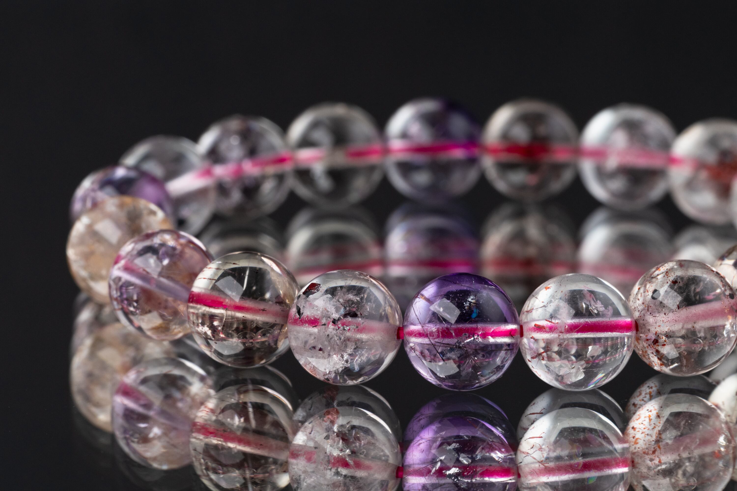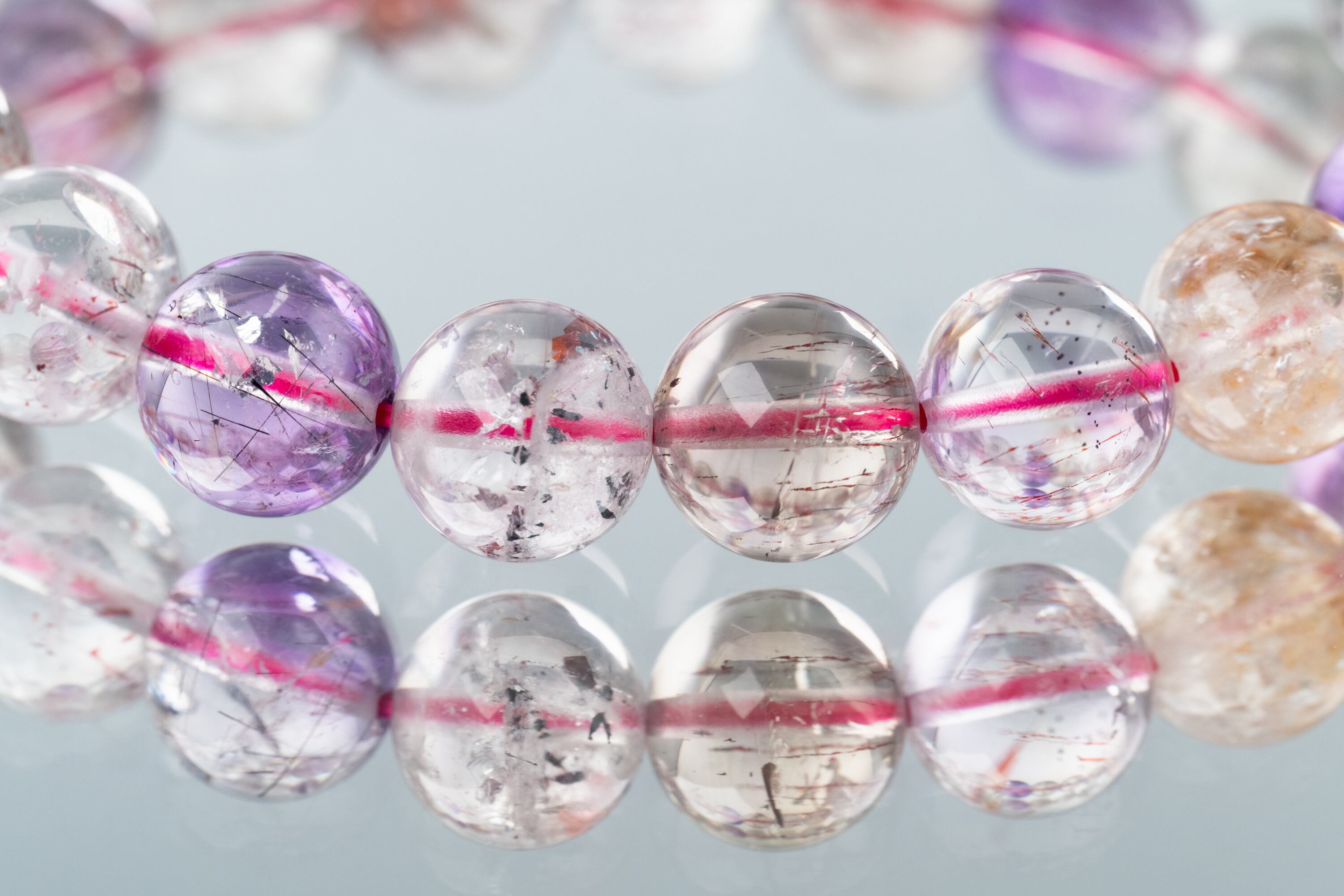 スーパーセブンは一つの水晶の中にアメジスト、カコクセナイト、ゲーサイト、レピドクロサイト、スモーキークォーツ、ルチル、水晶の7種類の鉱物が内包されているとされる非常に希少な水晶です。