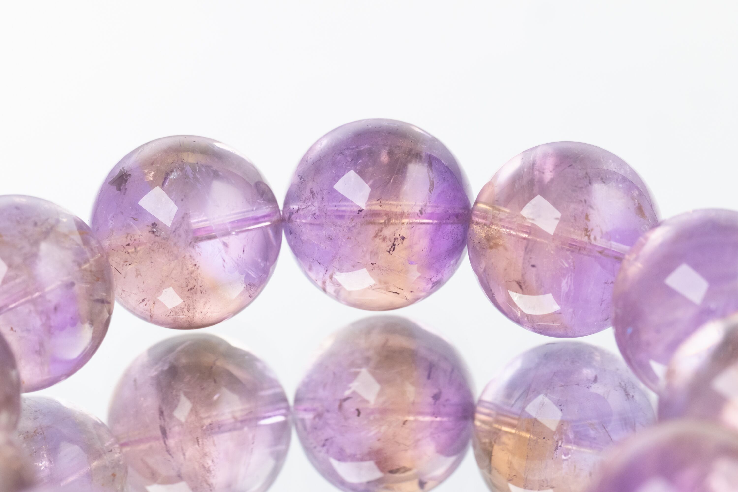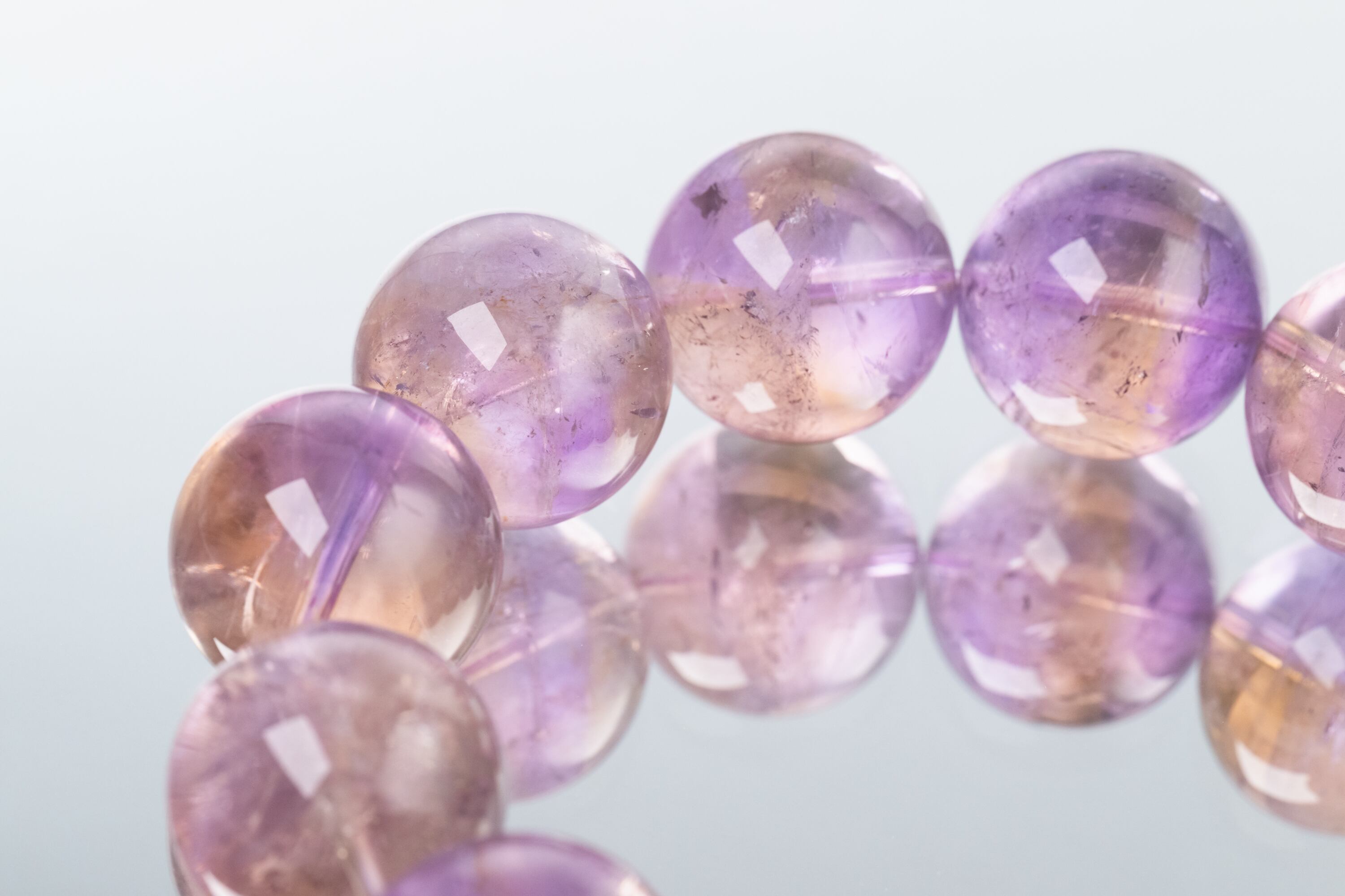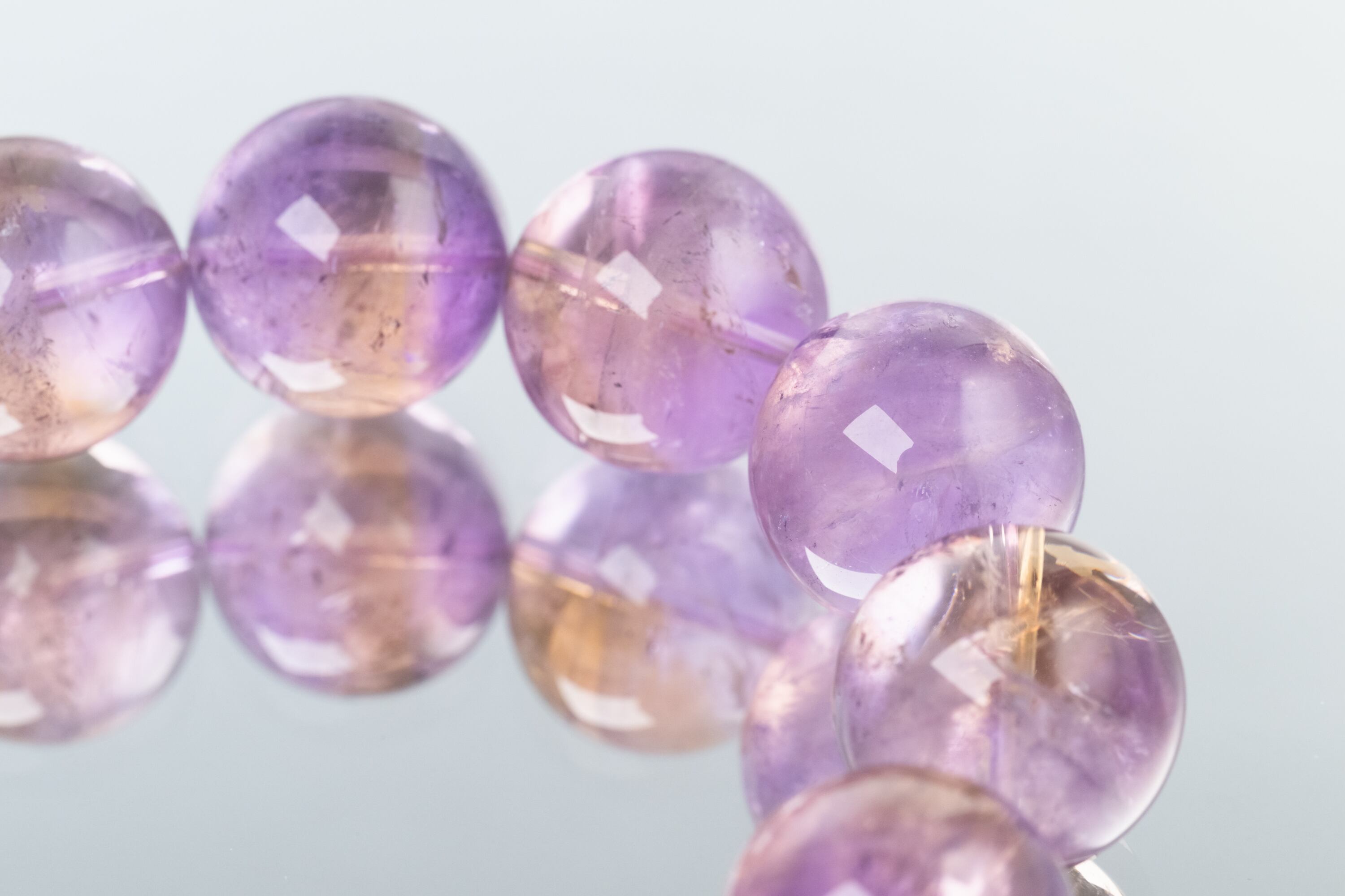 アメジストの成分を含むため、長時間の直射日光(紫外線)に当たると紫色が褪色する性質があります。