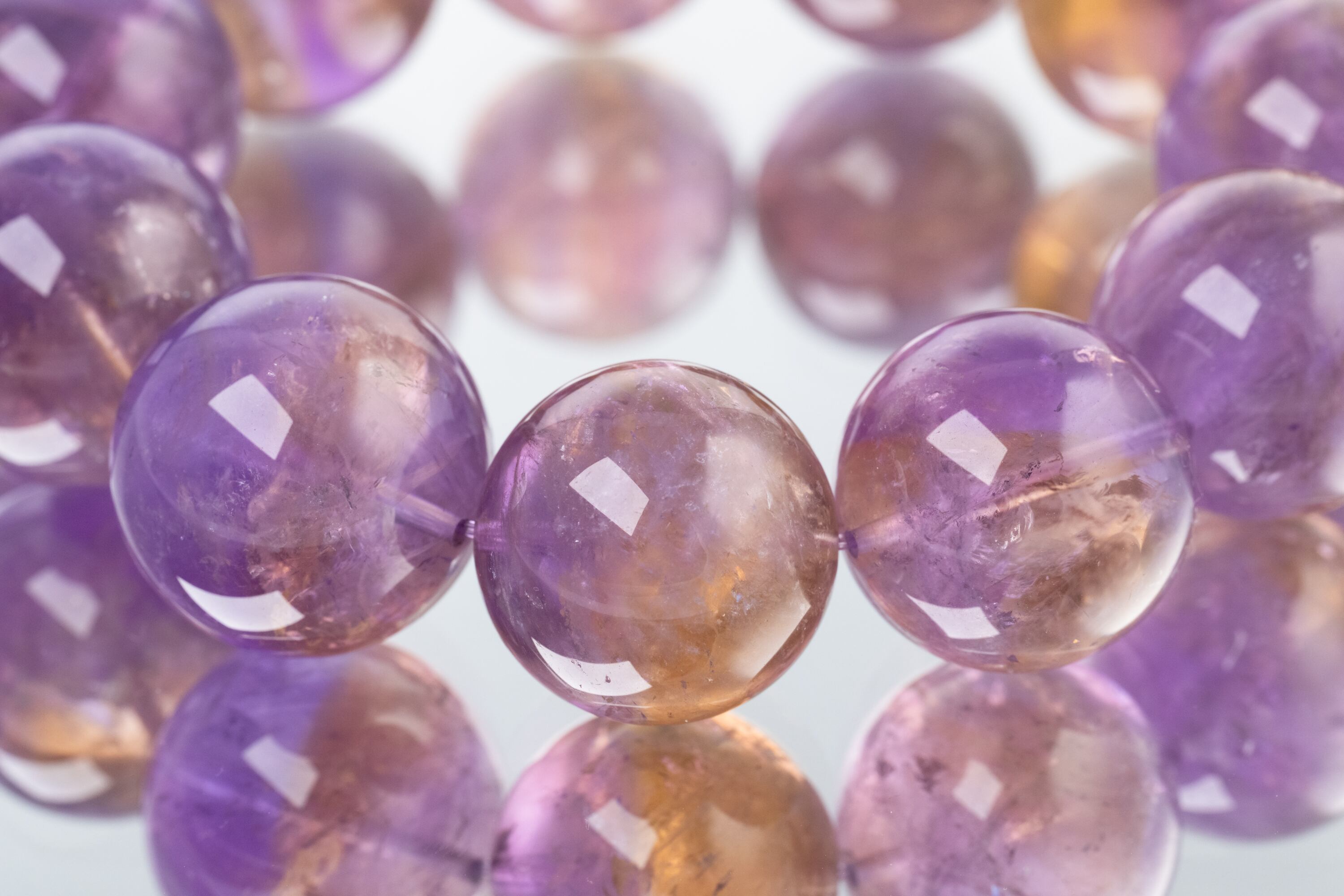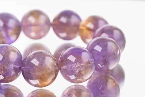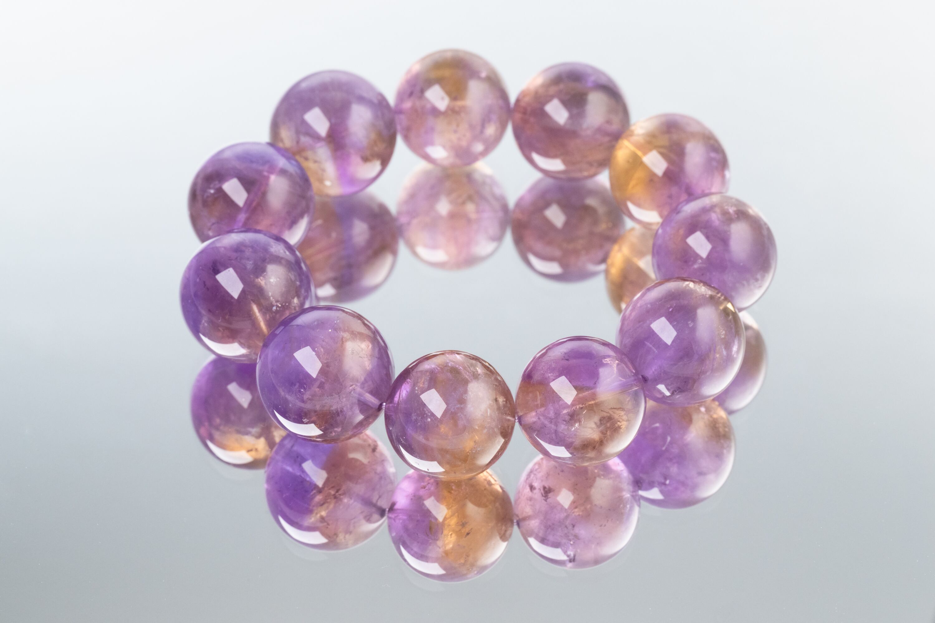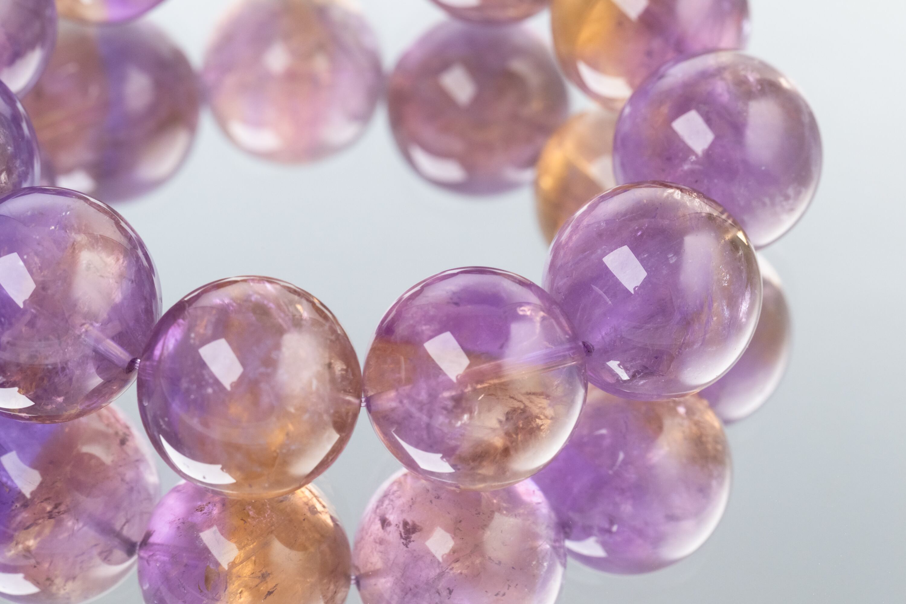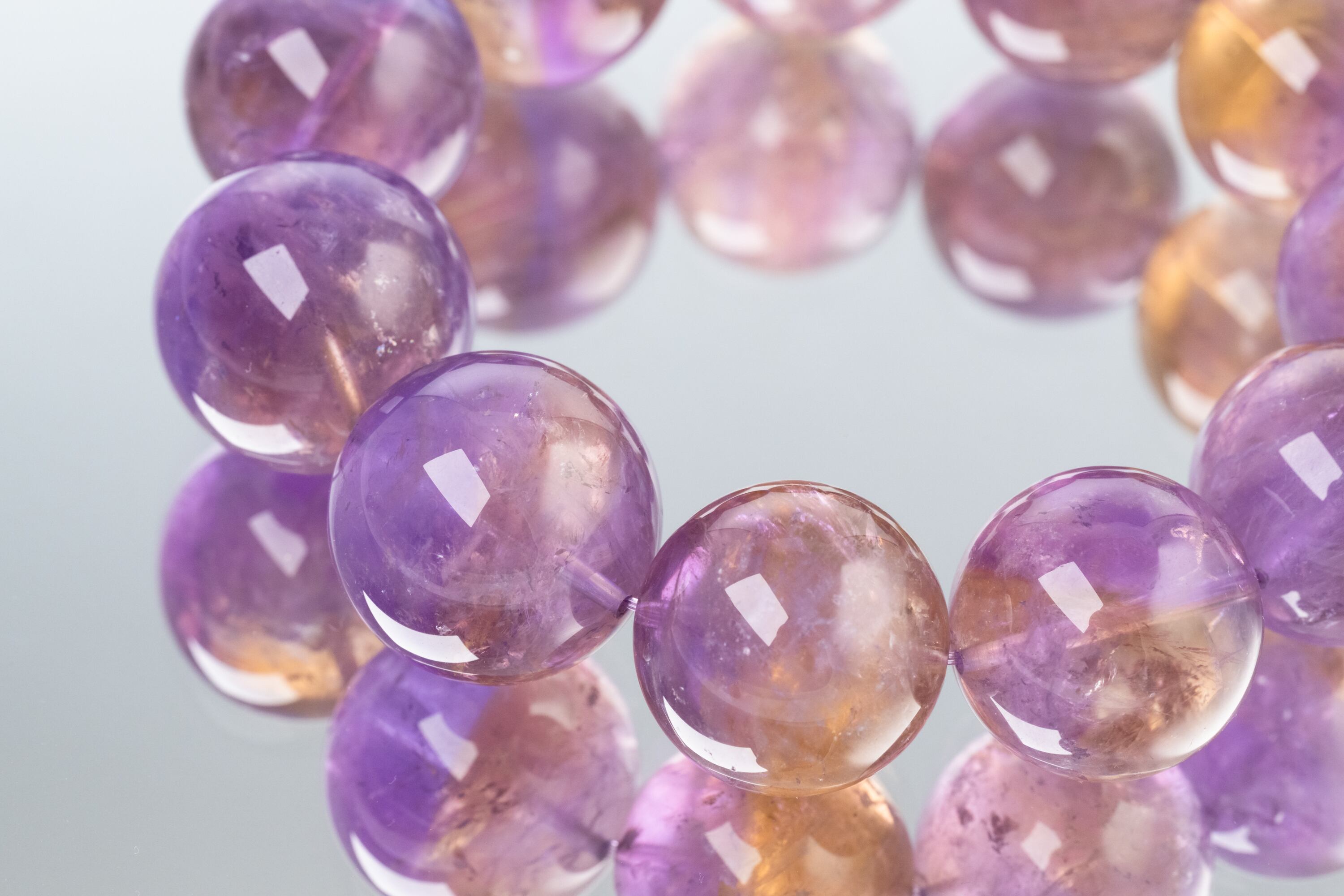 アメトリンは、一つの結晶内にアメジスト(紫水晶)とシトリン(黄水晶)が混ざり合った希少な天然石です。