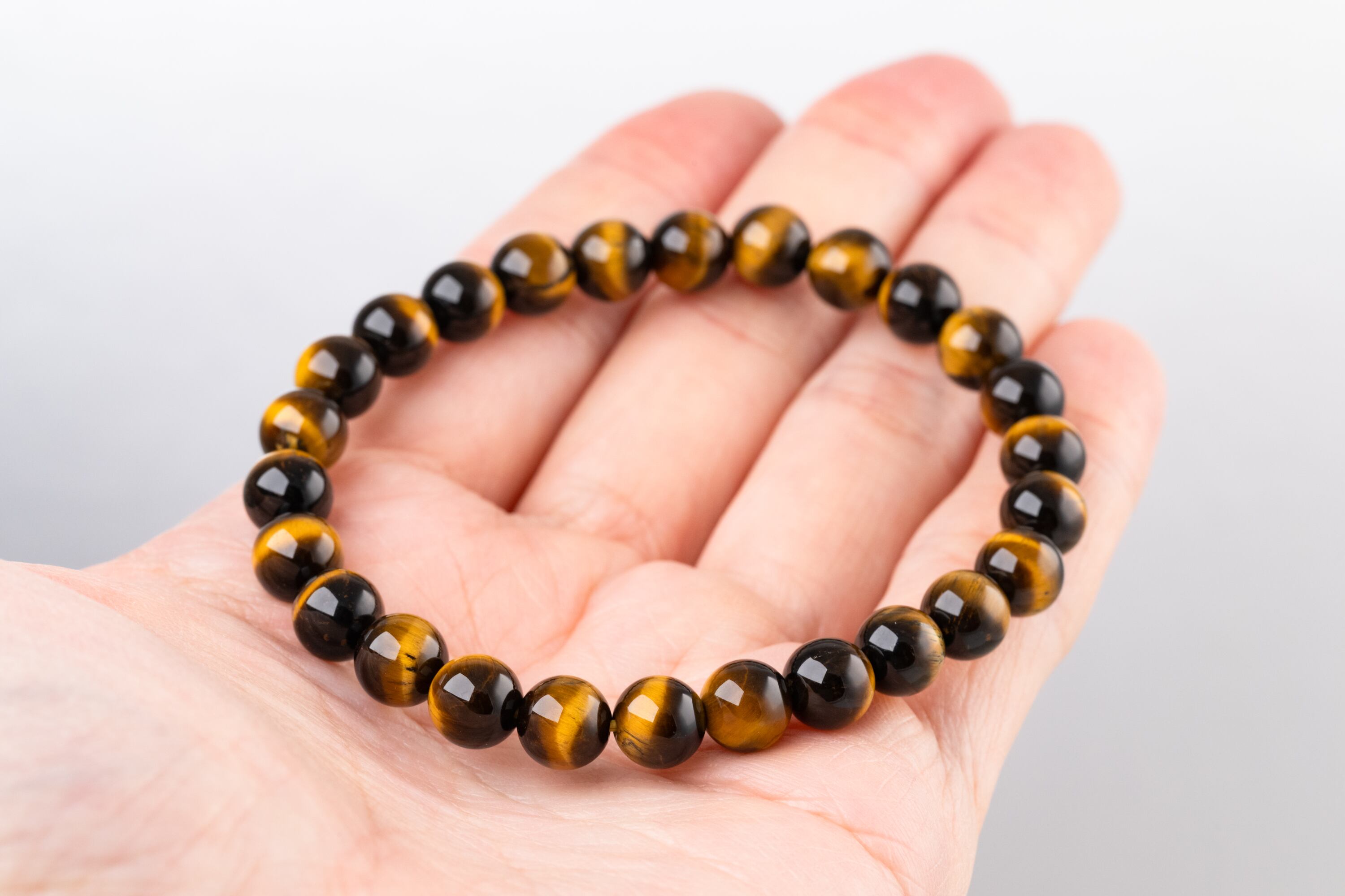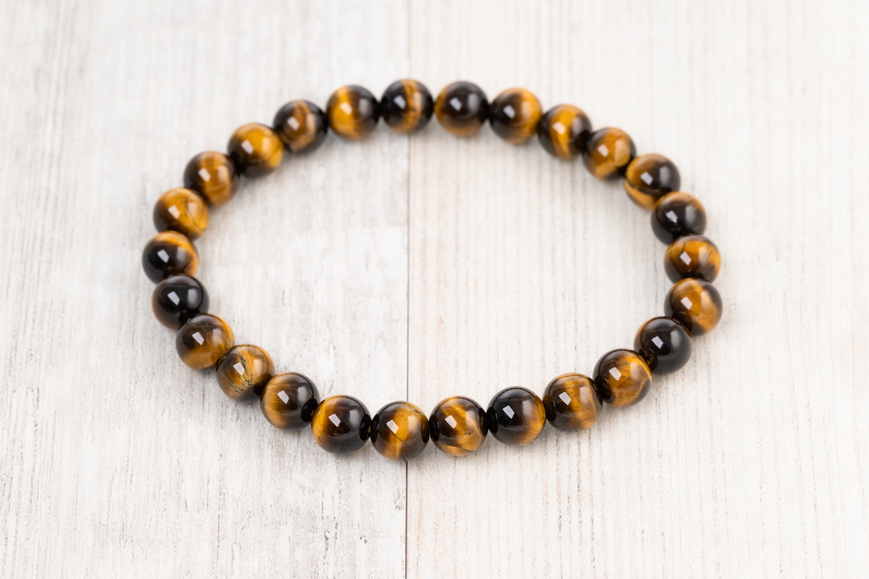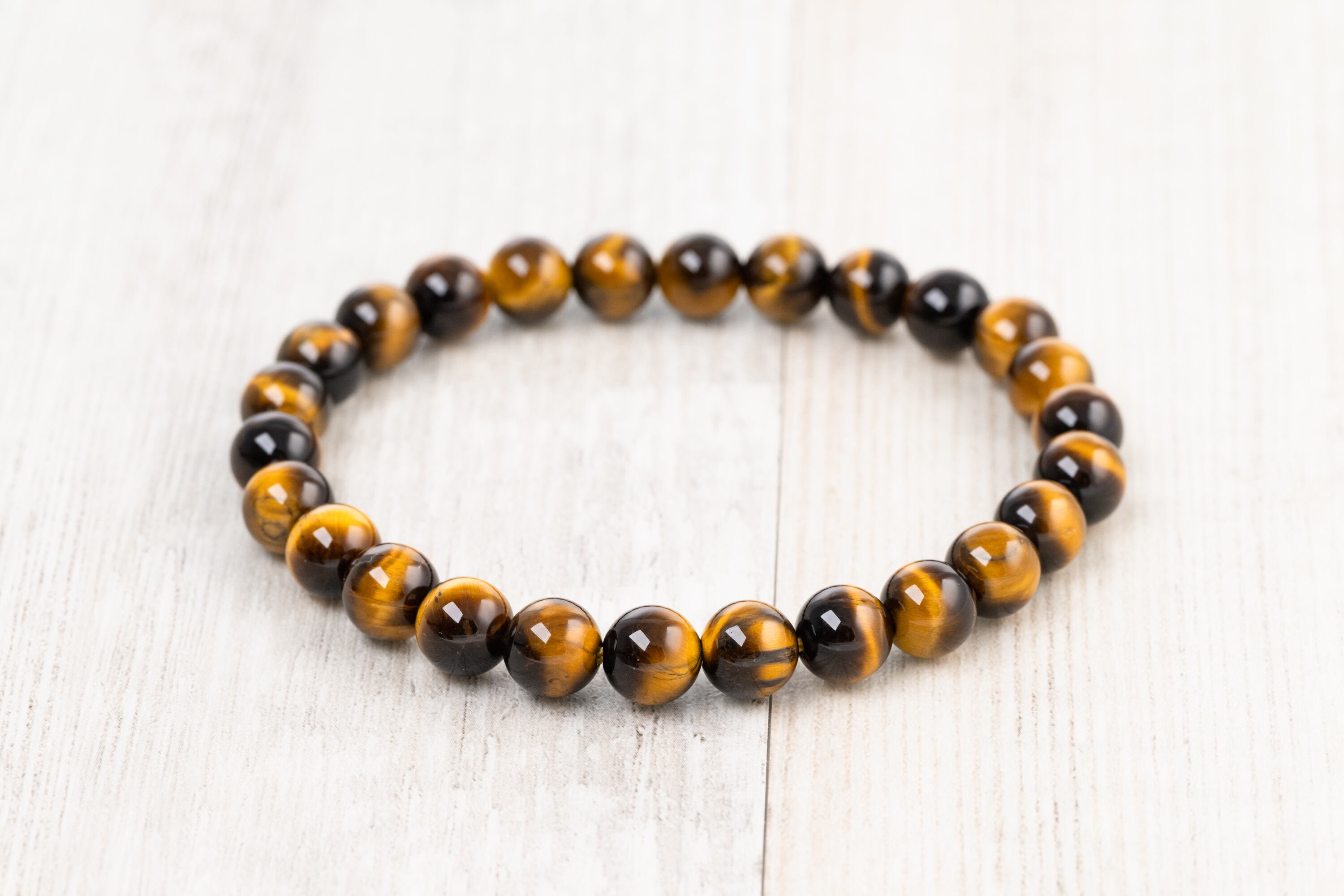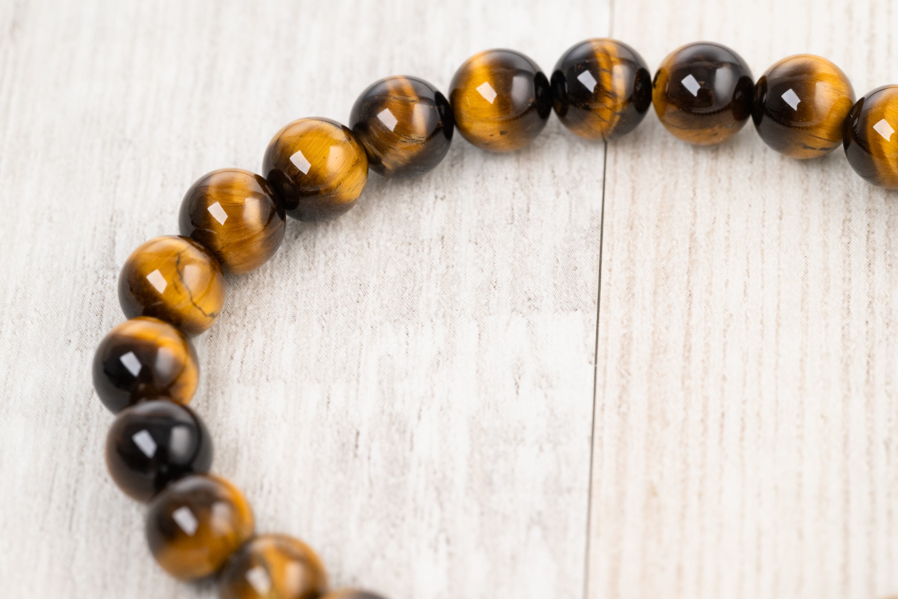 主に南アフリカ等で産出されるタイガーアイは、石英にクロシドライトという鉱物が染み込み、酸化することで特有の黄金色と茶褐色の縞模様が生まれる天然石です。