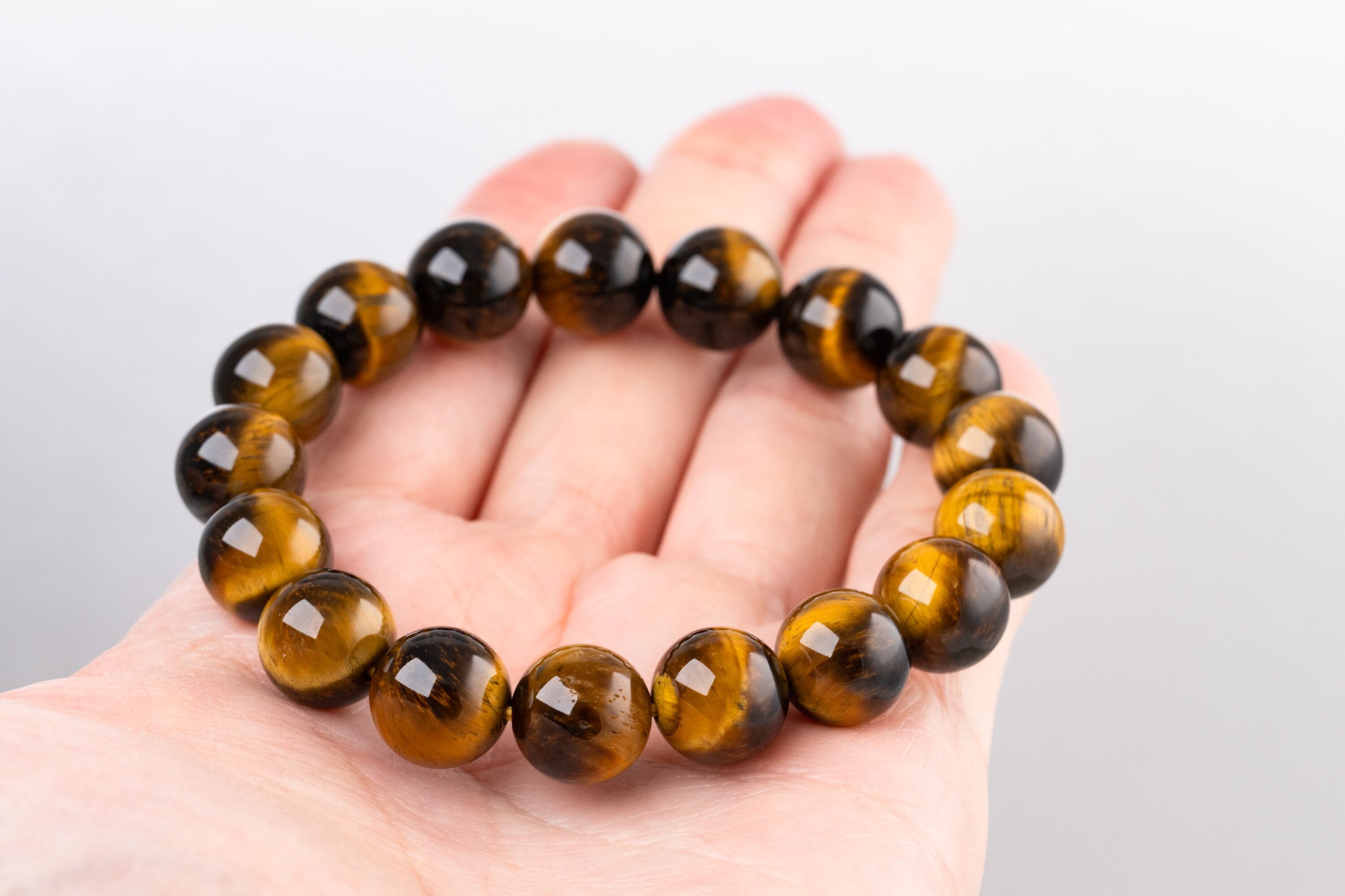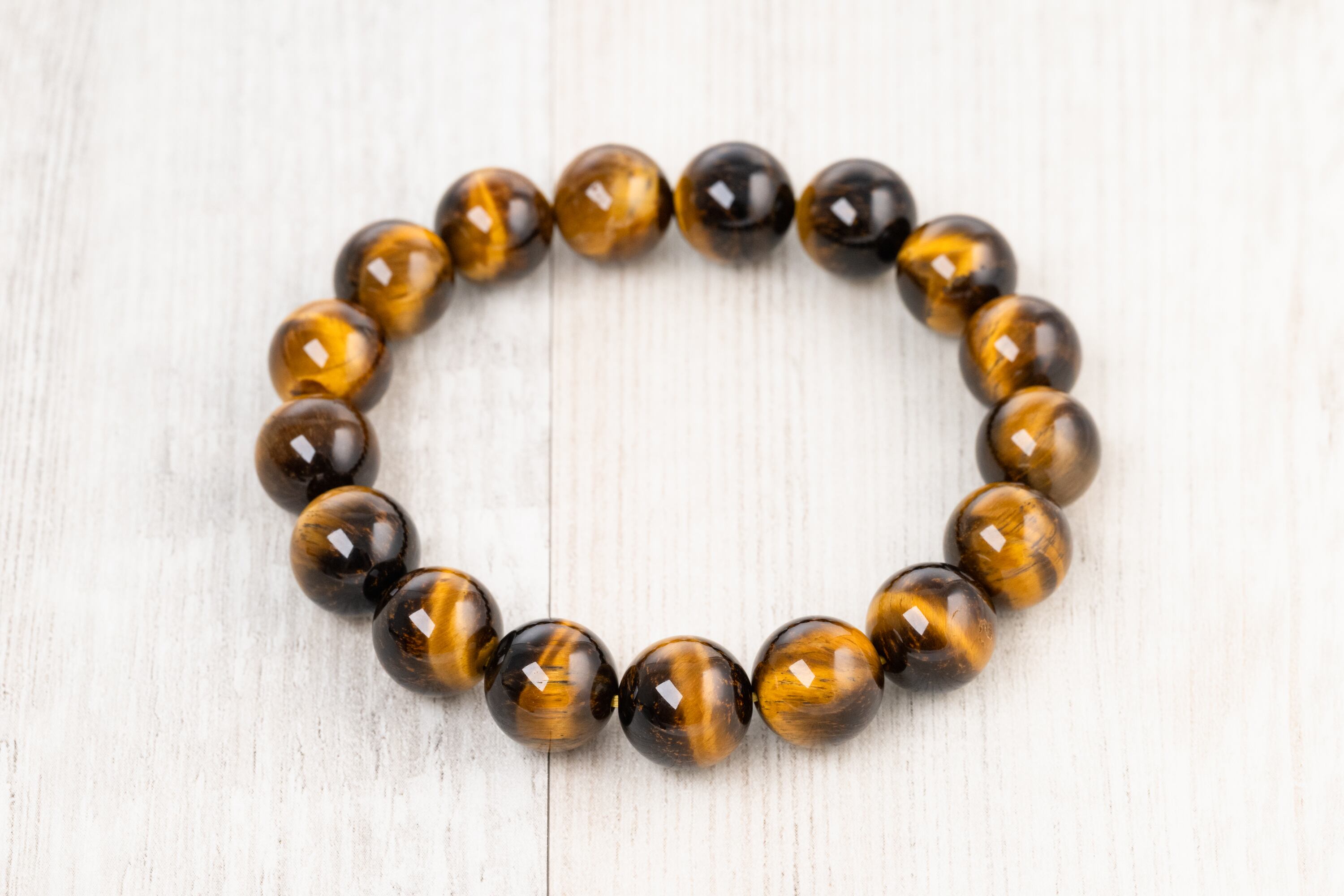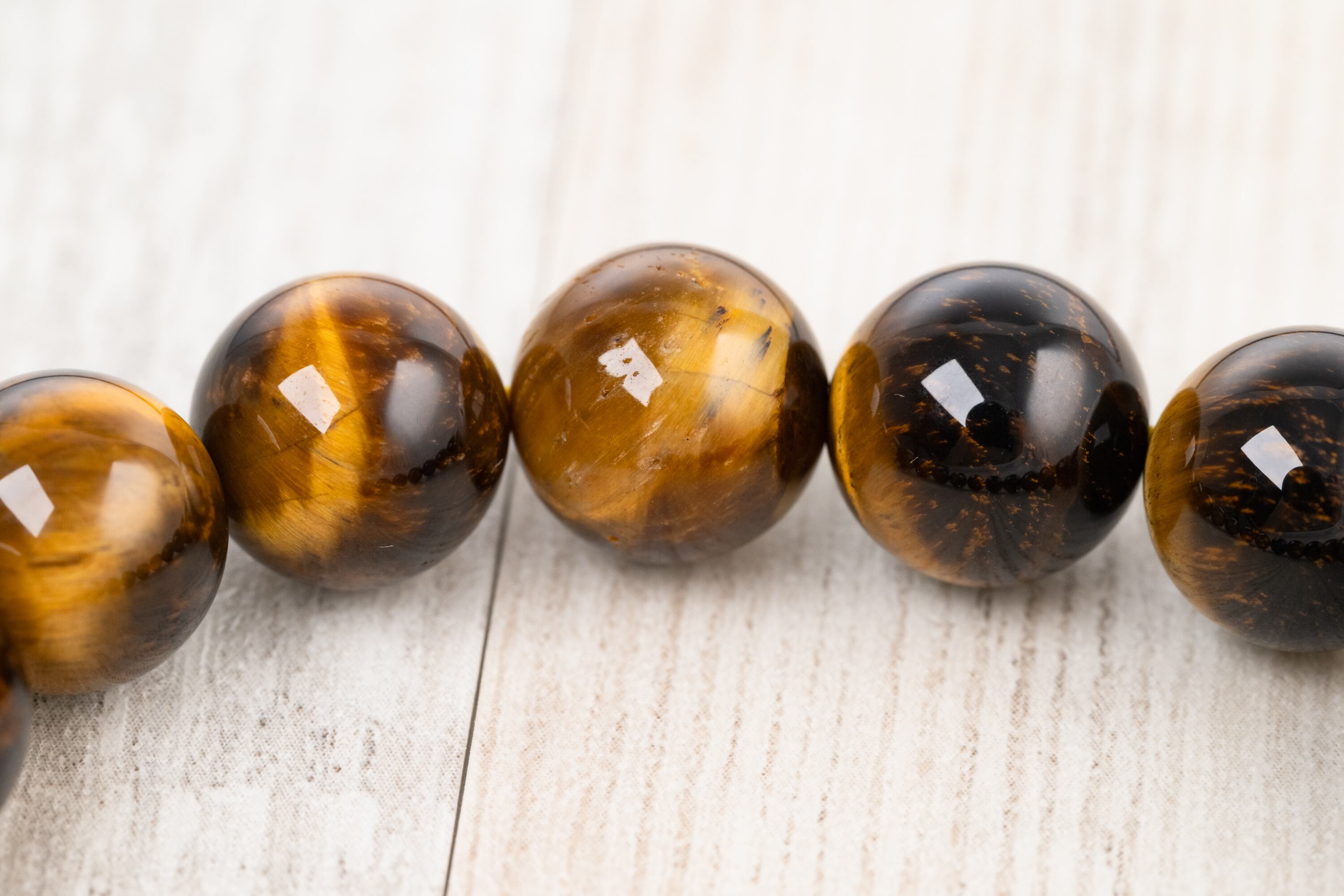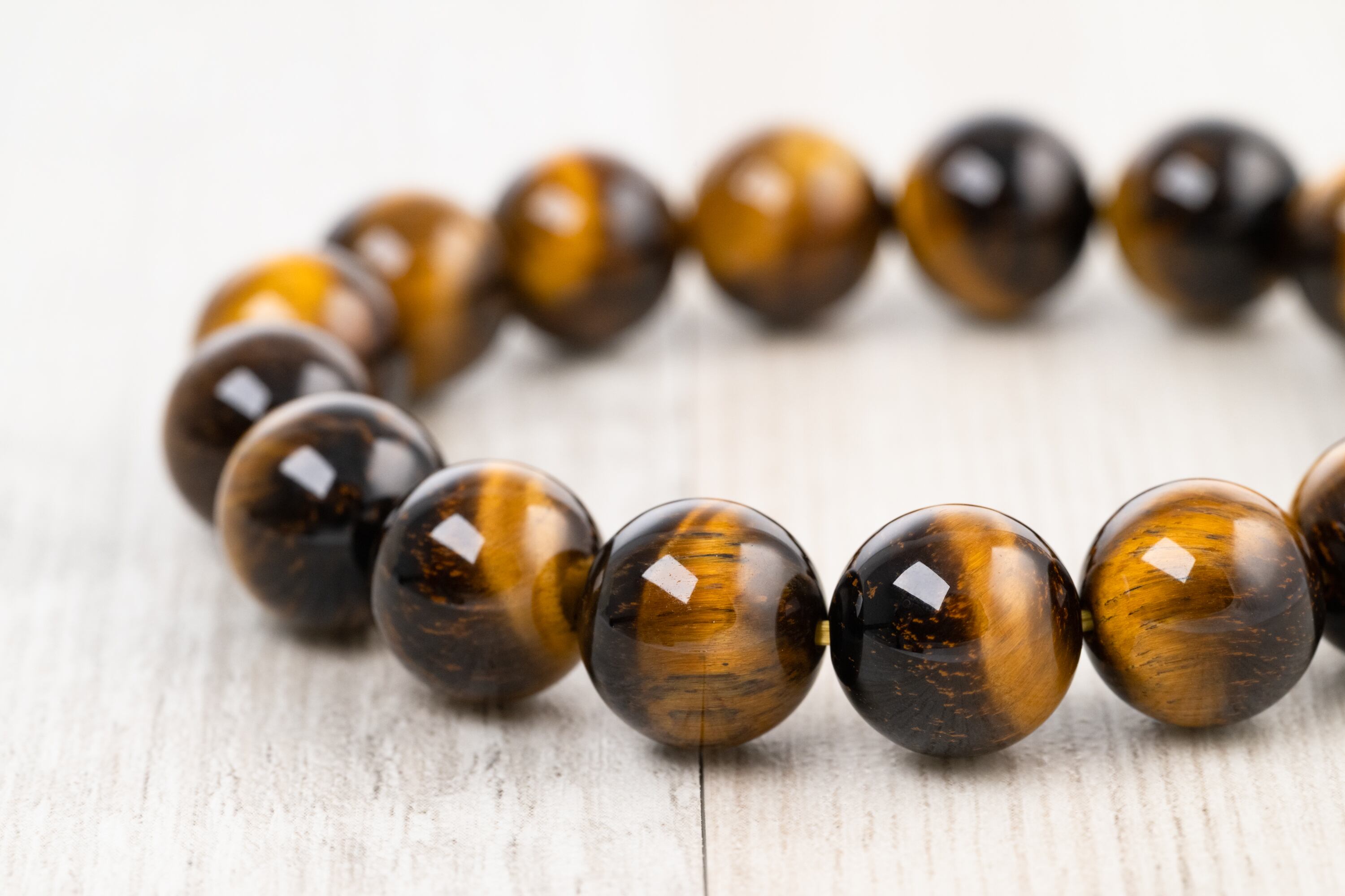 主に南アフリカ等で産出されるタイガーアイは、石英にクロシドライトという鉱物が染み込み、酸化することで特有の黄金色と茶褐色の縞模様が生まれる天然石です。