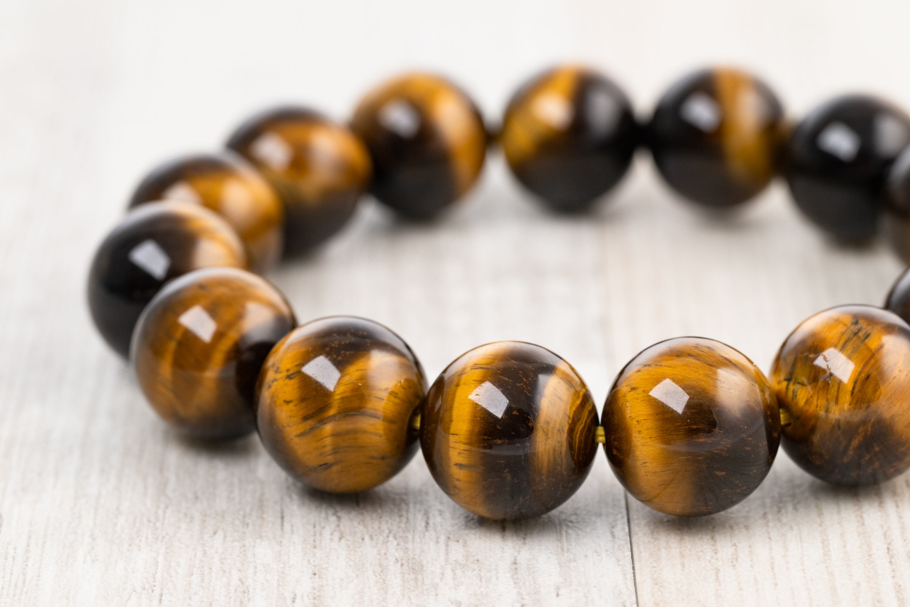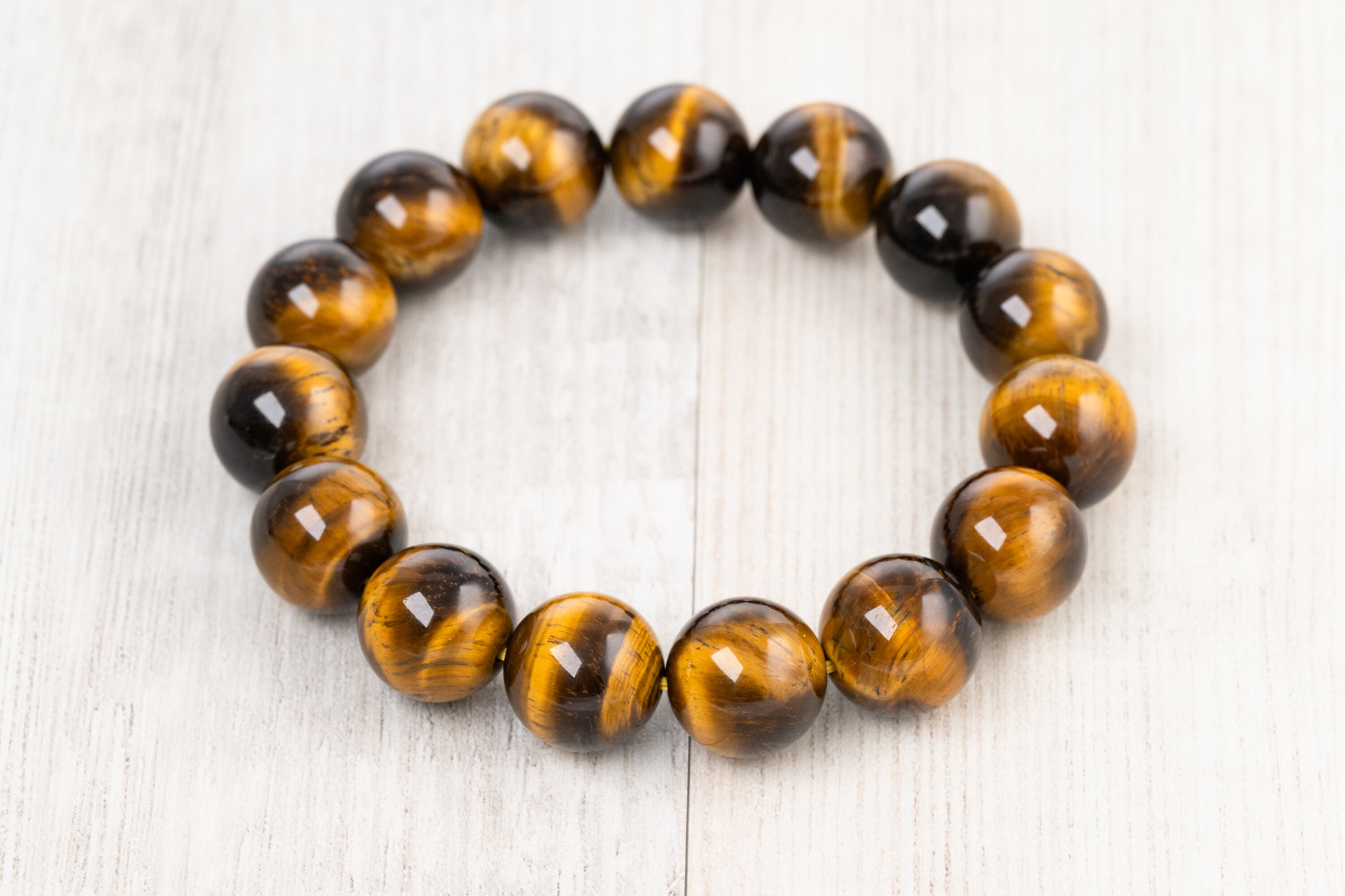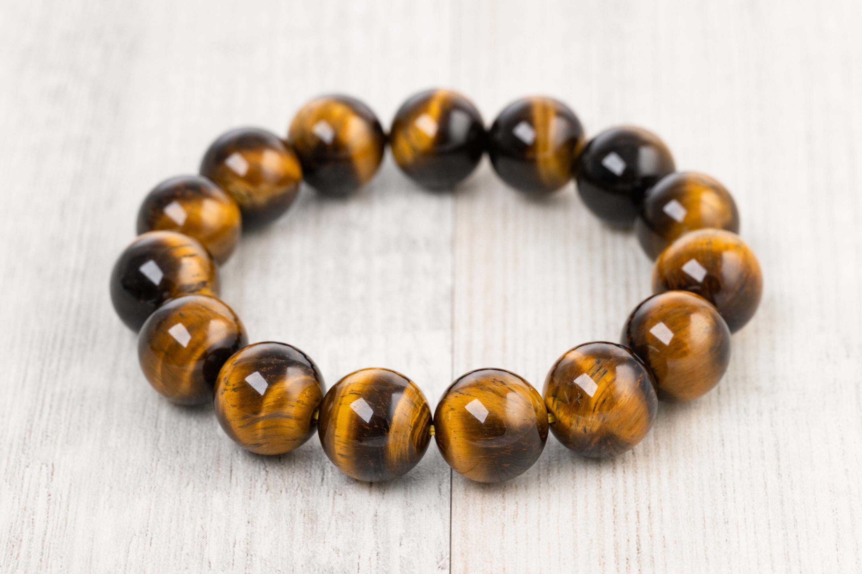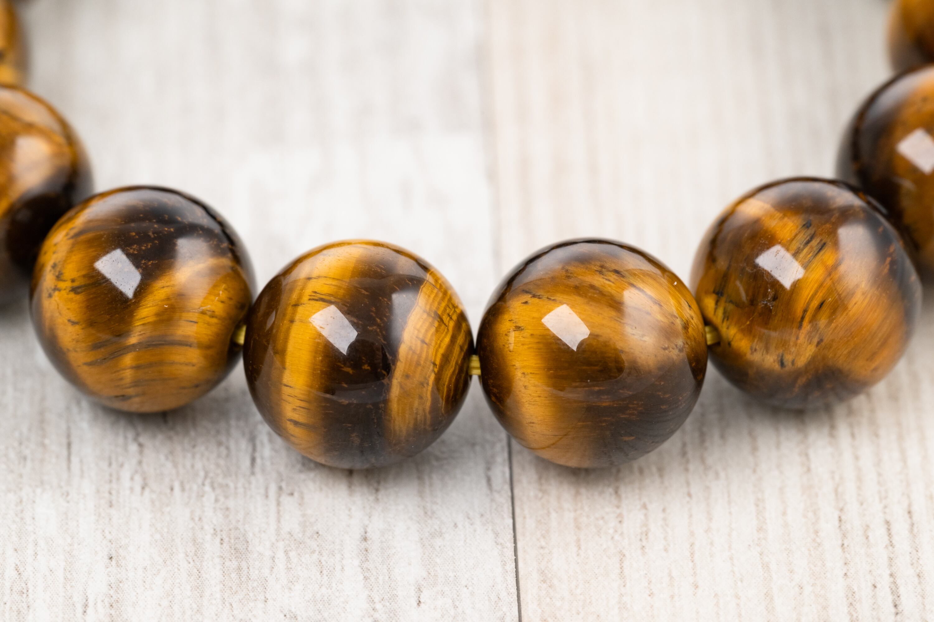 主に南アフリカ等で産出されるタイガーアイは、石英にクロシドライトという鉱物が染み込み、酸化することで特有の黄金色と茶褐色の縞模様が生まれる天然石です。