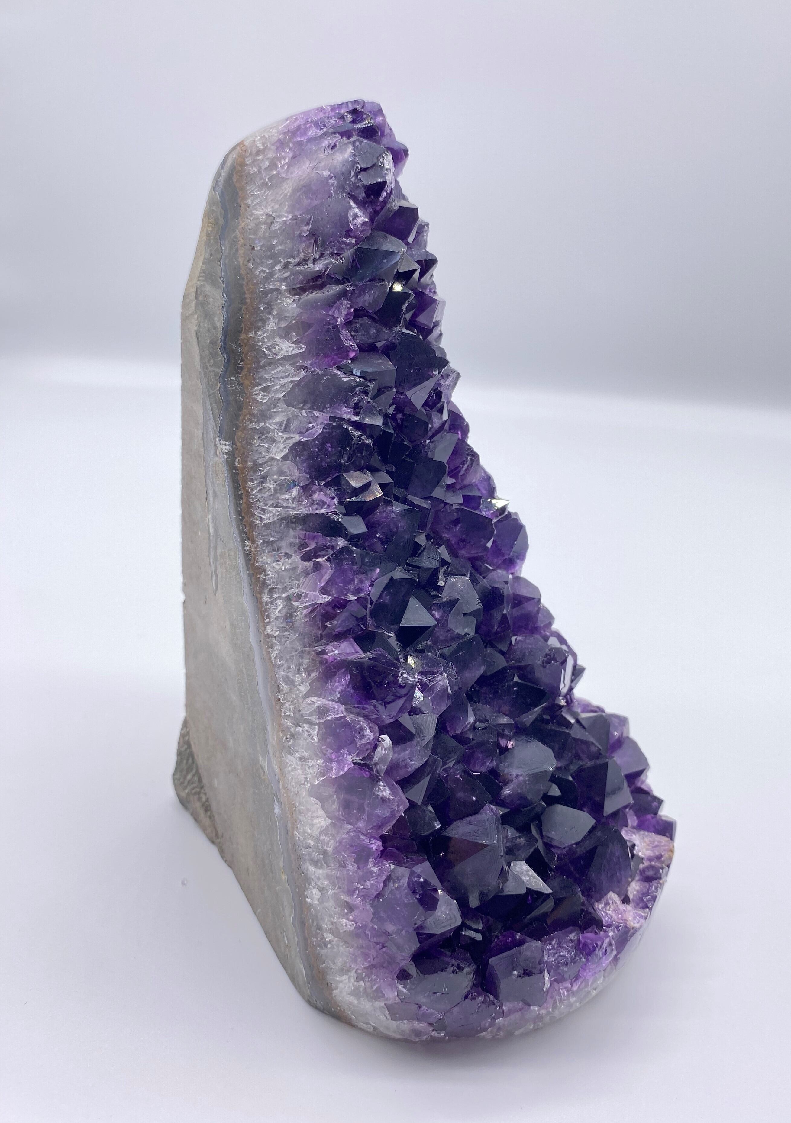 ウルグアイ産のアメジストクラスターは、深みのある濃い紫が特徴で、宝石質のものが多くとても人気のアメジストです。