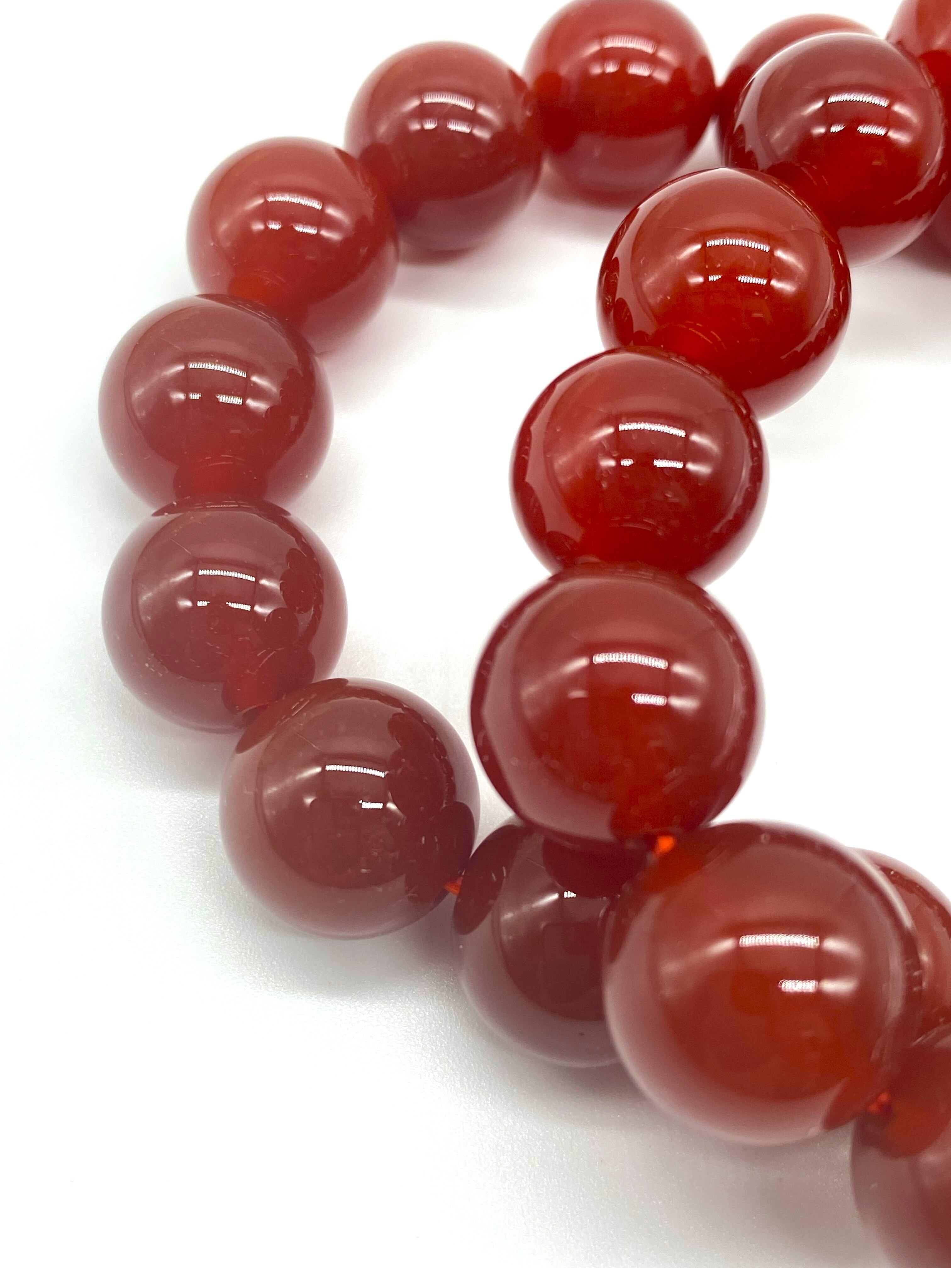 カーネリアンは、カルセドニー(玉髄)の一種で内部に含まれている鉄イオンにより赤色や橙色に発色し、かつ縞模様がないものをいいます。